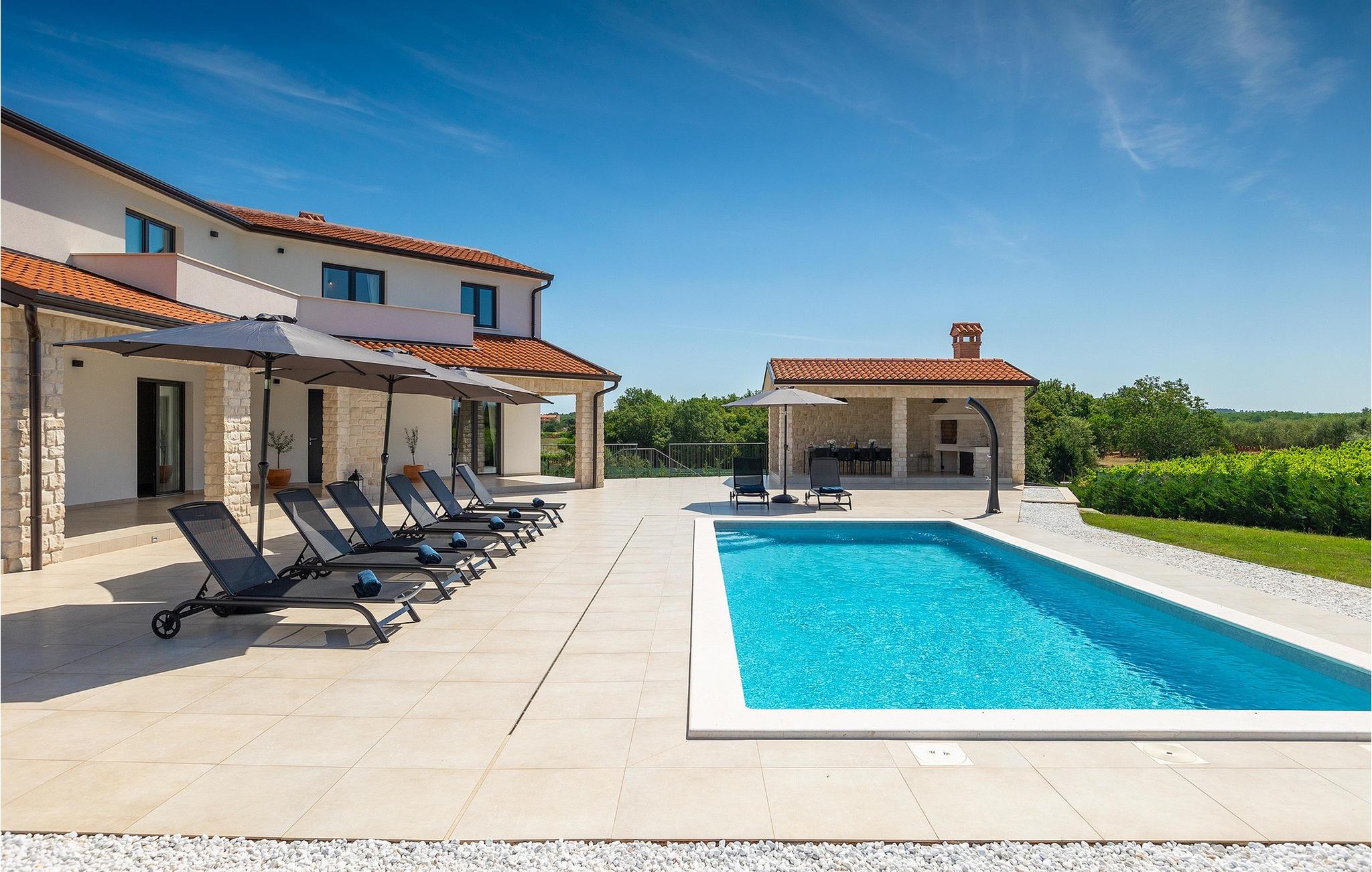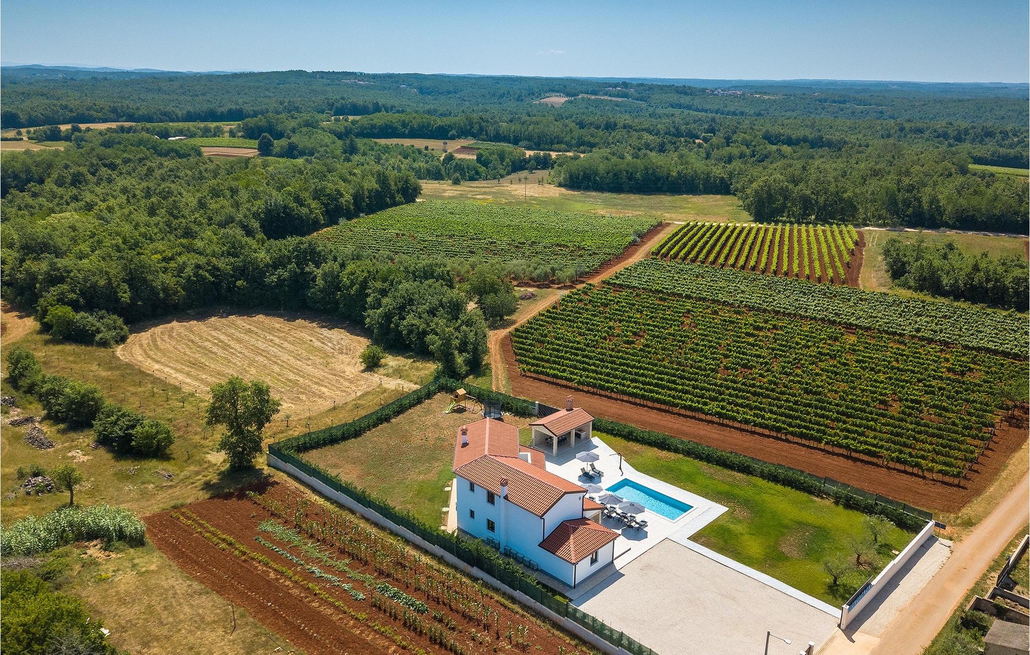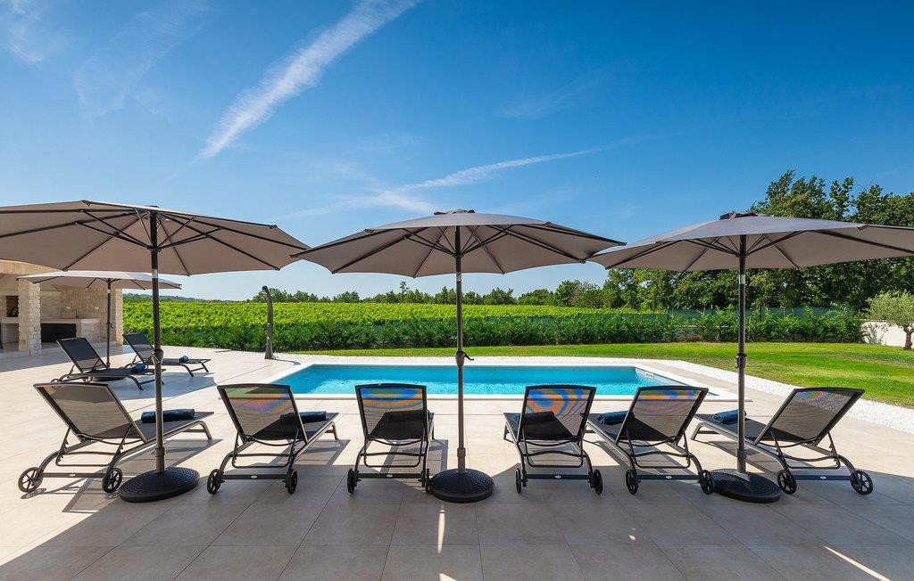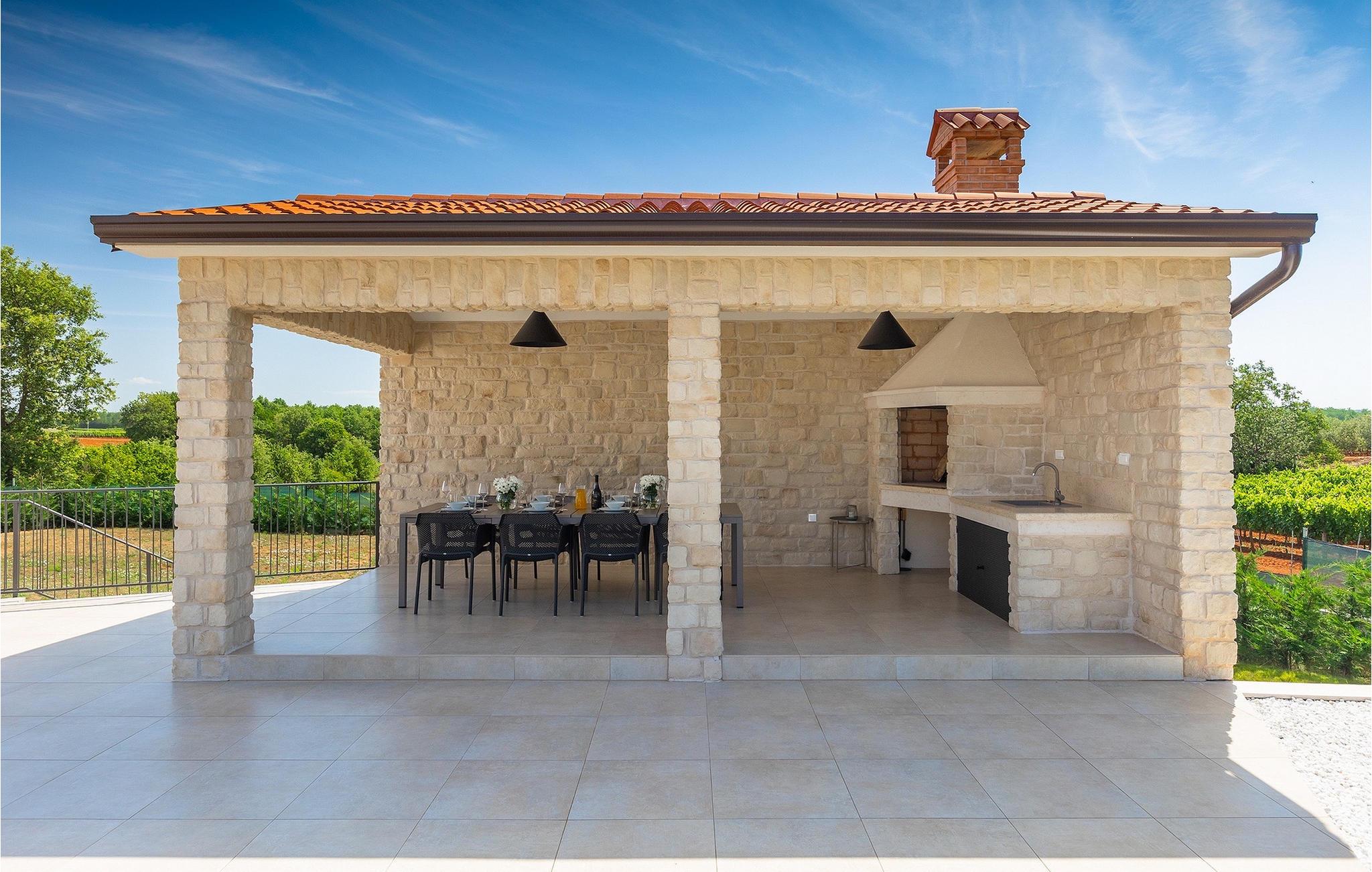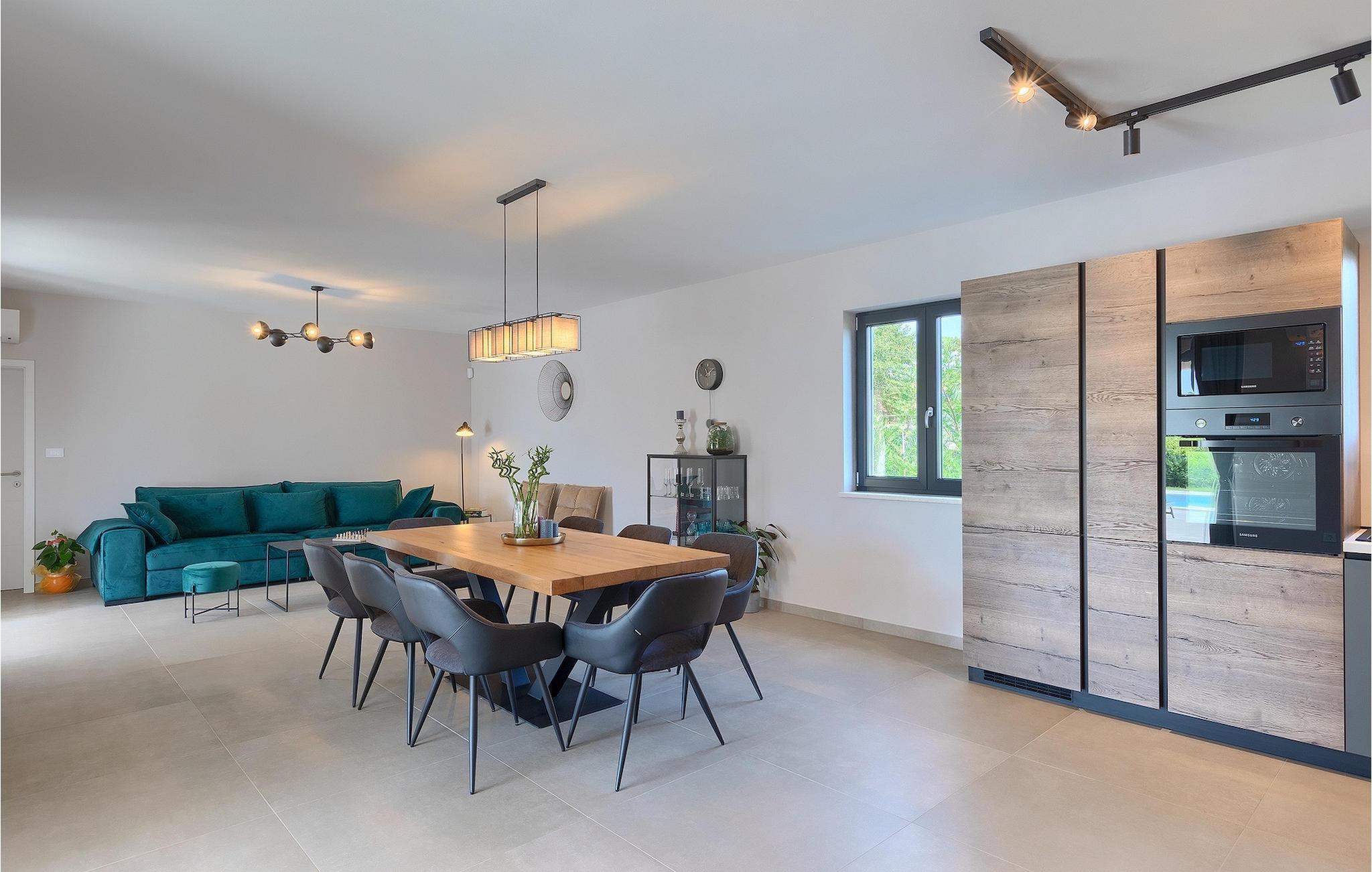 Das Untergeschoss der Villa bietet einen Raum, in dem Sie sich beim Billard oder Tischfußball entspannen können. Für Gäste, die im Urlaub aktiv bleiben möchten, gibt es auch eine Fitnessecke. Neben dem Haus befindet sich eine überdachte Terrasse und im Garten finden Sie auch einen überdachten Bereich mit einem Esstisch, wo Sie köstliche Gerichte genießen können, die auf dem Holzkohlengrill zubereitet werden, der Ihnen zur Verfügung steht. Im Garten der Villa finden Sie einen Pool und Sonnenliegen, wo Sie sich bei einem Buch oder einem erfrischenden Getränk entspannen oder sich beim Badminton vergnügen können. Für unsere kleinen Gäste finden Sie im Garten einen Kinderspielplatz und ein Trampolin. Das Grundstück ist komplett eingezäunt und verfügt über einen privaten Parkplatz für 6 Autos. Buchen Sie Ihre Unterkunft in der Villa Sun Istria und verbringen Sie einen unvergesslichen Urlaub mit Familie und Freunden.Die Villa Sun Istria befindet sich in der Nähe von Višnjan, einer istrischen Stadt, die auf einem Hügel liegt. Die verwinkelten Gassen dieser bezaubernden Stadt zeugen vom reichen historischen Erbe dieses Ortes und bieten gleichzeitig einen spektakulären Blick auf das Meer von der alten Terrasse auf dem Platz, die durch einen venezianischen Bogen betreten wird. Višnjan ist bekannt für seine Sternwarte sowie eine außergewöhnliche traditionelle Gastronomie, die Sie in zahlreichen Restaurants und Agriturismen in der Umgebung genießen können. Es gibt zahlreiche Wander- und Radwege, einer der schönsten von ihnen ist der historische Parenzana-Weg der alten Eisenbahn, der auch eine einzigartige Fahrt mit einem Touristenzug entlang der Route bietet. Die antike römische Stadt Porec, 10 km von der Villa entfernt, bietet mehr Trubel mit himmlischen Stränden, ausgezeichneten Restaurants und Cafés und einem reichen Nachtleben. Sie sollten es auf keinen Fall versäumen, die berühmte Euphrasius-Basilika zu besichtigen, das Markenzeichen von Porec, weshalb die Stadt auch "die Stadt der Mosaike" genannt wird. Besuchen Sie die Baredine-Höhle oder einen der nahe gelegenen Wasserparks und verbringen Sie den besten Urlaub aller Zeiten!