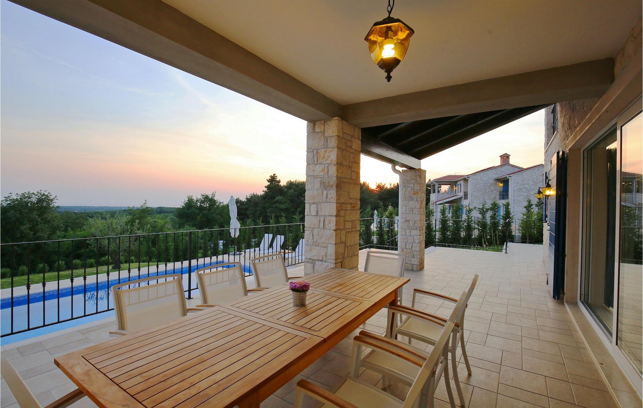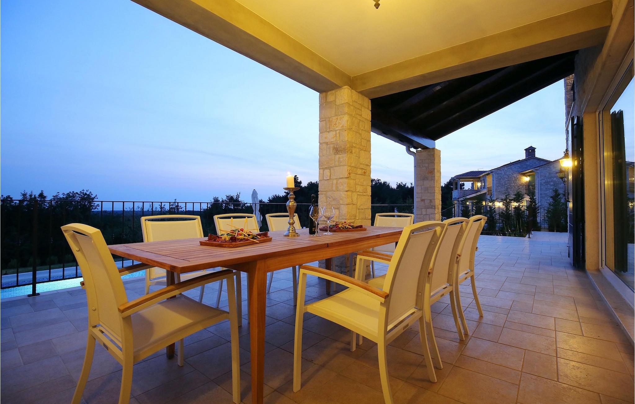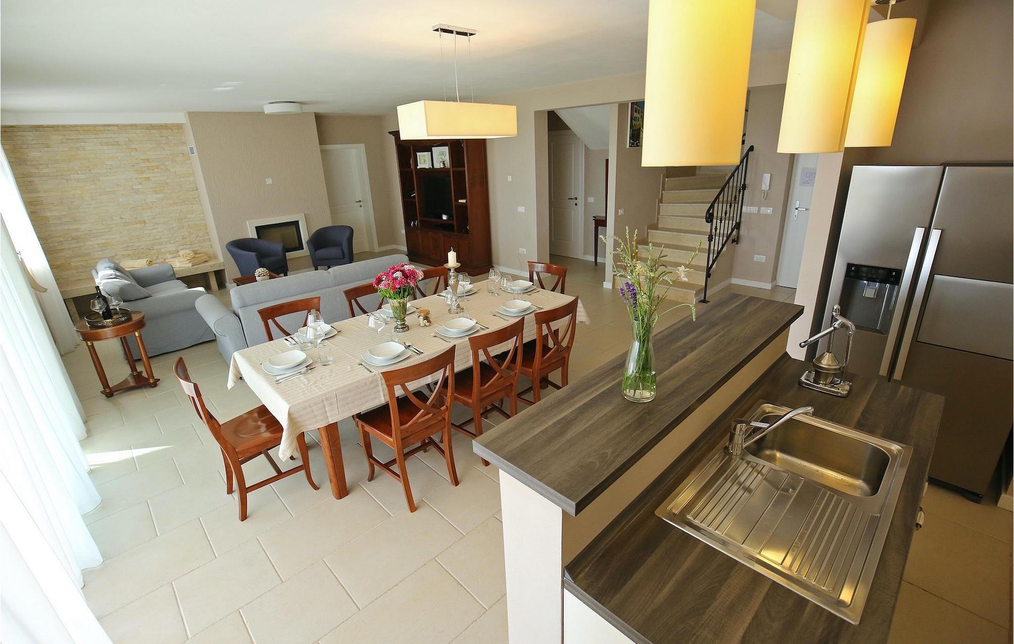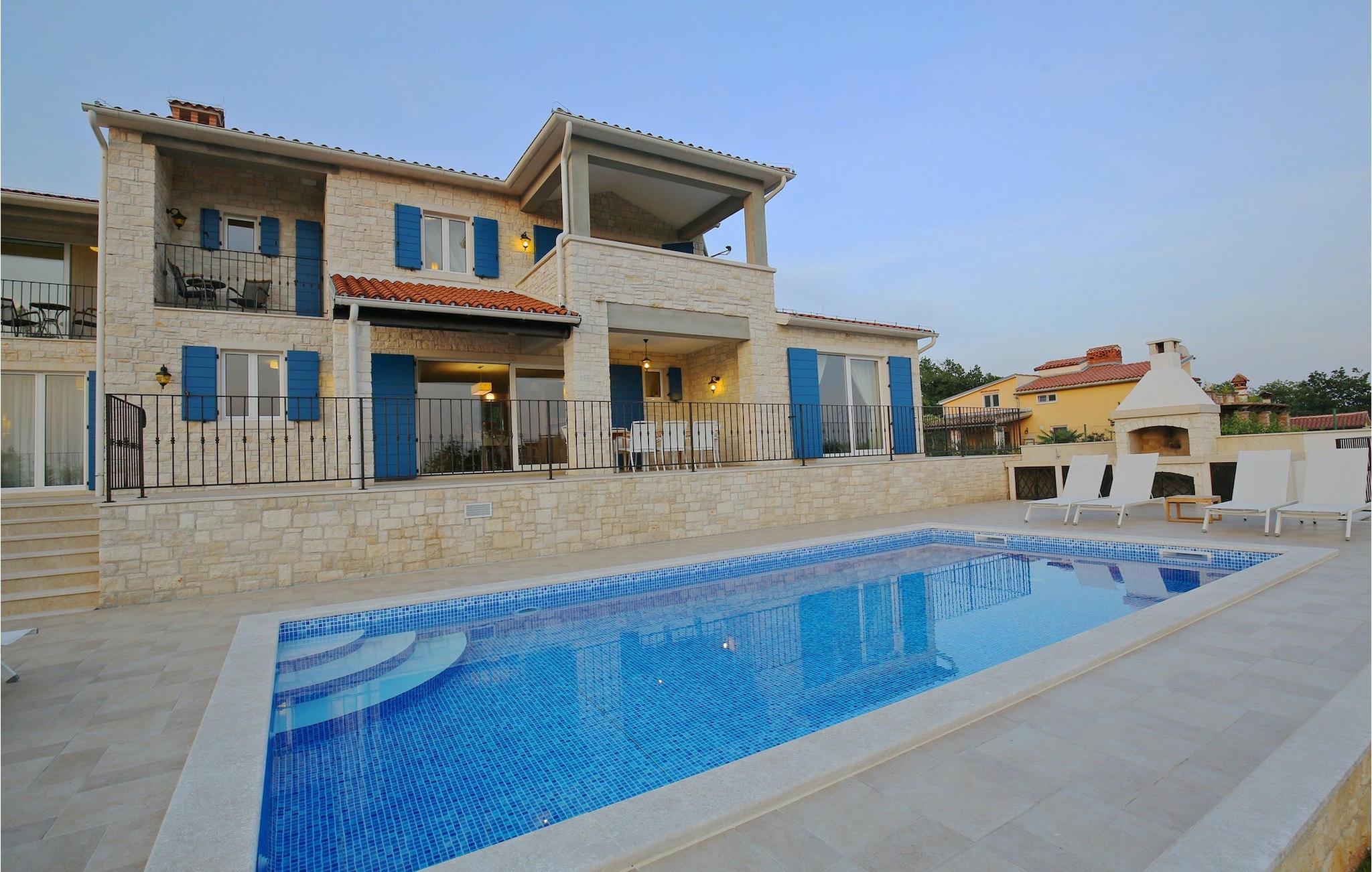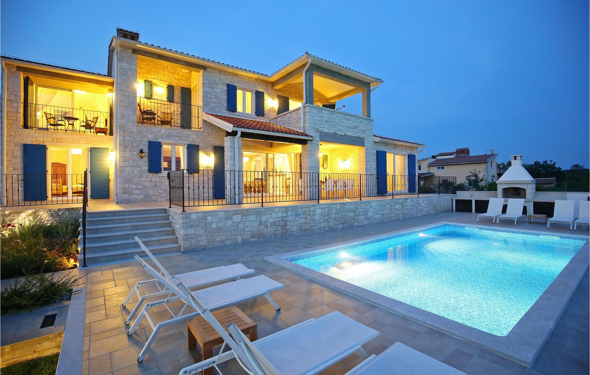 Die Villa Babudri befindet sich in dem kleinen Weiler Babudri, in der Nähe von Visnjan. Mit insgesamt 220 Quadratmetern Wohnfläche bietet sie Platz für bis zu 10 Personen und ein liebevoll eingerichtetes Interieur. Die zweistöckige Villa ist im rustikalen Design eingerichtet und vermittelt ein Gefühl von Gemütlichkeit und Komfort. Das Erdgeschoss besteht aus einem geräumigen Wohnzimmer mit TV, einer Essecke und einer voll ausgestatteten Küche. Im Erdgeschoss gibt es ein Schlafzimmer mit eigenem Bad und einen Wellnessbereich mit Sauna und Liegen, wo Sie sich entspannen können. Im Obergeschoss finden Sie drei Schlafzimmer mit eigenem Bad und eine Terrasse, auf der Sie die Privatsphäre und die herrliche Aussicht auf die Umgebung genießen können. Wenn Sie Ihren Urlaub in der Sonne verbringen möchten, befindet sich vor der Villa ein großer privater Pool, in dem Sie sich an heißen Sommertagen erfrischen können. Nur wenige Schritte entfernt befindet sich eine überdachte Terrasse, auf der Sie köstliche Mahlzeiten für Ihre Familie und Freunde zubereiten können. Also verpassen Sie nicht diese Gelegenheit und buchen Sie Villa Babudri jetzt und verbringen Sie die schönste Zeit in Kroatien!