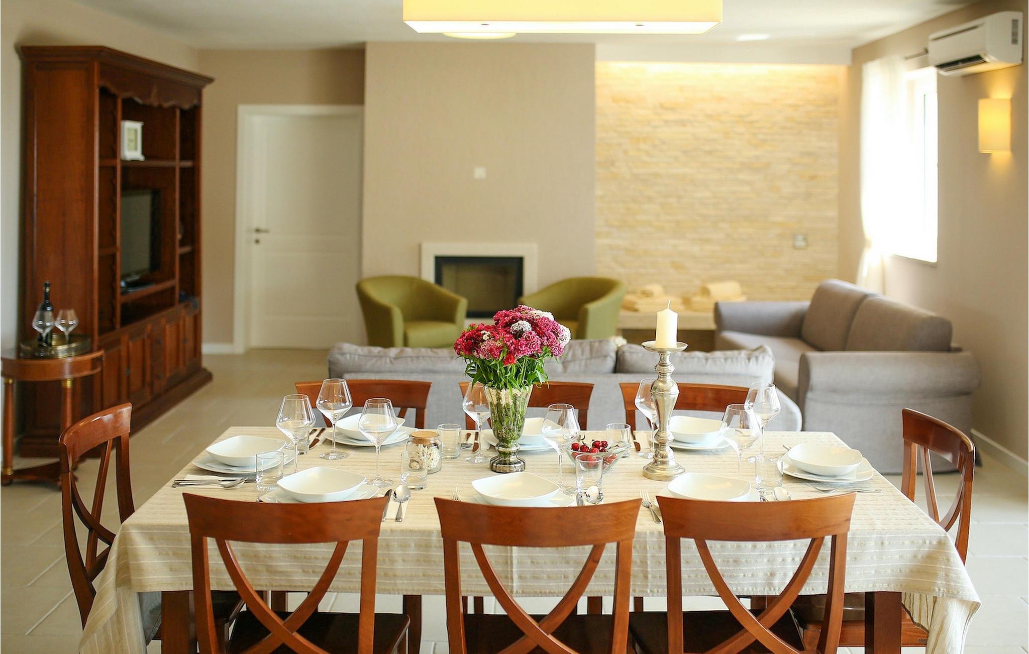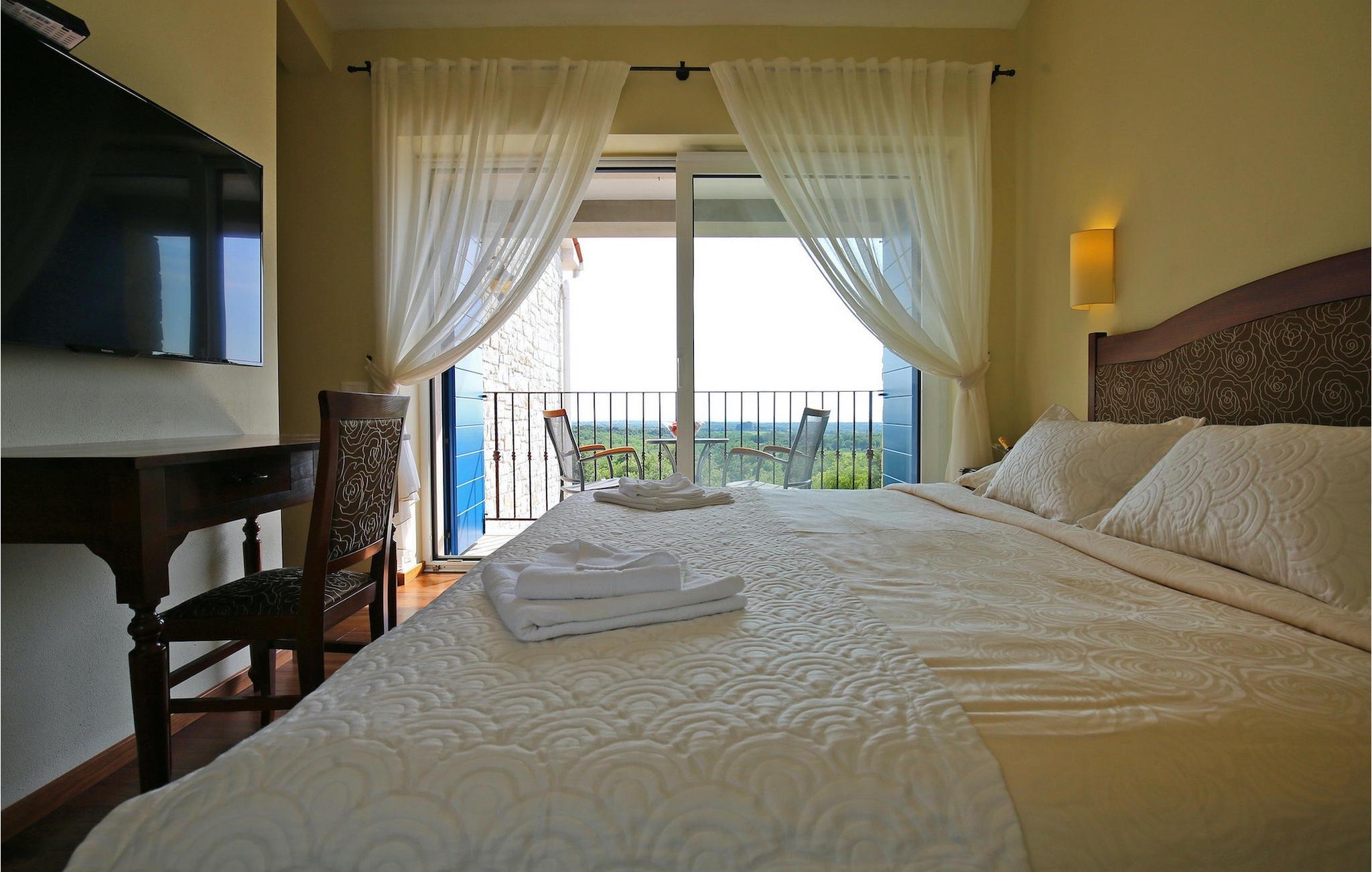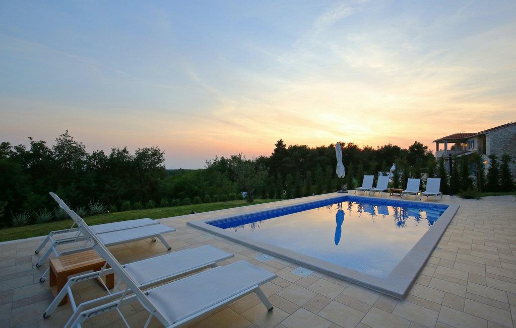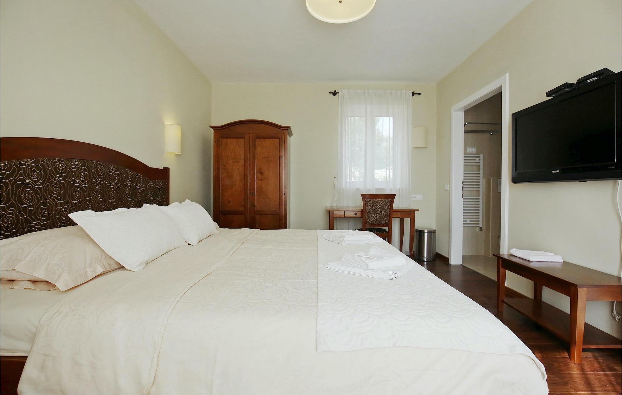 Die Villa Babudri befindet sich in dem kleinen Weiler Babudri, in der Nähe von Visnjan. Mit insgesamt 220 Quadratmetern Wohnfläche bietet sie Platz für bis zu 10 Personen und ein liebevoll eingerichtetes Interieur. Die zweistöckige Villa ist im rustikalen Design eingerichtet und vermittelt ein Gefühl von Gemütlichkeit und Komfort. Das Erdgeschoss besteht aus einem geräumigen Wohnzimmer mit TV, einer Essecke und einer voll ausgestatteten Küche. Im Erdgeschoss gibt es ein Schlafzimmer mit eigenem Bad und einen Wellnessbereich mit Sauna und Liegen, wo Sie sich entspannen können. Im Obergeschoss finden Sie drei Schlafzimmer mit eigenem Bad und eine Terrasse, auf der Sie die Privatsphäre und die herrliche Aussicht auf die Umgebung genießen können. Wenn Sie Ihren Urlaub in der Sonne verbringen möchten, befindet sich vor der Villa ein großer privater Pool, in dem Sie sich an heißen Sommertagen erfrischen können. Nur wenige Schritte entfernt befindet sich eine überdachte Terrasse, auf der Sie köstliche Mahlzeiten für Ihre Familie und Freunde zubereiten können. Also verpassen Sie nicht diese Gelegenheit und buchen Sie Villa Babudri jetzt und verbringen Sie die schönste Zeit in Kroatien!