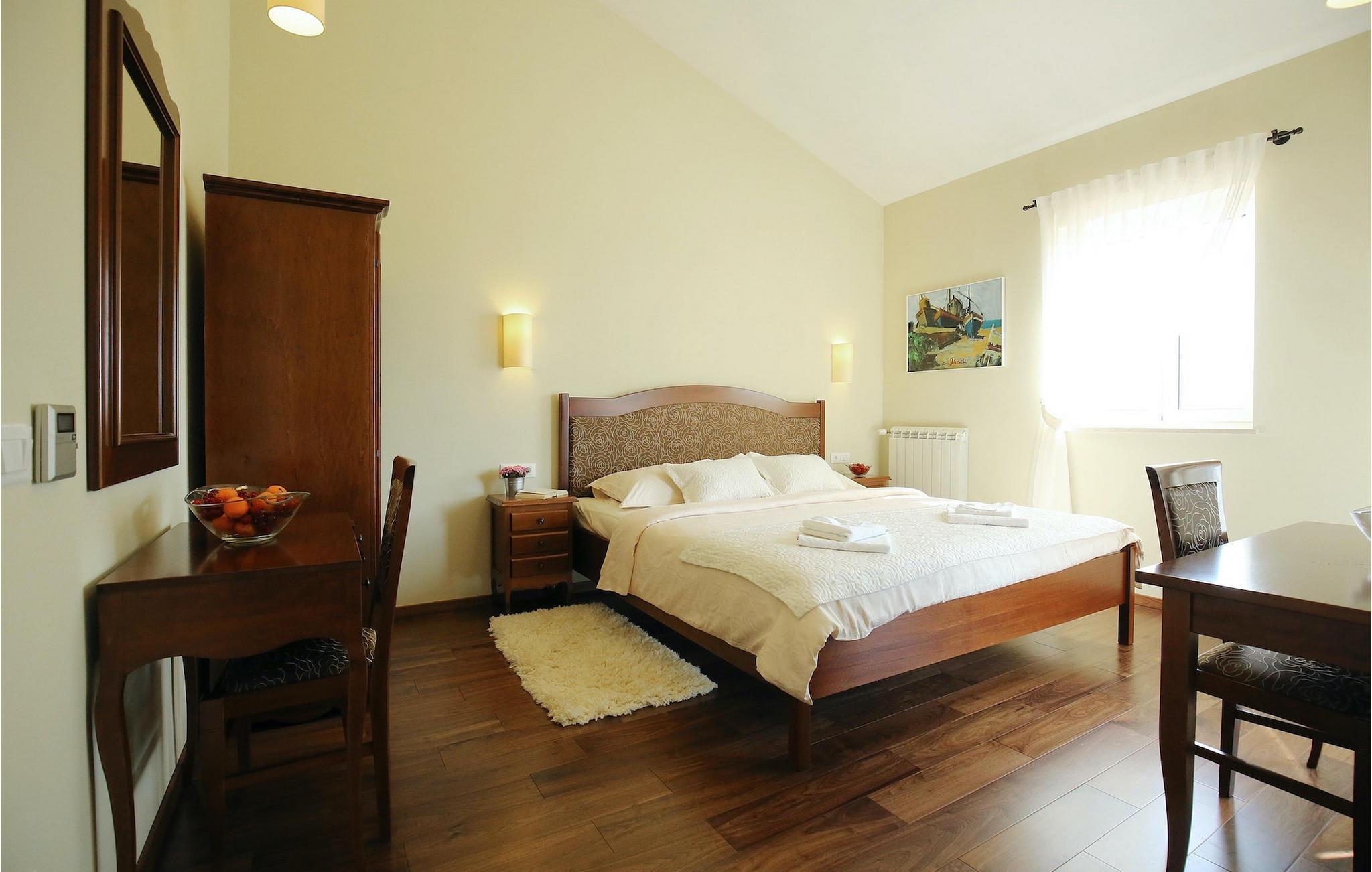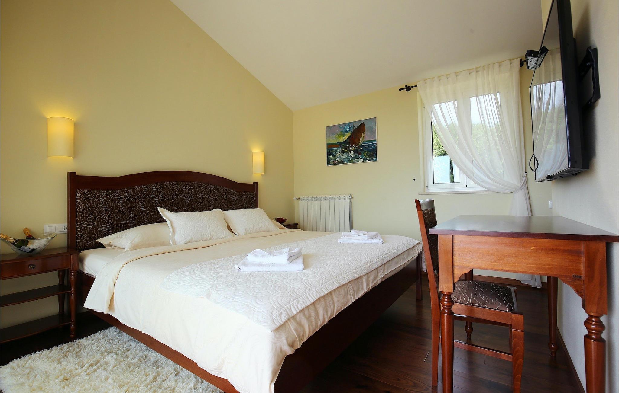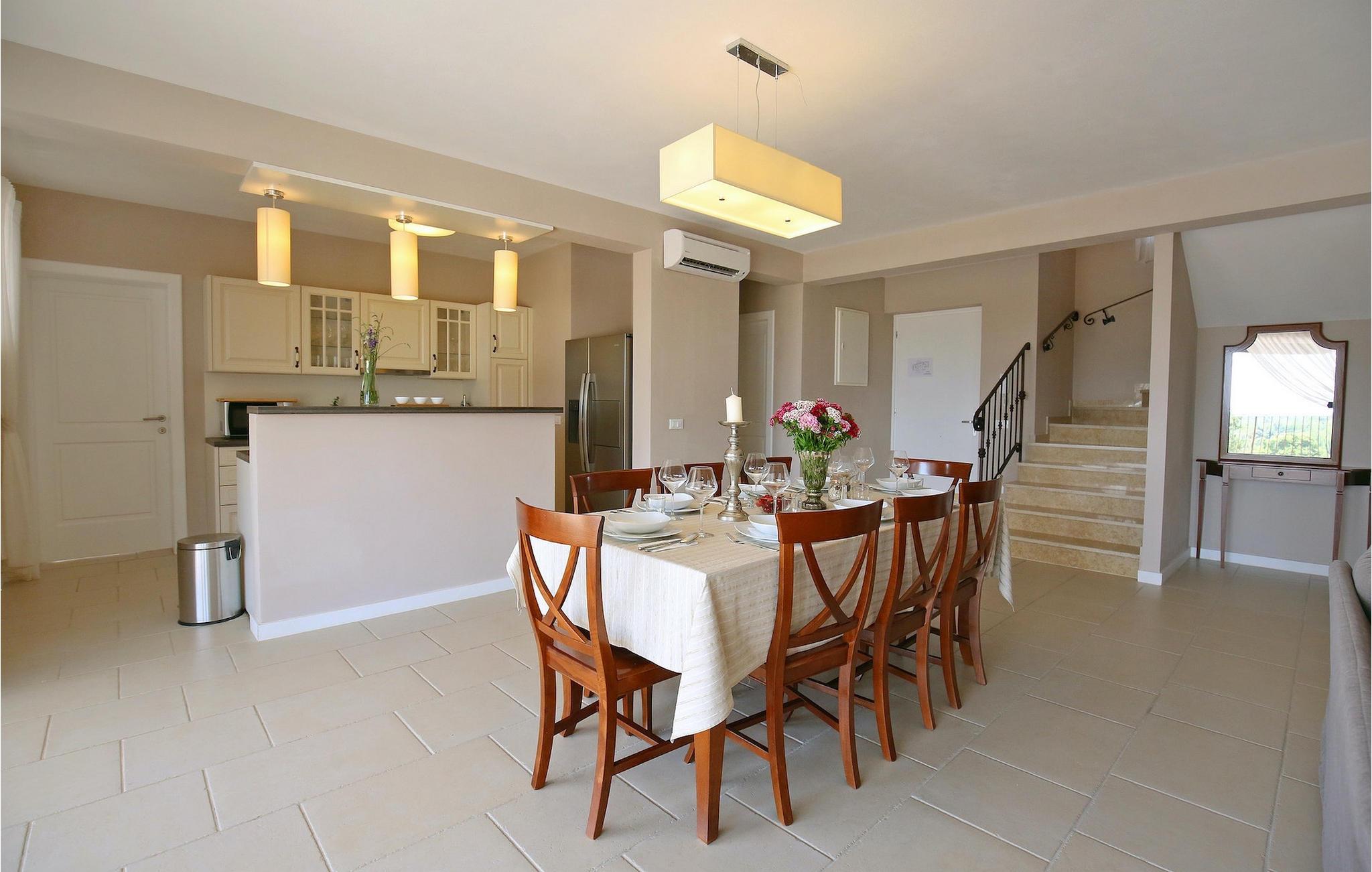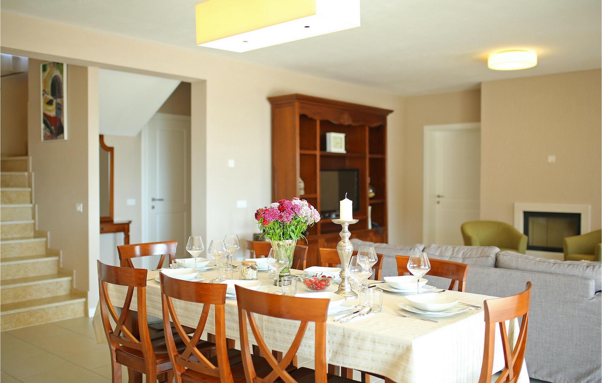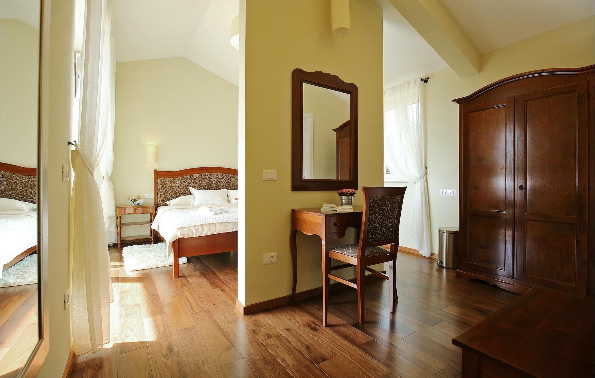 Die Villa Babudri befindet sich in dem kleinen Weiler Babudri, in der Nähe von Visnjan. Mit insgesamt 220 Quadratmetern Wohnfläche bietet sie Platz für bis zu 10 Personen und ein liebevoll eingerichtetes Interieur. Die zweistöckige Villa ist im rustikalen Design eingerichtet und vermittelt ein Gefühl von Gemütlichkeit und Komfort. Das Erdgeschoss besteht aus einem geräumigen Wohnzimmer mit TV, einer Essecke und einer voll ausgestatteten Küche. Im Erdgeschoss gibt es ein Schlafzimmer mit eigenem Bad und einen Wellnessbereich mit Sauna und Liegen, wo Sie sich entspannen können. Im Obergeschoss finden Sie drei Schlafzimmer mit eigenem Bad und eine Terrasse, auf der Sie die Privatsphäre und die herrliche Aussicht auf die Umgebung genießen können. Wenn Sie Ihren Urlaub in der Sonne verbringen möchten, befindet sich vor der Villa ein großer privater Pool, in dem Sie sich an heißen Sommertagen erfrischen können. Nur wenige Schritte entfernt befindet sich eine überdachte Terrasse, auf der Sie köstliche Mahlzeiten für Ihre Familie und Freunde zubereiten können. Also verpassen Sie nicht diese Gelegenheit und buchen Sie Villa Babudri jetzt und verbringen Sie die schönste Zeit in Kroatien!