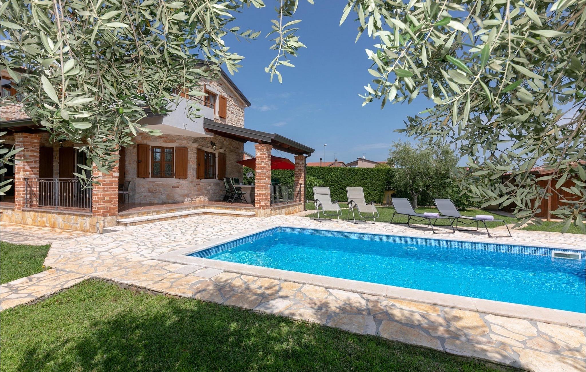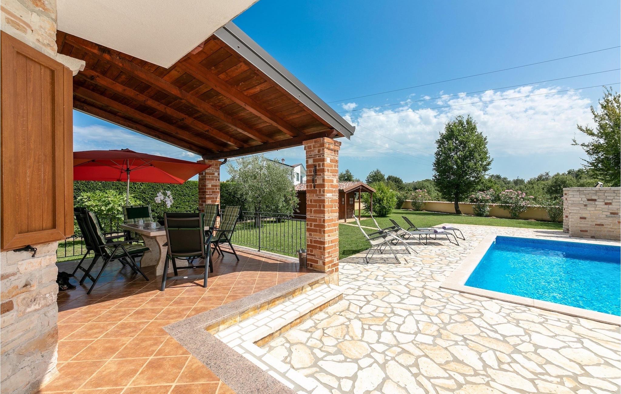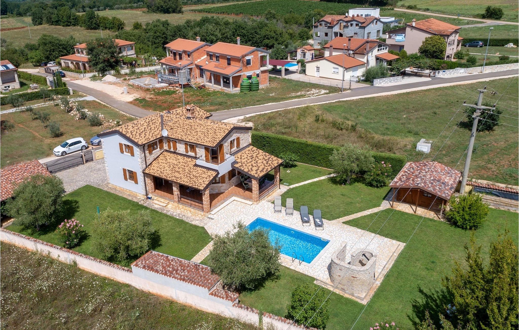 Villa Shirin ist eine wunderschöne Familienvilla umgeben von viel Natur und könnte der ideale Ort für Ihren erholsamen Urlaub in Istrien sein. Sie werden wahrscheinlich die meiste Zeit im wunderschönen Außenbereich der Villa verbringen. Es gibt einen gepflegten Garten, viel Platz zum Spielen für Kinder, einen privaten und beheizbaren Pool mit bequemen Sonnenliegen und einen überdachten Essbereich im Freien mit Holzkohlegrill für die Zubereitung köstlicher Mahlzeiten. Genuss, Entspannung und Spaß kommen hier garantiert auf. Von hier aus gelangen die Gäste in den Wohnbereich im Erdgeschoss, der eine voll ausgestattete Küche mit Essbereich, ein gemütliches Wohnzimmer mit Kamin, ein Badezimmer mit Dusche und ein Schlafzimmer mit Doppelbett umfasst. Drei weitere Schlafzimmer und zwei Badezimmer befinden sich im Obergeschoss. Das erste Schlafzimmer ist klimatisiert und verfügt über einen TV und ein Doppelbett. Das zweite Schlafzimmer enthält ebenfalls ein Doppelbett, hat aber auch eine Klimaanlage und ein eigenes Badezimmer mit Dusche. Das dritte und letzte Schlafzimmer hat eine Klimaanlage und ein Doppelbett. Besucher haben auch Zugang zu einem weiteren Badezimmer mit Badewanne auf dieser Etage. Man kann mit Sicherheit sagen, dass Vila Shirin aufgrund seiner Annehmlichkeiten und seiner Lage ein fantastisches Reiseziel ist, um sich und Ihrer Familie einen wundervollen Urlaub in Istrien zu gönnen. Beginnen Sie also sofort mit der Planung Ihres Urlaubs!Die Villa Shirin befindet sich in der kleinen Stadt Višnjan, in der Nähe von Porec und Novigrad. Mit ihrer Lage inmitten der Natur und dennoch in der Nähe von Städten, Geschäften und Stränden ist diese Villa eine gute Wahl für einen erholsamen Urlaub mit Ihrer Familie und Freunden. Der Strand ist nur etwa 8 Kilometer mit dem Auto entfernt in der Stadt Porec. Diese Stadt bietet Ihnen atemberaubende Strände und Buchten, in denen Sie den ganzen Tag im kristallklaren und türkisfarbenen Wasser der Adria schwimmen und den Sommer wirklich genießen können. Sie können erstaunliche Architektur und historische Stätten sehen, preisgekrönte Restaurants und charmante Tavernen besuchen, um einige traditionelle Gerichte aus dieser Region zu probieren, und die Einheimischen werden Sie überall herzlich willkommen heißen. Während Ihres Aufenthalts in der Villa Shirin können Sie auch charmante kleinere Städte wie Motovun, Novigrad und Umag besuchen, wo Sie definitiv den istrischen Geist spüren werden. Zögern Sie also nicht, diese atemberaubende Region zu besuchen; Sie werden einen Urlaub verbringen, an den Sie sich erinnern werden!
