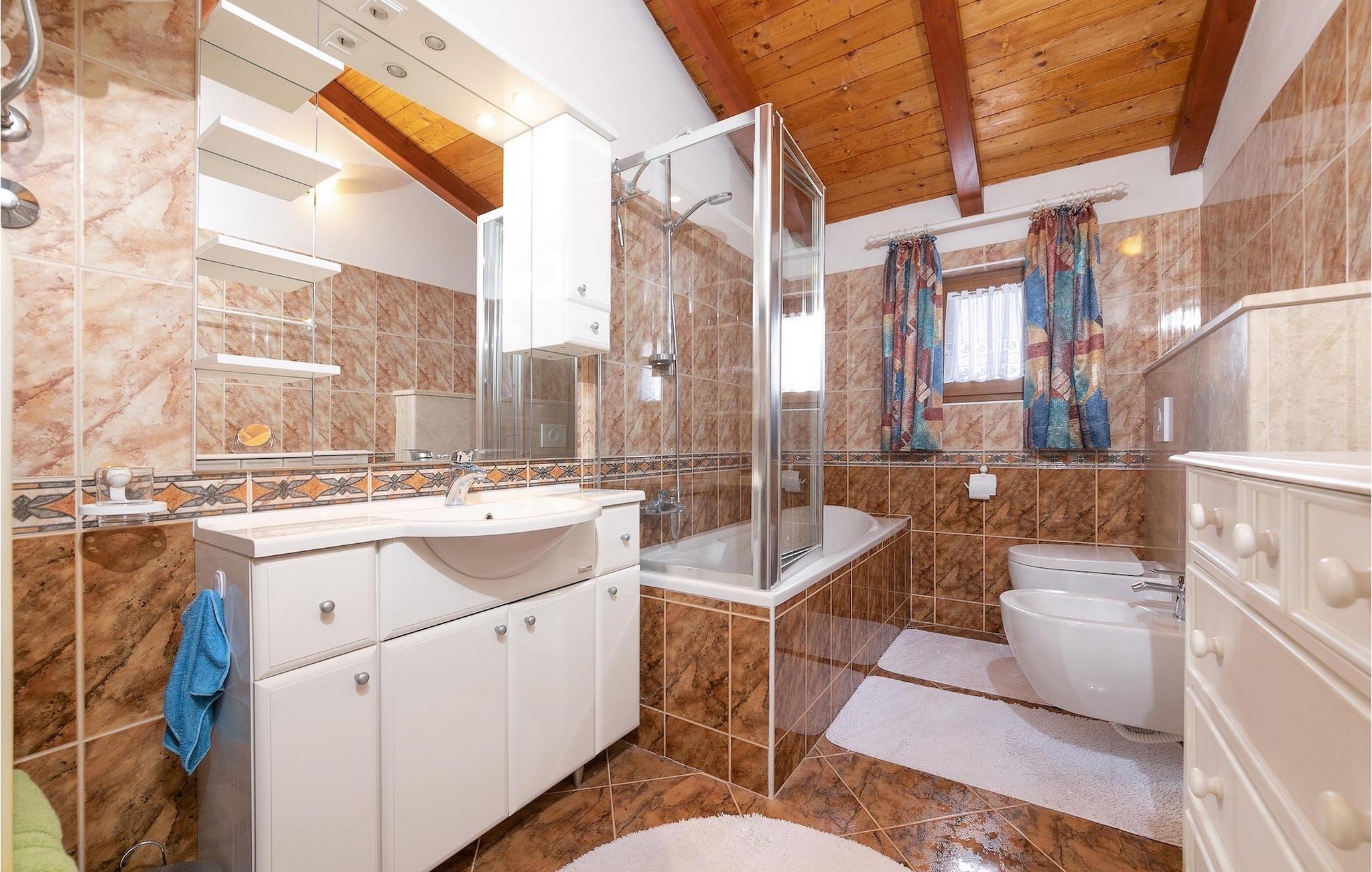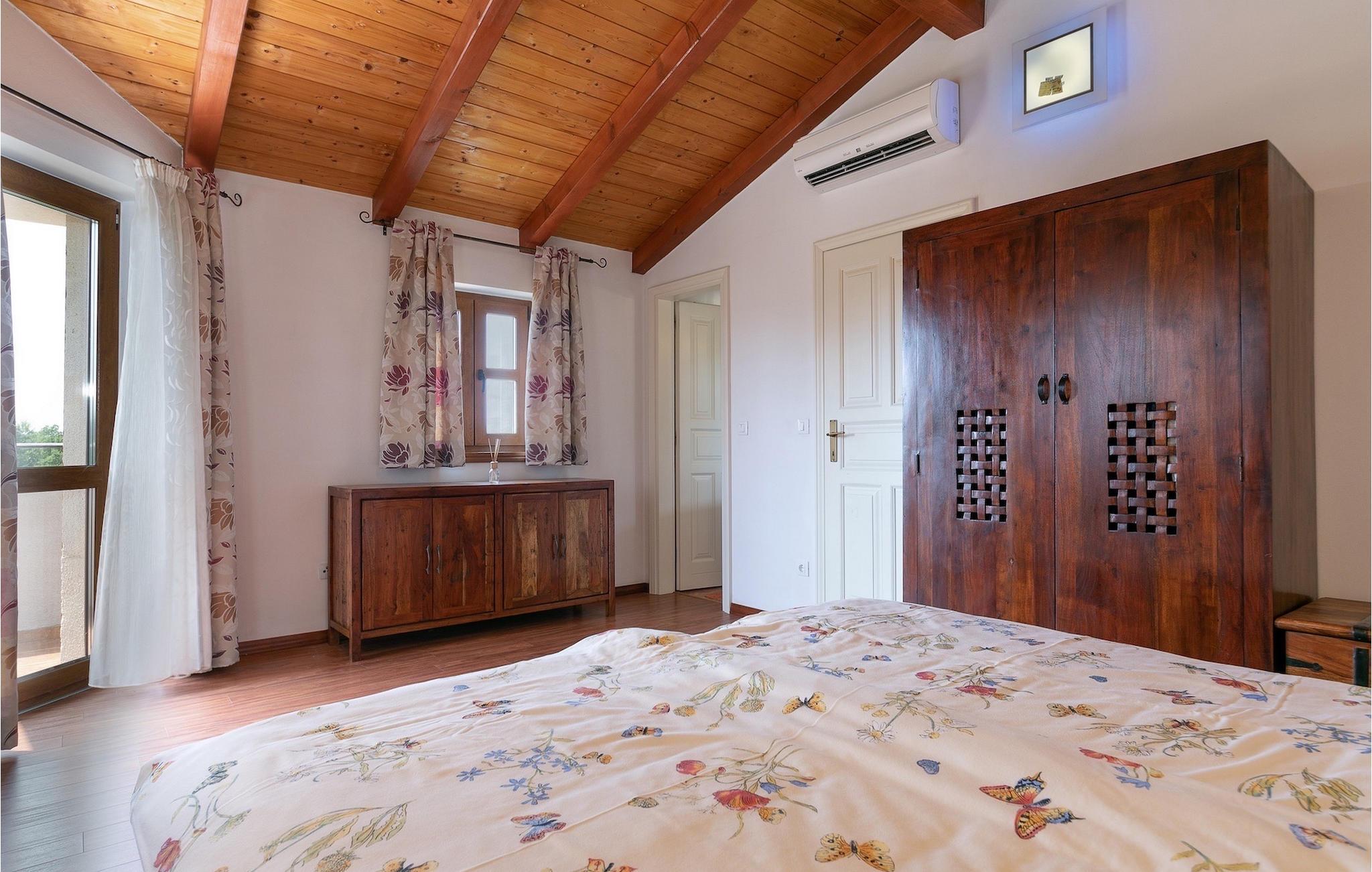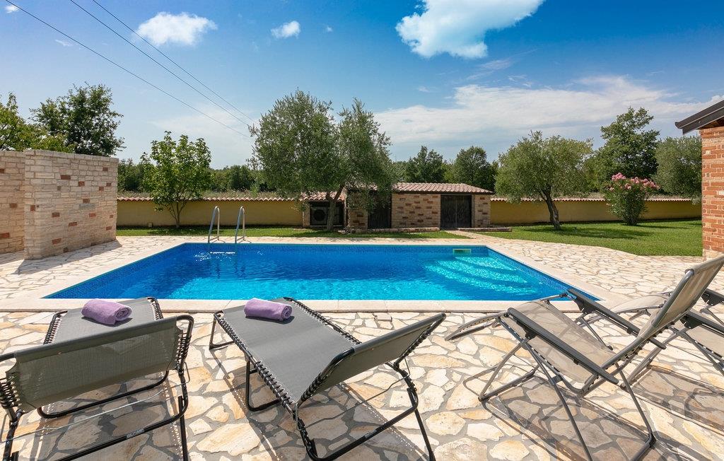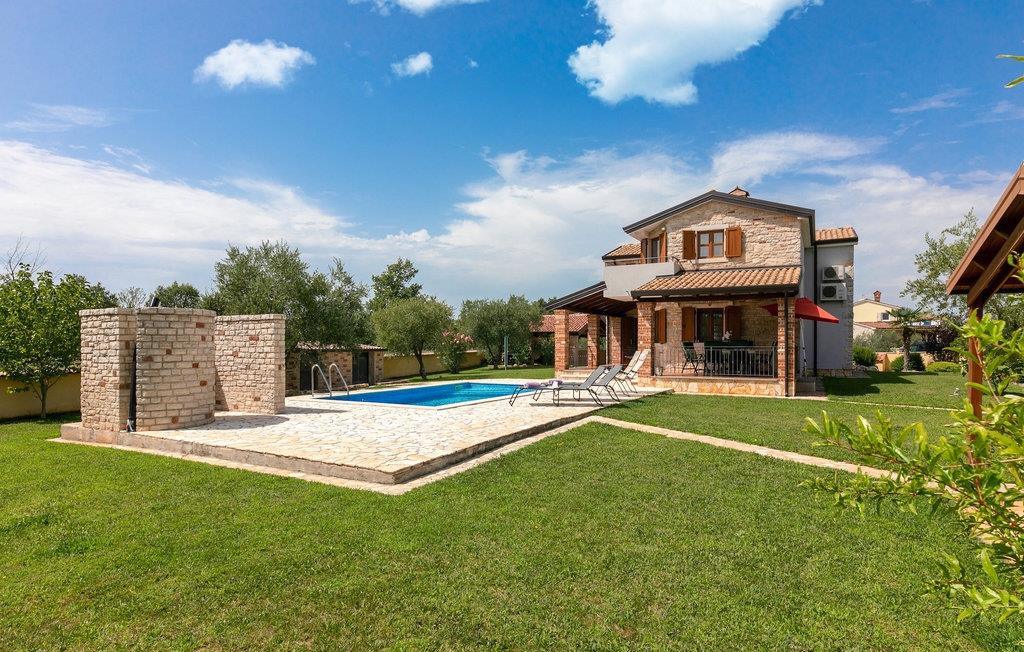 Villa Shirin ist eine wunderschöne Familienvilla umgeben von viel Natur und könnte der ideale Ort für Ihren erholsamen Urlaub in Istrien sein. Sie werden wahrscheinlich die meiste Zeit im wunderschönen Außenbereich der Villa verbringen. Es gibt einen gepflegten Garten, viel Platz zum Spielen für Kinder, einen privaten und beheizbaren Pool mit bequemen Sonnenliegen und einen überdachten Essbereich im Freien mit Holzkohlegrill für die Zubereitung köstlicher Mahlzeiten. Genuss, Entspannung und Spaß kommen hier garantiert auf. Von hier aus gelangen die Gäste in den Wohnbereich im Erdgeschoss, der eine voll ausgestattete Küche mit Essbereich, ein gemütliches Wohnzimmer mit Kamin, ein Badezimmer mit Dusche und ein Schlafzimmer mit Doppelbett umfasst. Drei weitere Schlafzimmer und zwei Badezimmer befinden sich im Obergeschoss. Das erste Schlafzimmer ist klimatisiert und verfügt über einen TV und ein Doppelbett. Das zweite Schlafzimmer enthält ebenfalls ein Doppelbett, hat aber auch eine Klimaanlage und ein eigenes Badezimmer mit Dusche. Das dritte und letzte Schlafzimmer hat eine Klimaanlage und ein Doppelbett. Besucher haben auch Zugang zu einem weiteren Badezimmer mit Badewanne auf dieser Etage. Man kann mit Sicherheit sagen, dass Vila Shirin aufgrund seiner Annehmlichkeiten und seiner Lage ein fantastisches Reiseziel ist, um sich und Ihrer Familie einen wundervollen Urlaub in Istrien zu gönnen. Beginnen Sie also sofort mit der Planung Ihres Urlaubs!Die Villa Shirin befindet sich in der kleinen Stadt Višnjan, in der Nähe von Porec und Novigrad. Mit ihrer Lage inmitten der Natur und dennoch in der Nähe von Städten, Geschäften und Stränden ist diese Villa eine gute Wahl für einen erholsamen Urlaub mit Ihrer Familie und Freunden. Der Strand ist nur etwa 8 Kilometer mit dem Auto entfernt in der Stadt Porec. Diese Stadt bietet Ihnen atemberaubende Strände und Buchten, in denen Sie den ganzen Tag im kristallklaren und türkisfarbenen Wasser der Adria schwimmen und den Sommer wirklich genießen können. Sie können erstaunliche Architektur und historische Stätten sehen, preisgekrönte Restaurants und charmante Tavernen besuchen, um einige traditionelle Gerichte aus dieser Region zu probieren, und die Einheimischen werden Sie überall herzlich willkommen heißen. Während Ihres Aufenthalts in der Villa Shirin können Sie auch charmante kleinere Städte wie Motovun, Novigrad und Umag besuchen, wo Sie definitiv den istrischen Geist spüren werden. Zögern Sie also nicht, diese atemberaubende Region zu besuchen; Sie werden einen Urlaub verbringen, an den Sie sich erinnern werden!