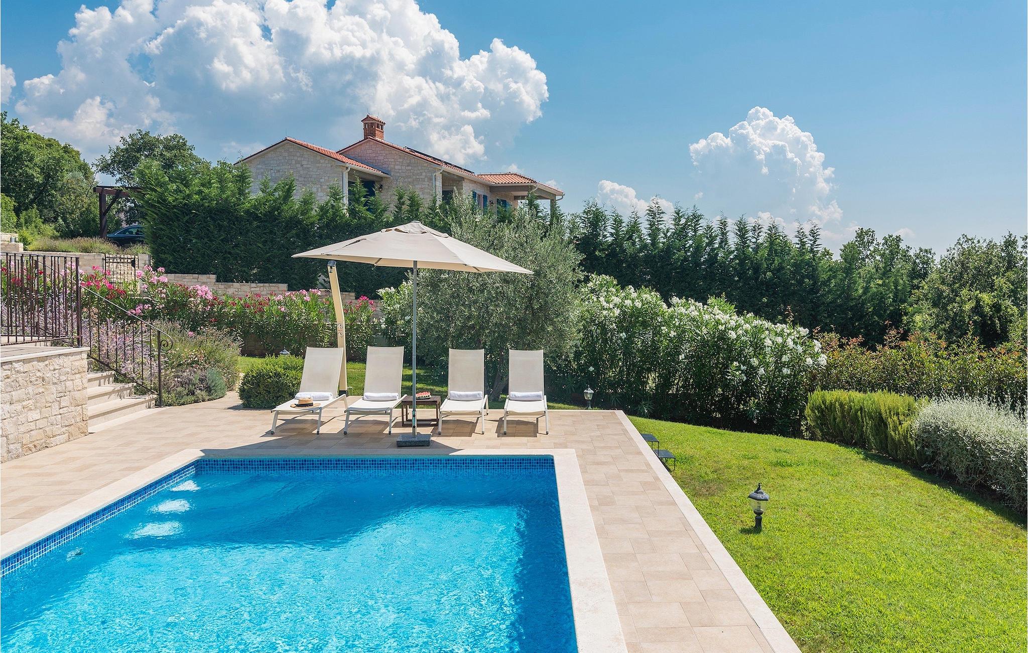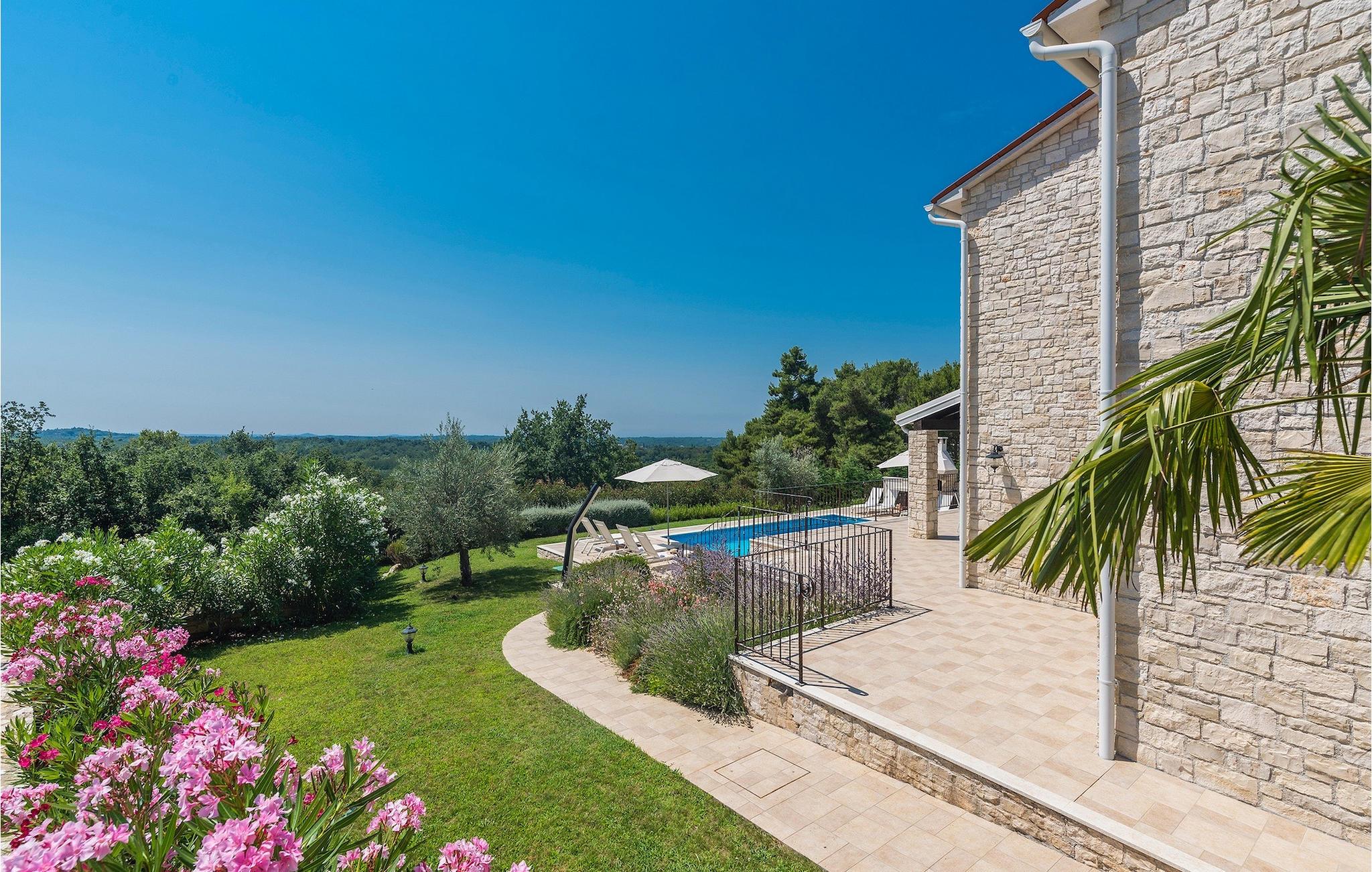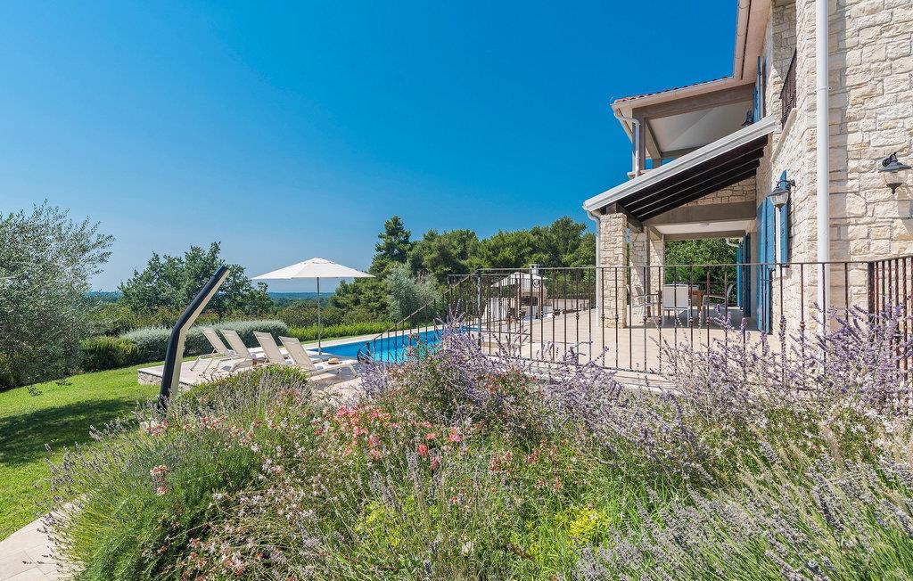 Die Villa Sterpazzi ist eine traditionelle istrische Villa mit einer Steinfassade und blauen Fensterläden. Sie ist von viel Grün und Blumen umgeben, was Sie vor allem durch den Duft von Lavendel bemerken werden, der sich durch das Anwesen ausbreitet.