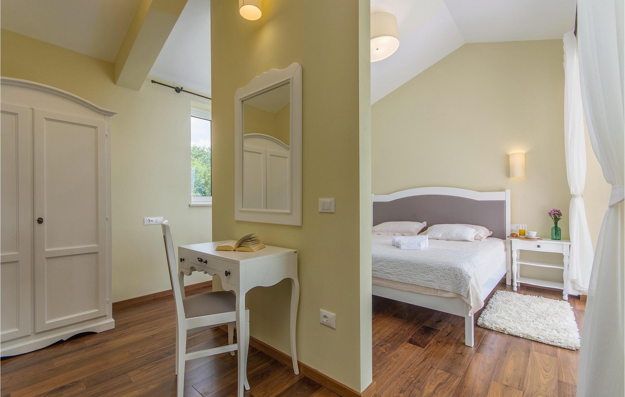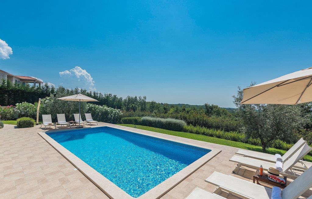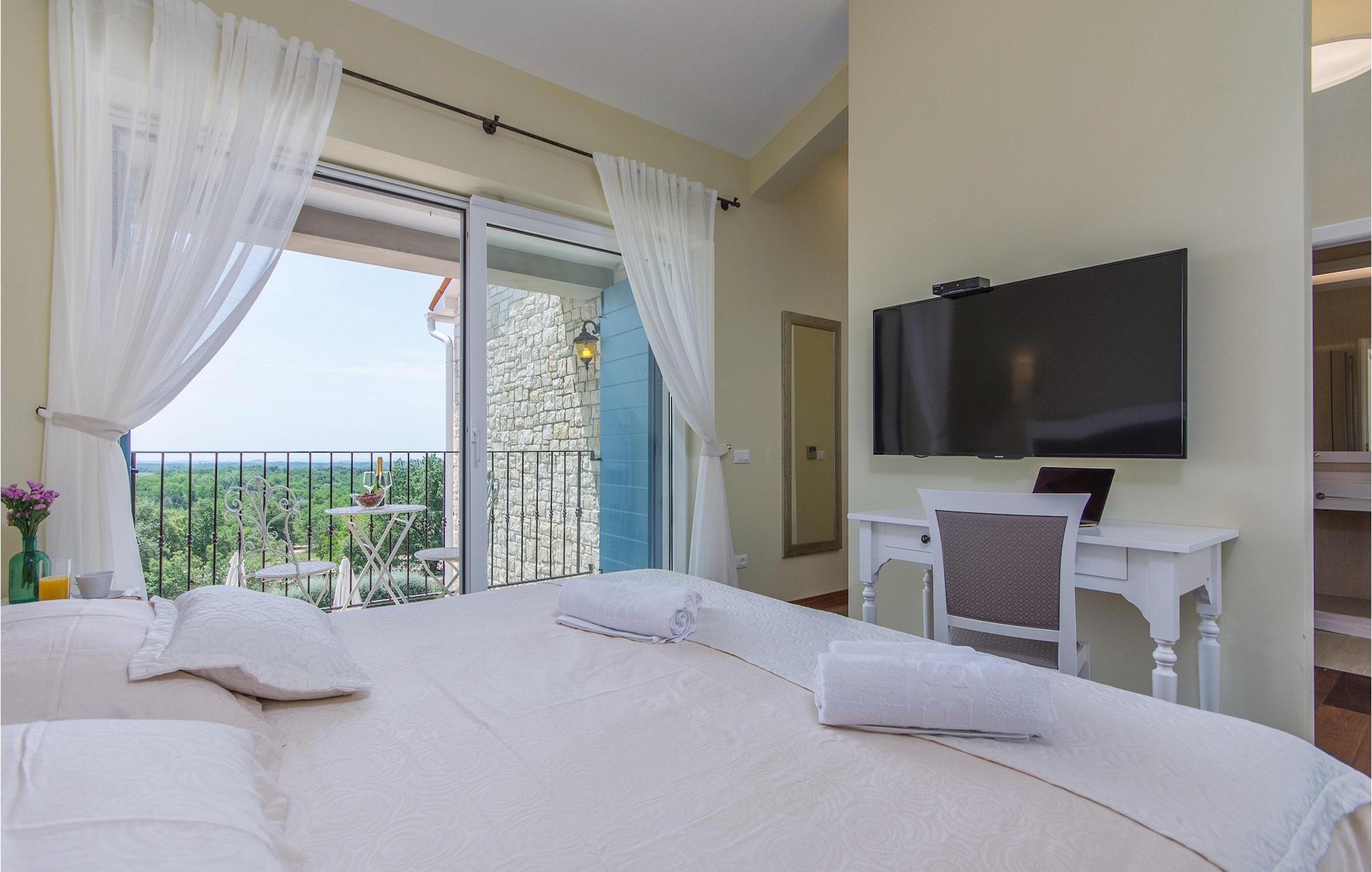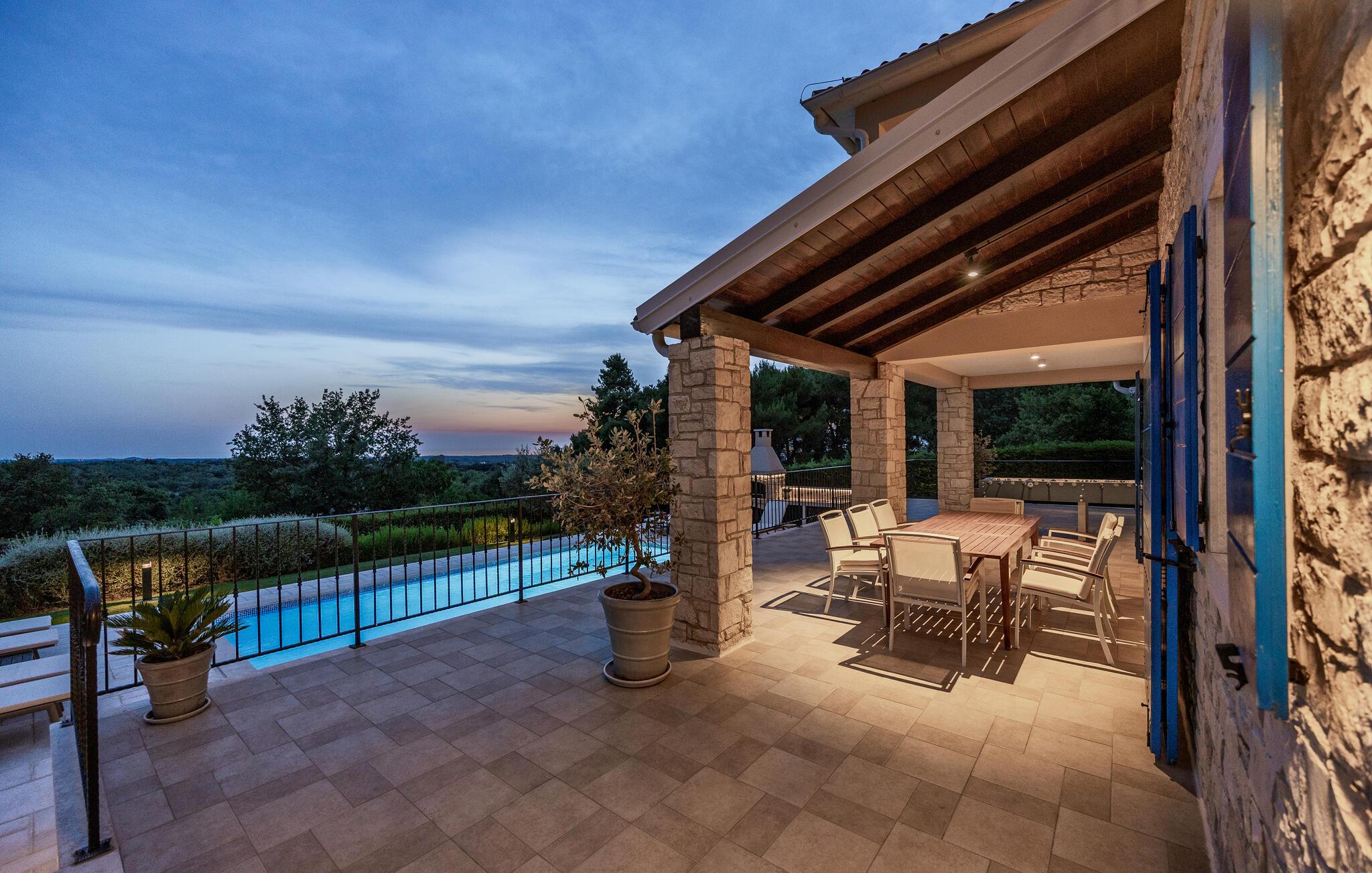 Die Villa Sterpazzi ist eine traditionelle istrische Villa mit einer Steinfassade und blauen Fensterläden. Sie ist von viel Grün und Blumen umgeben, was Sie vor allem durch den Duft von Lavendel bemerken werden, der sich durch das Anwesen ausbreitet.
