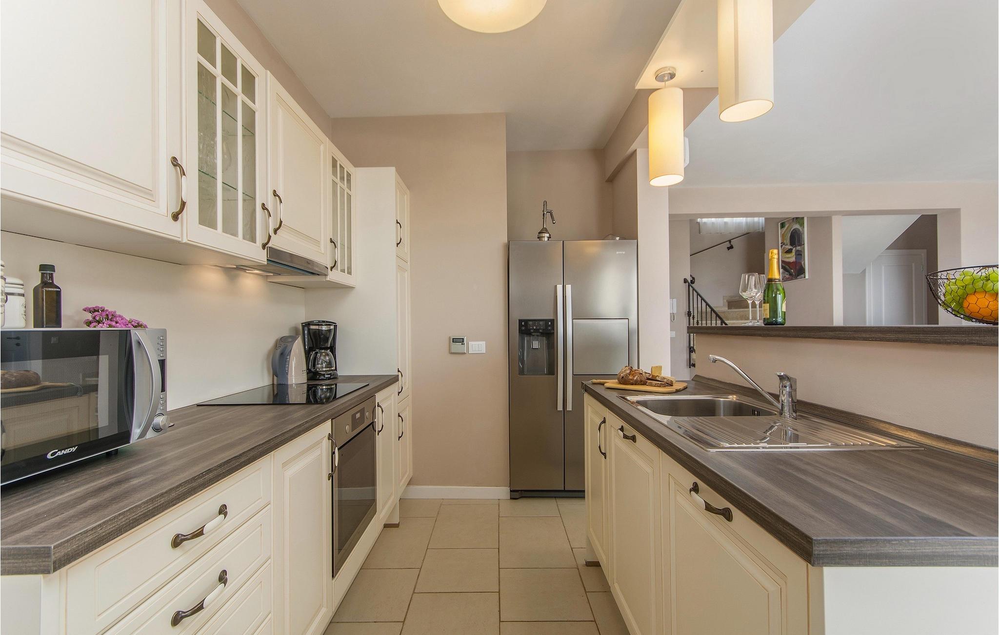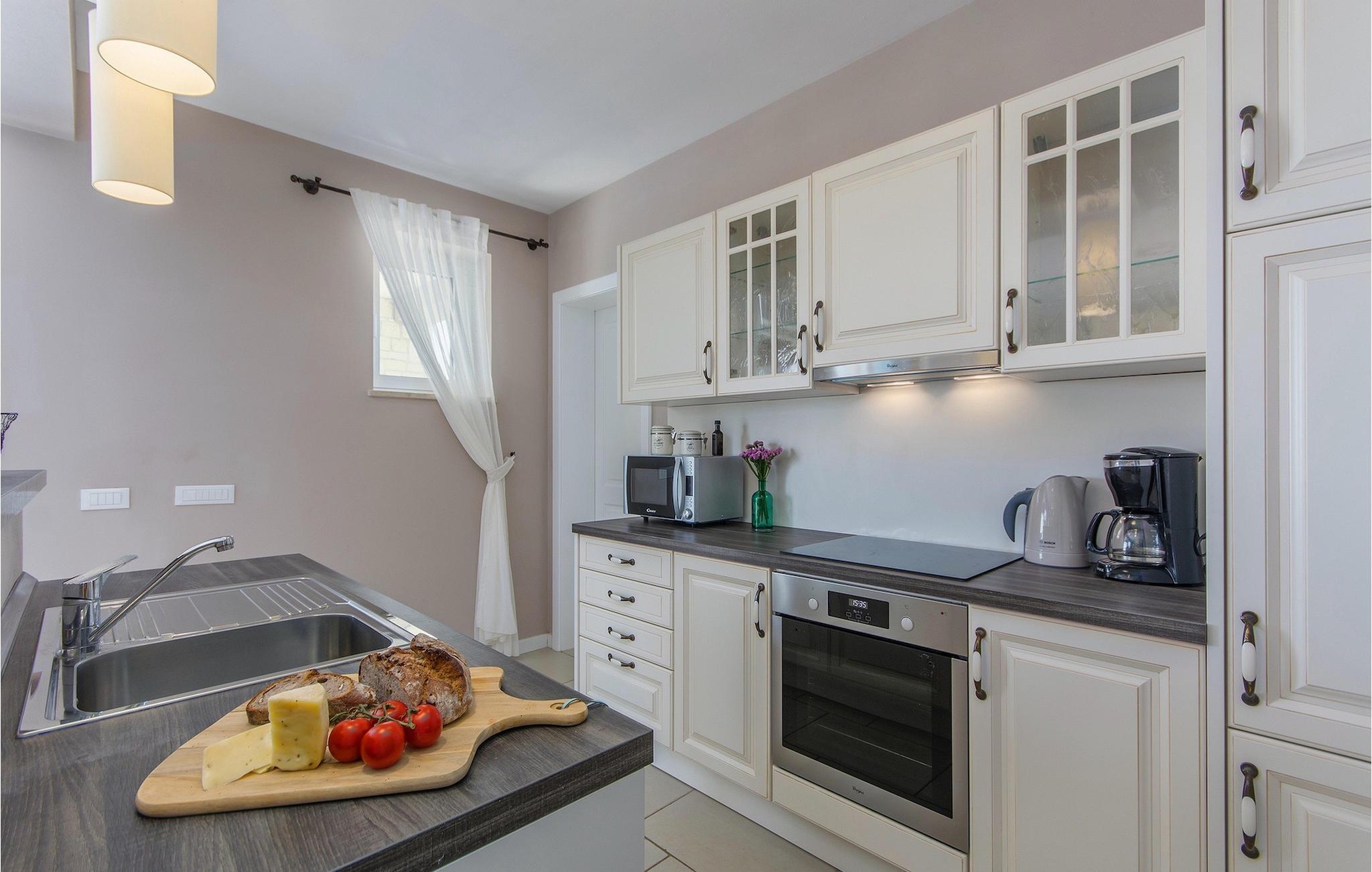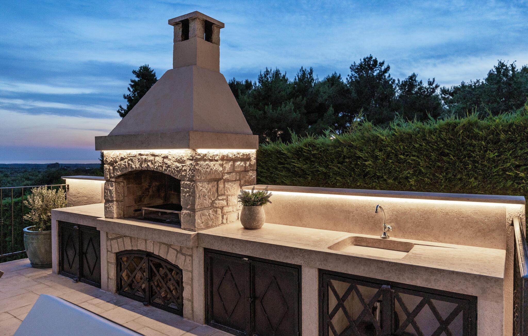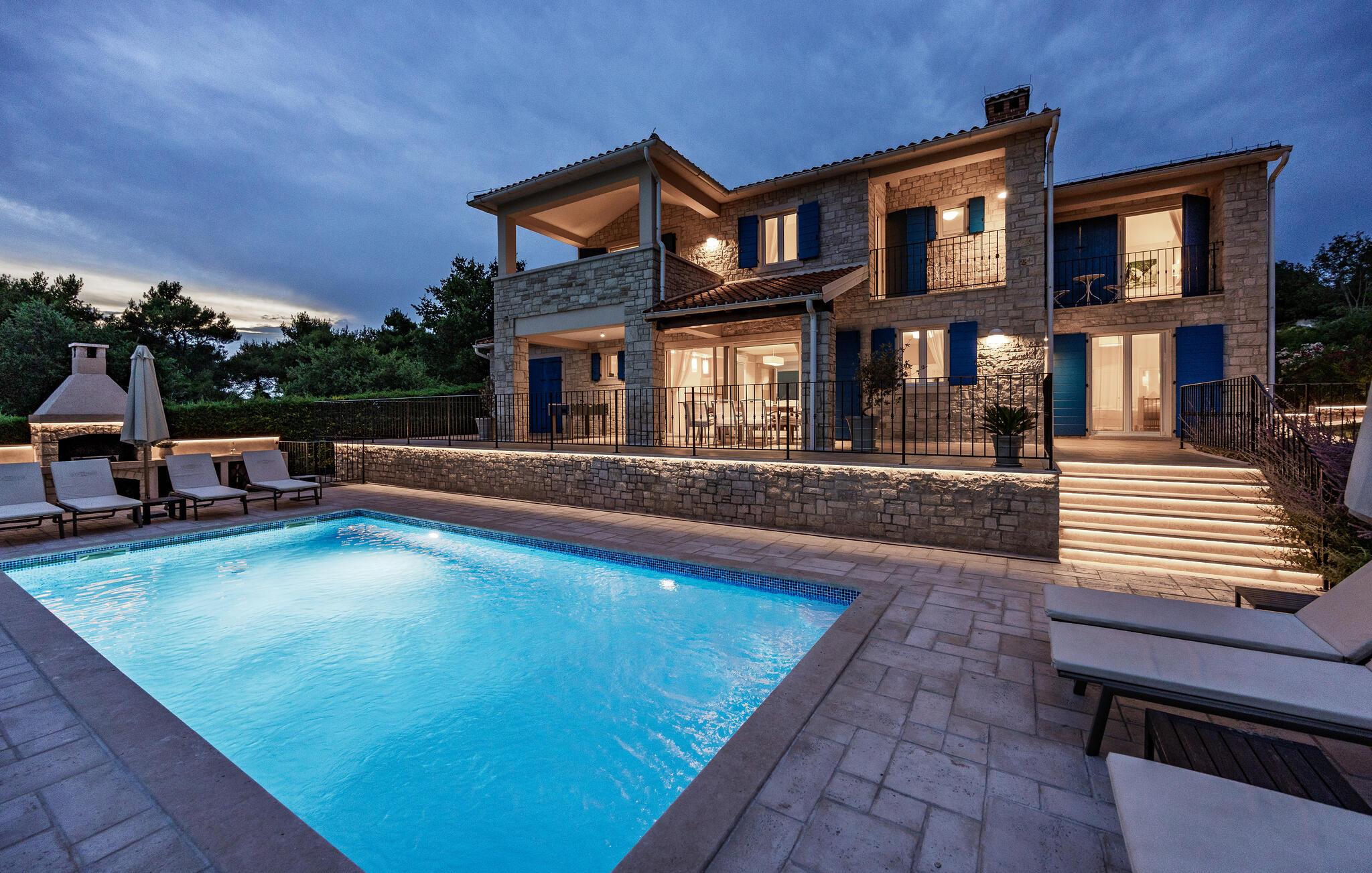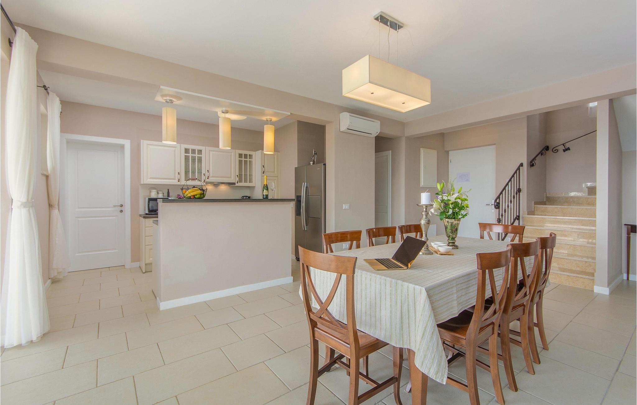 Machen Sie eine Pause von Ihrem stressigen Alltag in dieser charmanten, rustikalen Villa für 8 Personen mit Blick auf die Hügel und das Meer. Beginnen Sie Ihren wohlverdienten Urlaub mit einem Sprung in den privaten Pool oder lesen Sie ein Buch auf den Liegestühlen unter dem Sonnenschirm. Die geräumige überdachte Terrasse ist der perfekte Ort, um die auf dem Außengrill oder in der voll ausgestatteten Küche zubereiteten Mahlzeiten zu genießen. Im Erdgeschoss bilden Küche, Esszimmer und Wohnzimmer einen großzügigen Raum mit offenem Grundriss, der durch Glastüren direkt mit der Terrasse verbunden ist. Eine besondere Ergänzung des Wohnzimmers ist der Kamin, der in den Winter- oder Sommermonaten für eine besondere Atmosphäre sorgt. Diese besondere Villa ist trotz ihres rustikalen Äußeren mit allen Annehmlichkeiten ausgestattet, die für ein modernes Leben notwendig sind - sie ist voll klimatisiert und verfügt über Fußbodenheizung im ganzen Haus. Für zusätzlichen Komfort, insbesondere für Familien mit Kindern, gibt es im Erdgeschoss außerdem ein geräumiges Schlafzimmer mit eigenem Bad und ein zusätzliches separates WC.