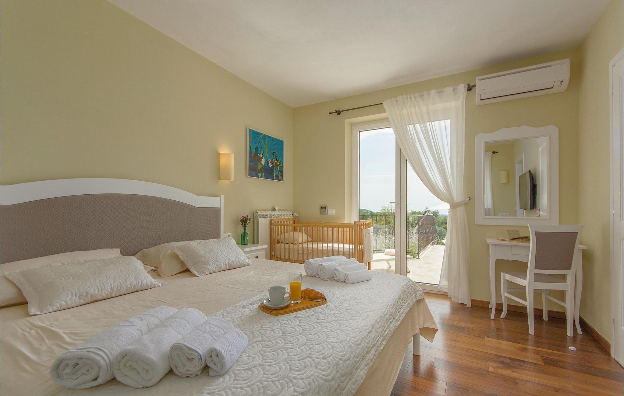 Auf der oberen Etage finden Sie die restlichen elegant eingerichteten Schlafzimmer, die wie das Schlafzimmer im Erdgeschoss, komplett mit Kingsize-Betten, Fernseher und Klimaanlagen ausgestattet sind. Das Besondere an dieser Villa ist, dass alle Schlafzimmer zusätzlich zu den oben genannten Ausstattungsmerkmalen jeweils über ein eigenes Bad und einen Balkon verfügen. Stellen Sie sich vor, Ihren Morgenkaffee auf dem Balkon Ihres Zimmers mit einer beruhigenden und atemberaubenden Aussicht zu trinken!