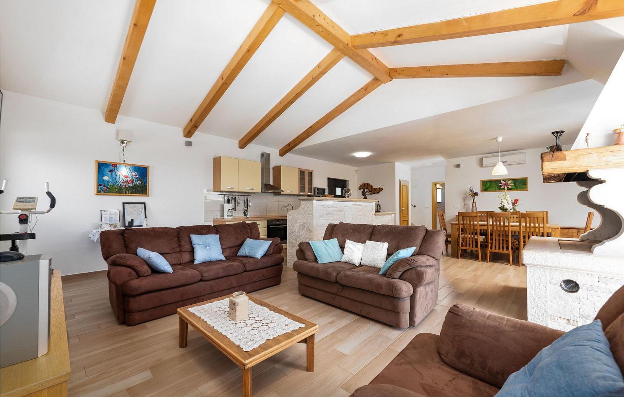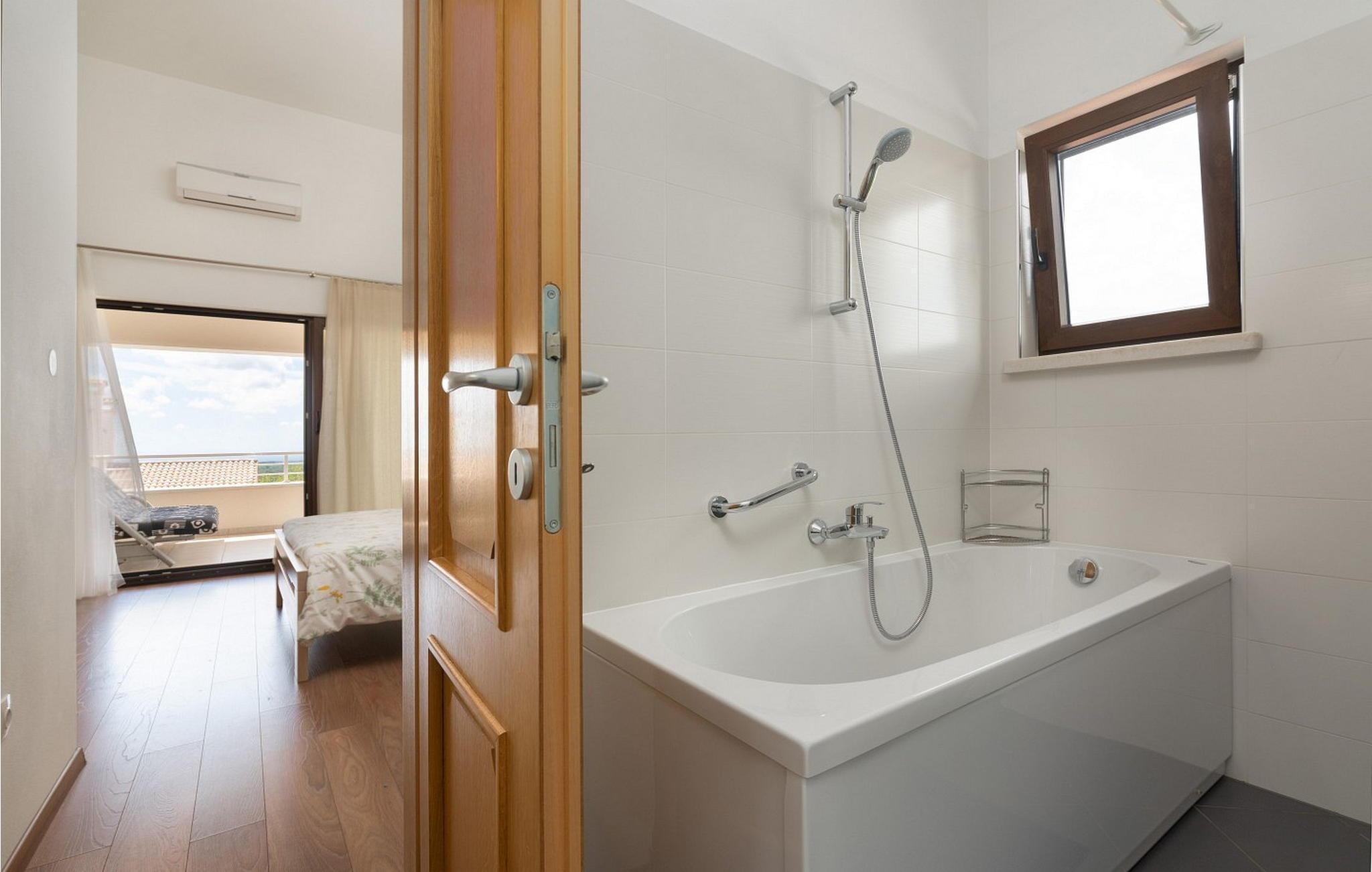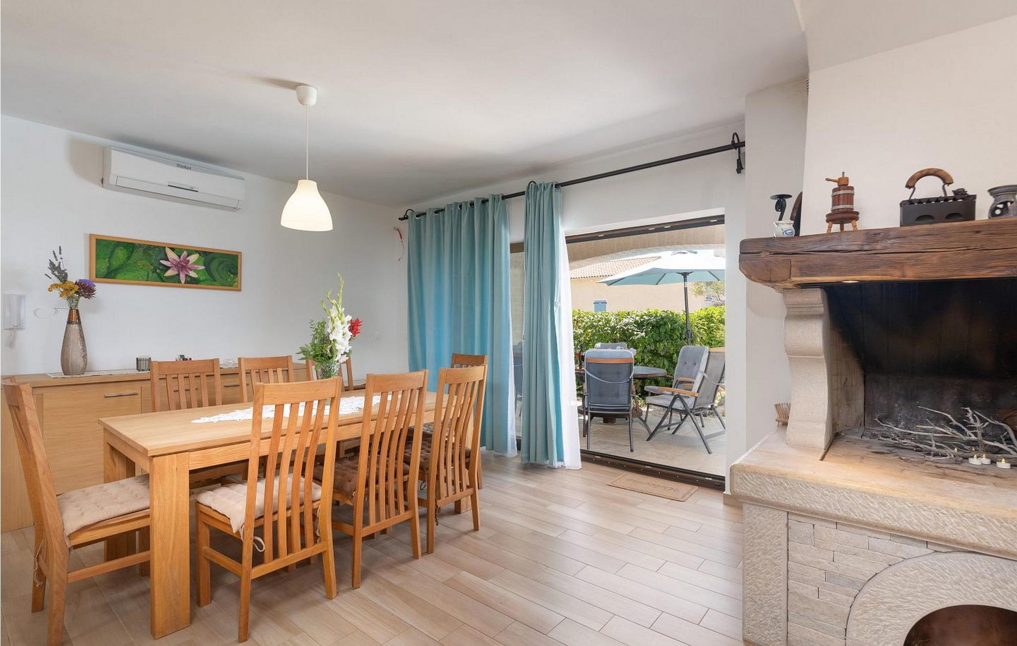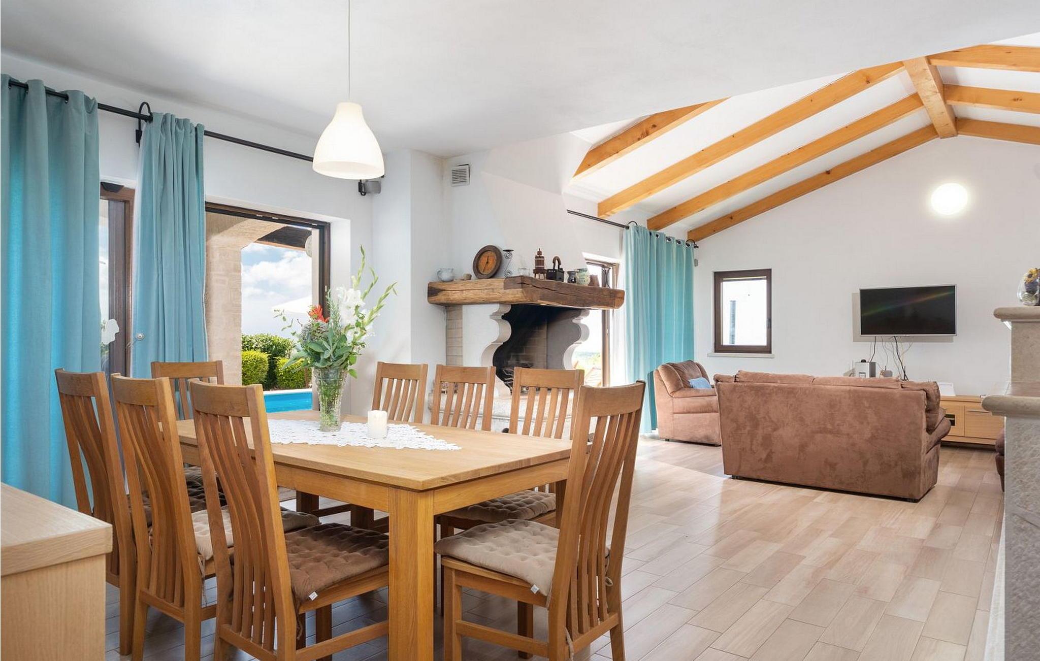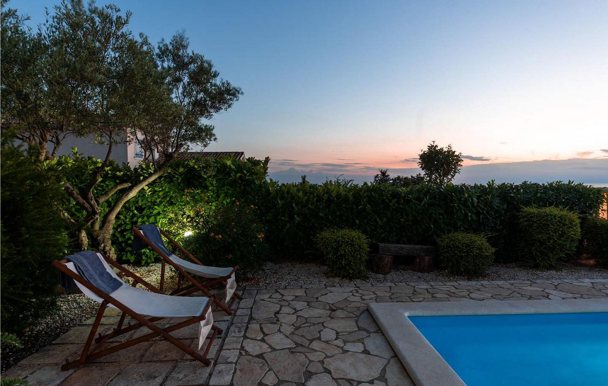 Die Villa wurde im Jahr 2015 gebaut und verfügt über ein eigenes Gelände mit gepflegter Wiese und Olivenhain von einer Fläche von ca. 2000 qm, am ruhigen Platz gelegen von wo aus sich ein wunderschöner Panoramablick aufs Meer erstreckt der durch die Glaswände in allen Räumen noch mehr betont ist. Das Dorf Barat befindet sich 3 km von Visnjan, einer malerischen Stadt, wo wir verschiedene Einrichtungen wie Geschäfte, Bäckereien, Restaurants/Pizzerien, Geldautomat und anderes finden. Den Gästen der Villa Nira stehen folgende Außenaustastungen zur Verfügung: privat Parkplatz für drei Autos, Pool von 36 qm mit Liegestühlen, eine überdachte Terrasse mit Gartenmöbel und Grill.