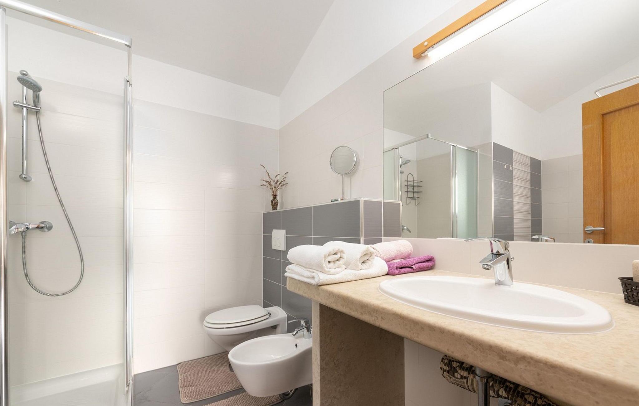 - WC mit warmem und kaltem Wasser, Dusche