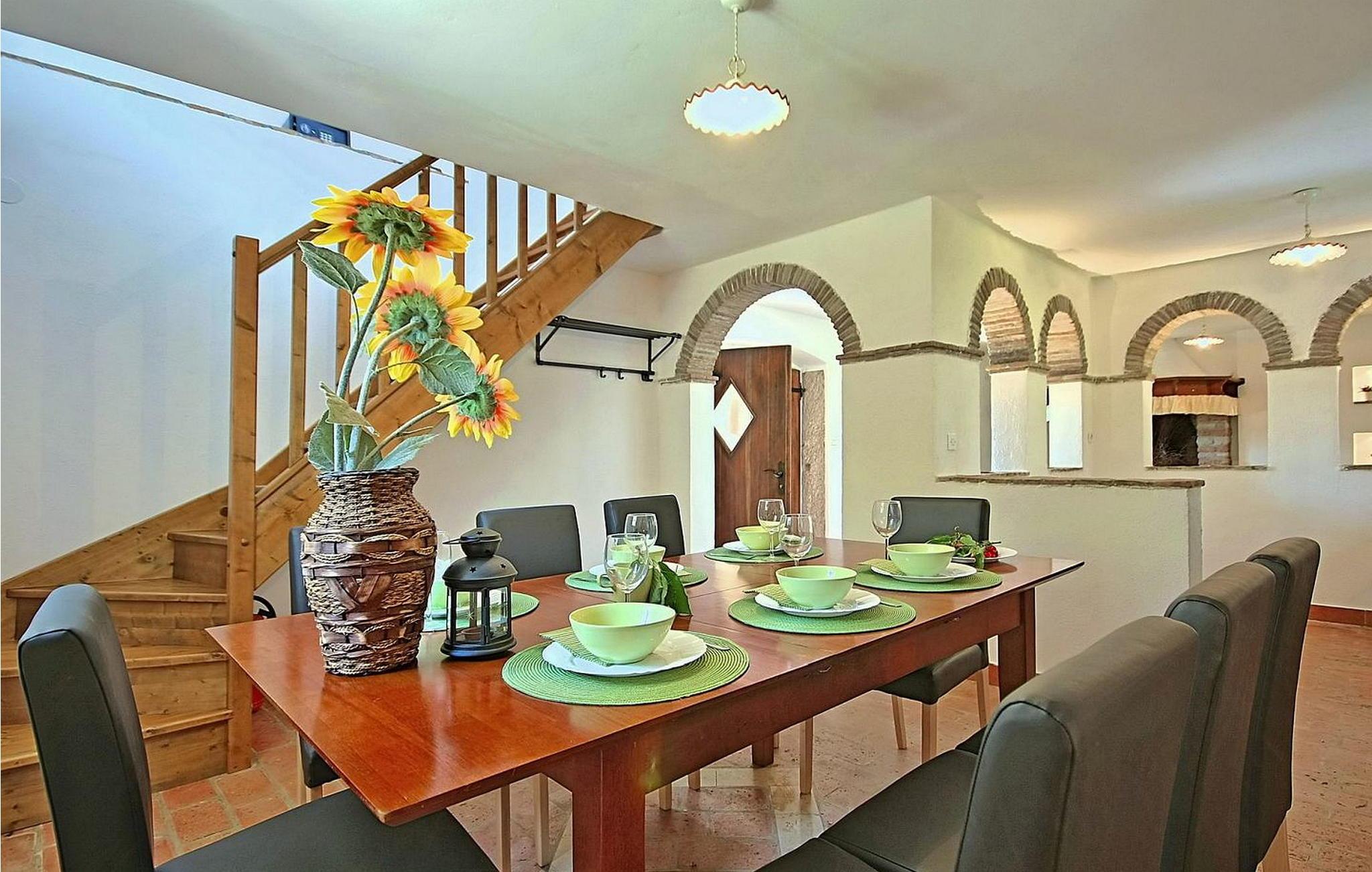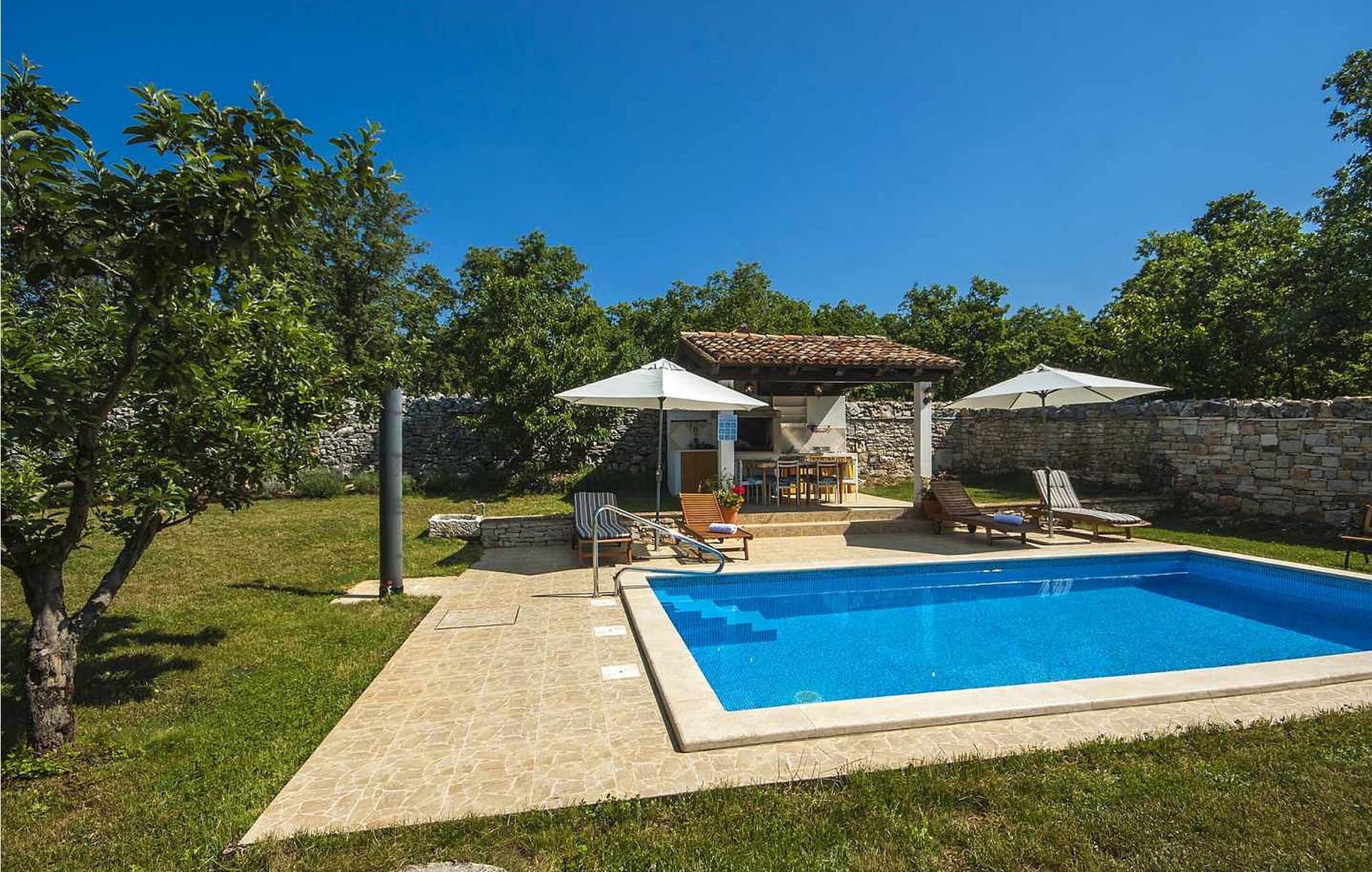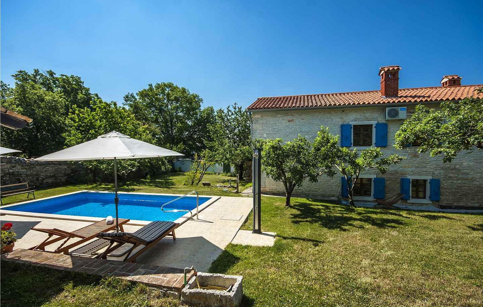 Casa Atilio and Ana ist ein charmantes altes istrisches Steinhaus im ruhigen Dorf Smolici, nur 19 km von Porec und seinen schönen Stränden entfernt. Dieser entzückende Rückzugsort bietet einen schönen Garten mit einem Swimmingpool, der sich perfekt zum Abkühlen an warmen Tagen eignet. Genießen Sie ein Essen im Freien auf der überdachten Terrasse, die mit einem gemauerten Grill und einer Spüle zum Zubereiten von Mahlzeiten ausgestattet ist, oder entspannen Sie sich bei einem Drink auf den Rattanmöbeln, die sich ideal zum Entspannen mit einem guten Buch eignen. Das Ferienhaus erstreckt sich über zwei Etagen. Im Erdgeschoss befinden sich ein gemütliches Wohnzimmer mit Kamin und eine gut ausgestattete Küche mit Esstisch. Die erste Etage ist in zwei Teile unterteilt: der erste mit zwei Schlafzimmern (eines mit zwei Einzelbetten, das andere mit einem Doppelbett) und einem Bad/WC; der zweite Teil hat zwei Doppelzimmer mit einer gemeinsamen Dusche/WC. Erkunden Sie während Ihres Aufenthalts das nahe gelegene Porec und die atemberaubende Basilika der Euphrasia, ein Meisterwerk aus dem 6. Jahrhundert. Porec, reich an kulturellem Erbe, lädt Sie ein, innerhalb seiner alten Stadtmauern eine Zeitreise zu unternehmen. Bitte beachten Sie, dass diese Unterkunft keine Jugendgruppen oder Junggesellenabschiede akzeptiert. Eine Jugendgruppe in dieser Unterkunft besteht aus Personen im Alter von 26 Jahren oder darunter.