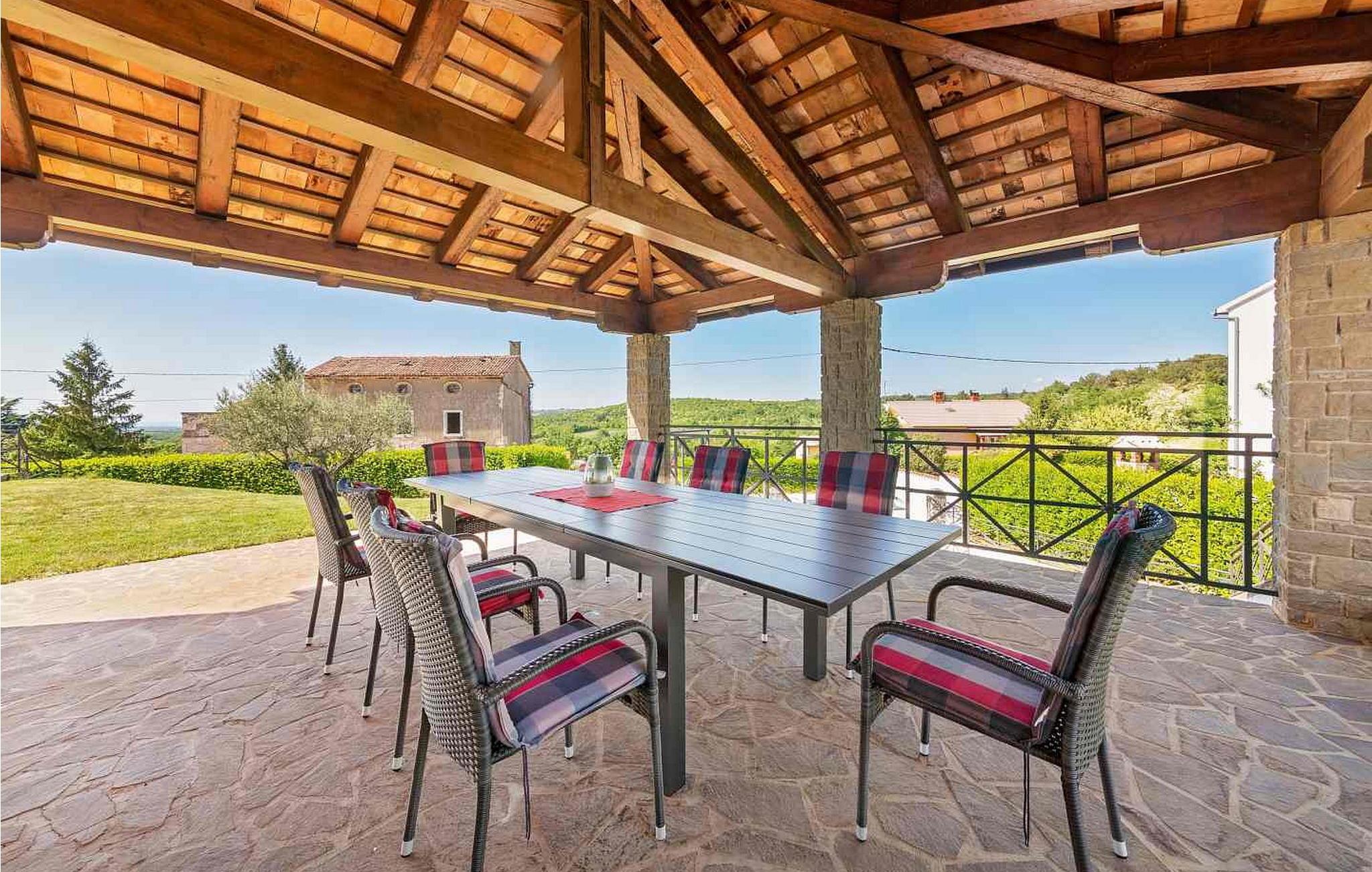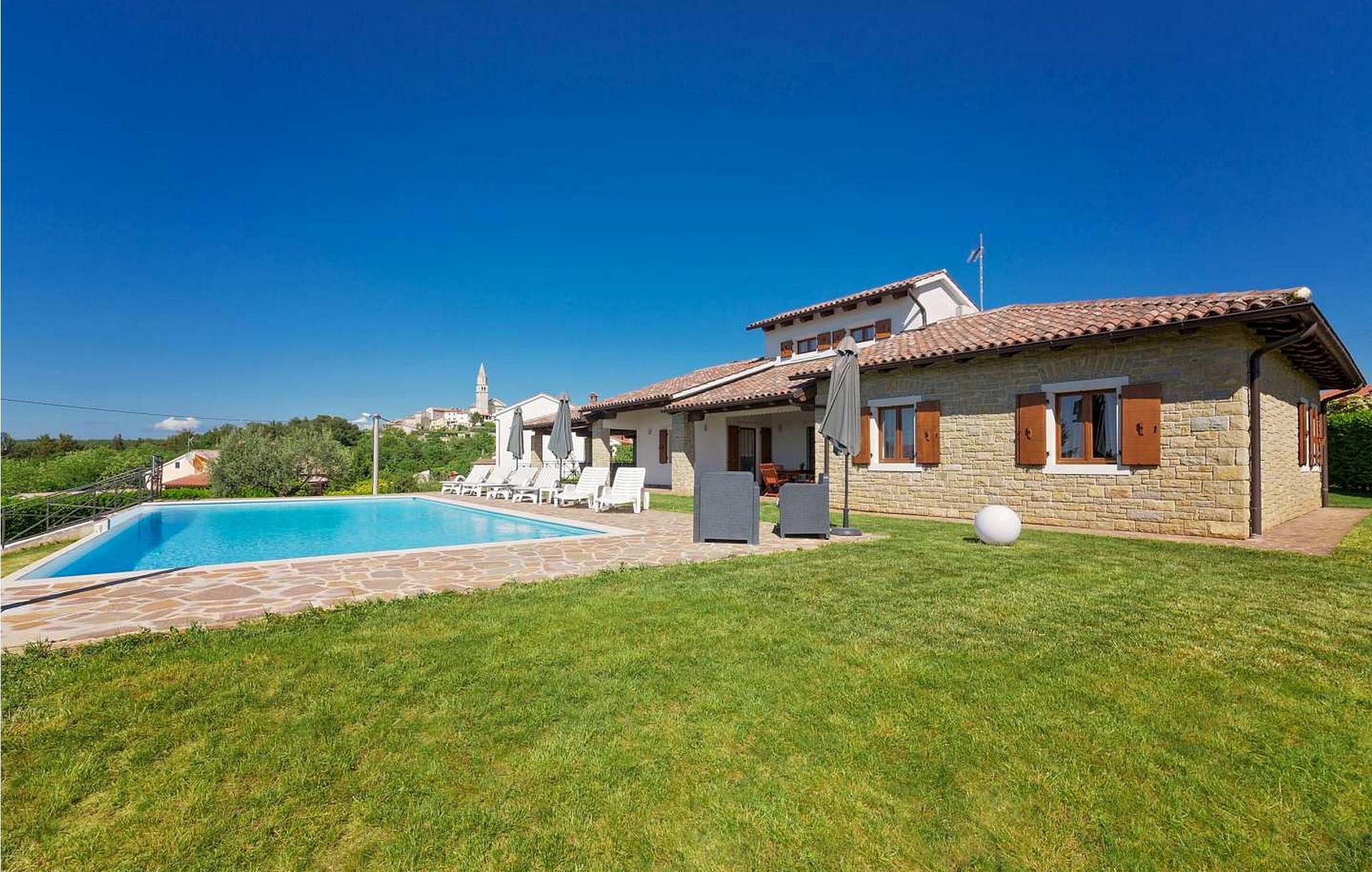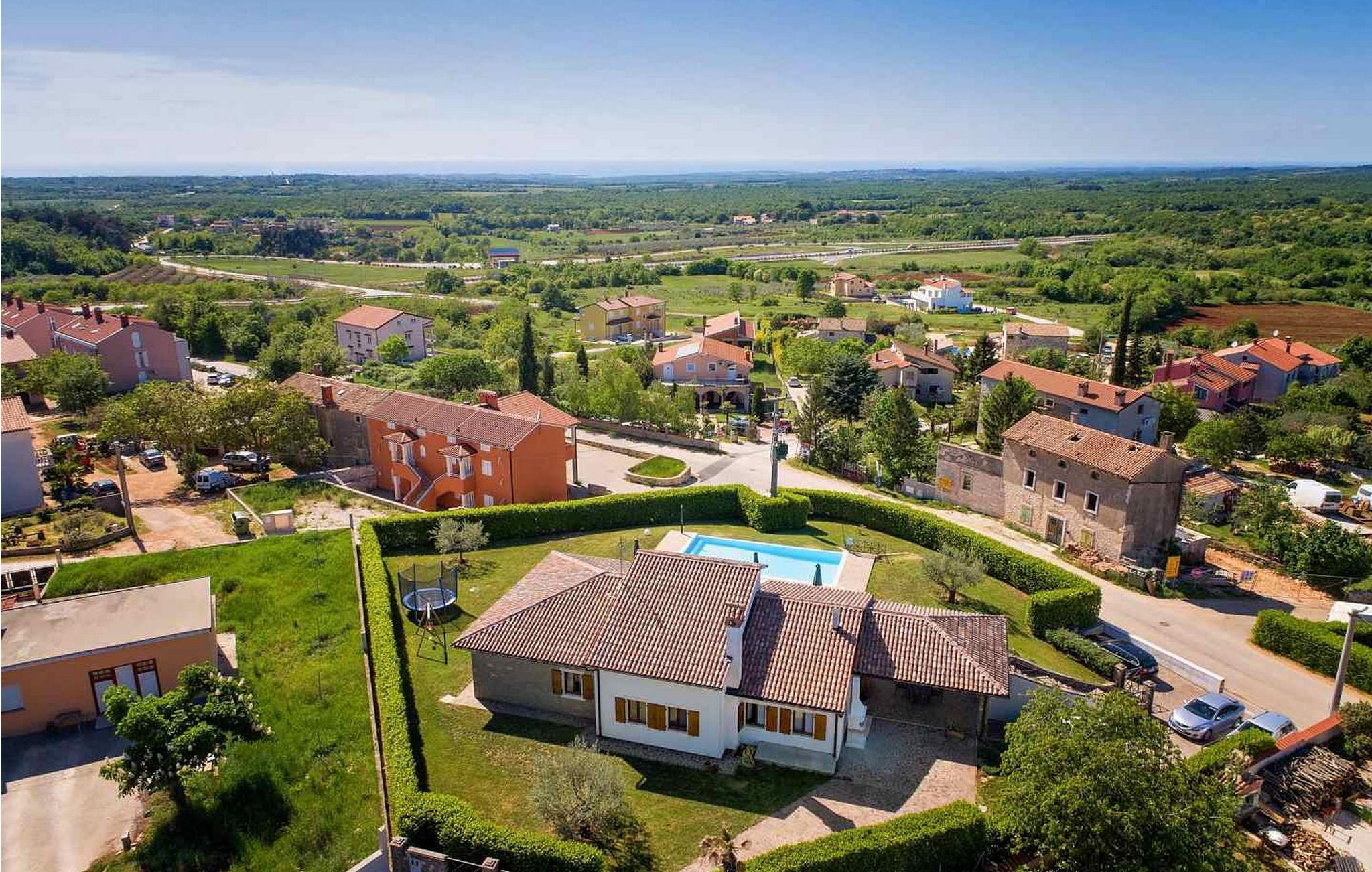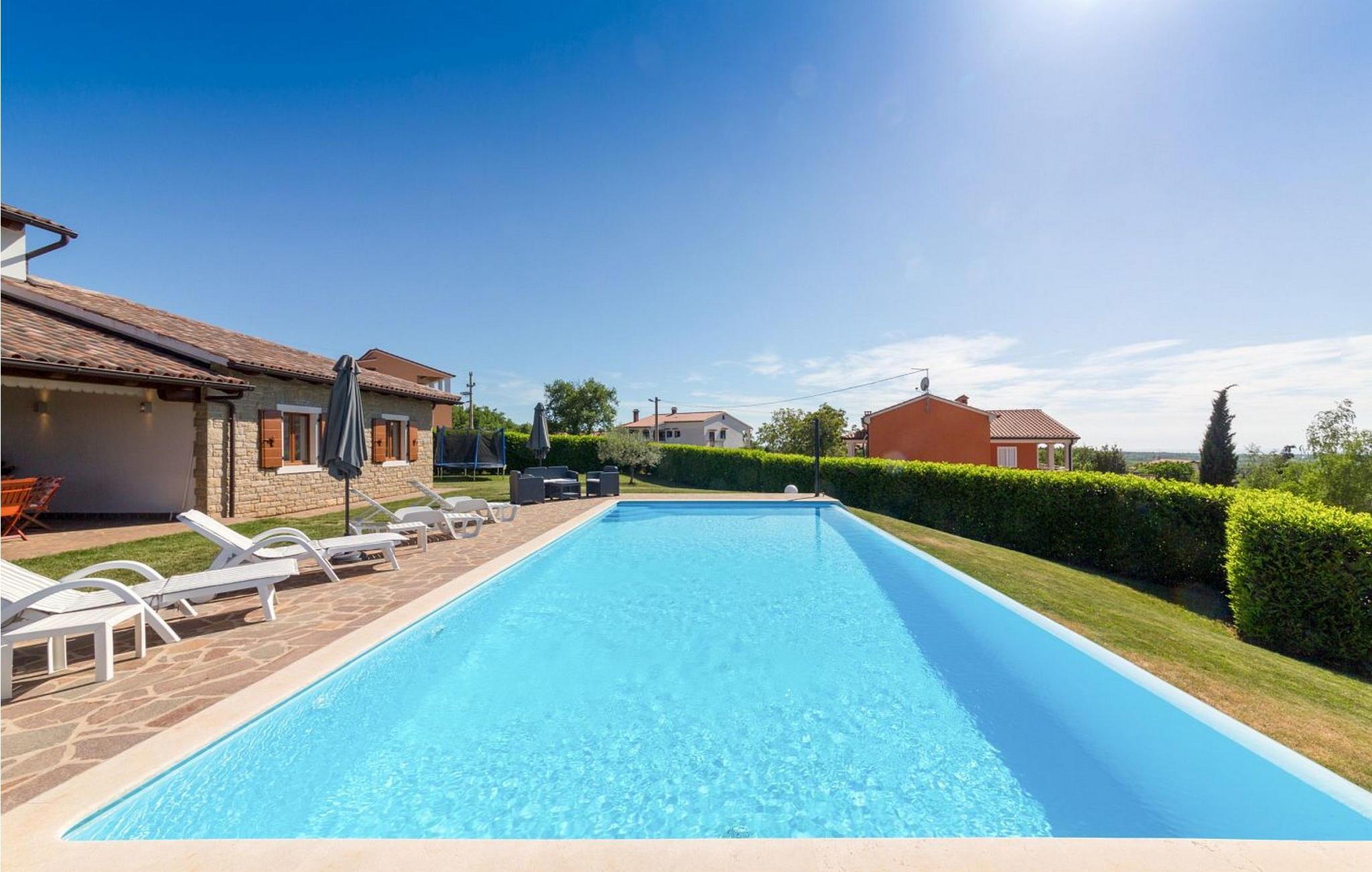Villa Ciano ist eine wunderschöne ebenerdige Villa mit Pool am Rande der charmanten Stadt Višnjan. Die erhöhte Lage der Villa bietet einen atemberaubenden Panoramablick auf das Meer. Das Grundstück ist komplett eingezäunt, um Privatsphäre zu gewährleisten. Die Villa bietet Platz für 6–8 Gäste und verfügt über eine gut ausgestattete Küche, einen Essbereich und ein klimatisiertes Wohnzimmer mit einem Schlafsofa auf der Galerie. Im Freien genießen Sie zwei Terrassen: eine mit Essbereich und eine andere mit einer Außenküche. Obwohl das Dorf in der Nähe einer Straße zum Dorfzentrum liegt, ist der Verkehr mäßig, was einen ruhigen Rückzugsort gewährleistet. Višnjan bietet alles für einen erholsamen Urlaub – Geschäfte, eine Bäckerei, eine Pizzeria und mehr. Das geschichtsträchtige Dorf veranstaltet jeden letzten Donnerstag im Monat einen traditionellen Markt und beherbergt ein international renommiertes astronomisches Observatorium. Damit ist es ein ideales Ziel für alle, die sowohl Ruhe als auch kulturelle Bereicherung suchen. Diese Mischung aus ruhigem Dorfleben, historischem Charme und modernem Komfort macht die Villa Ciano in Višnjan zu einem perfekten Urlaubsort. HINWEIS: Nur kleine Hunde sind erlaubt. Bitte beachten Sie, dass diese Unterkunft keine Jugendgruppen oder Junggesellenabschiede akzeptiert. Eine Jugendgruppe in dieser Unterkunft besteht aus Personen im Alter von 26 Jahren oder darunter.