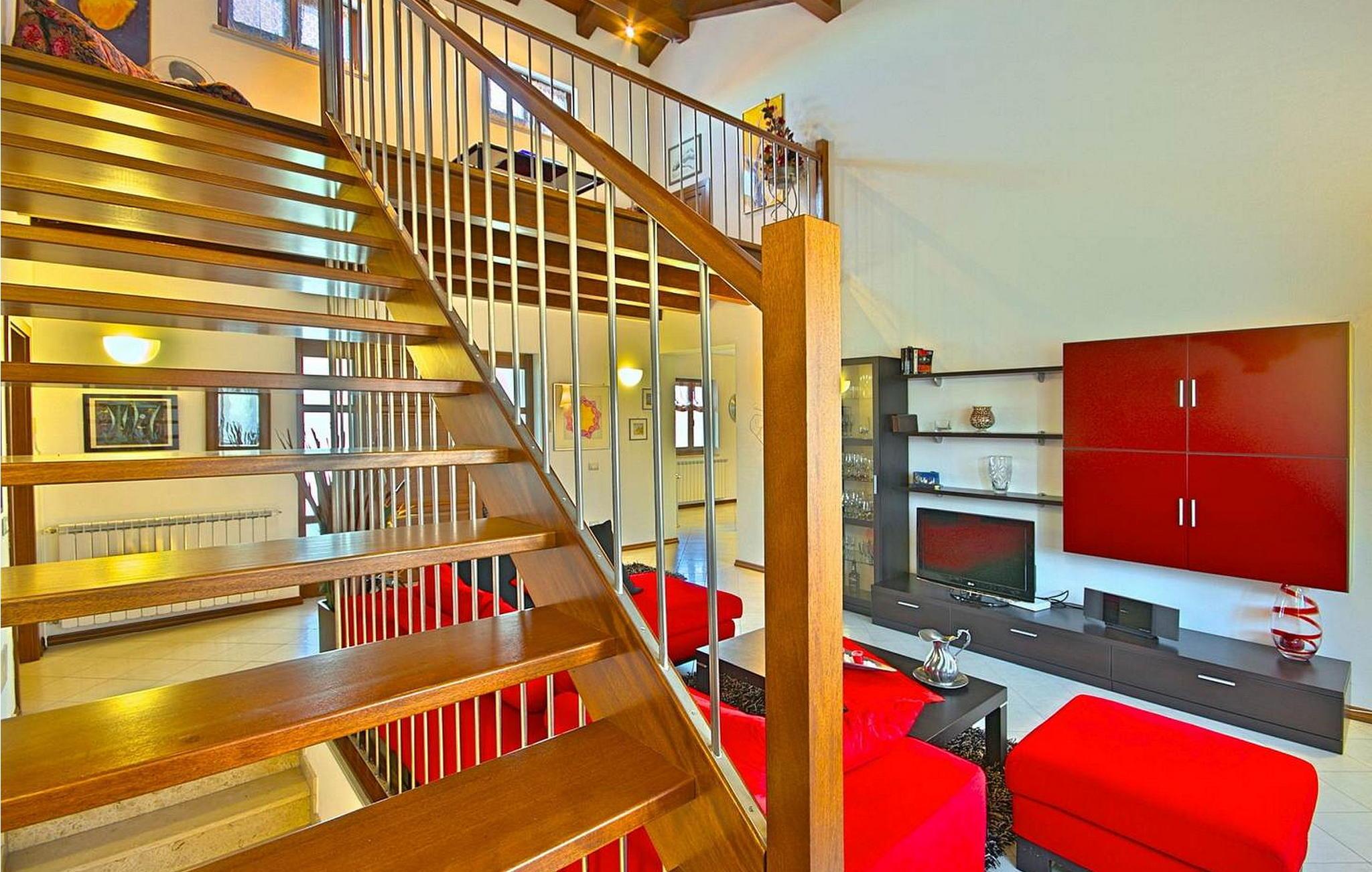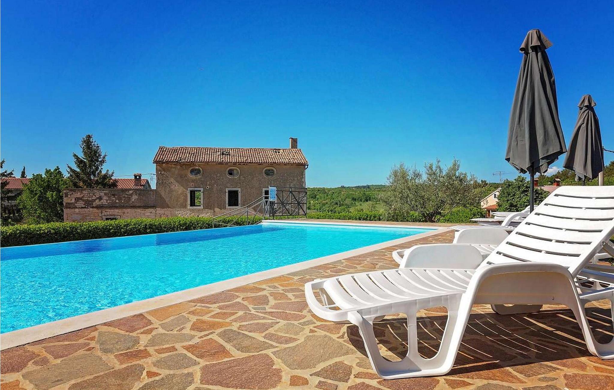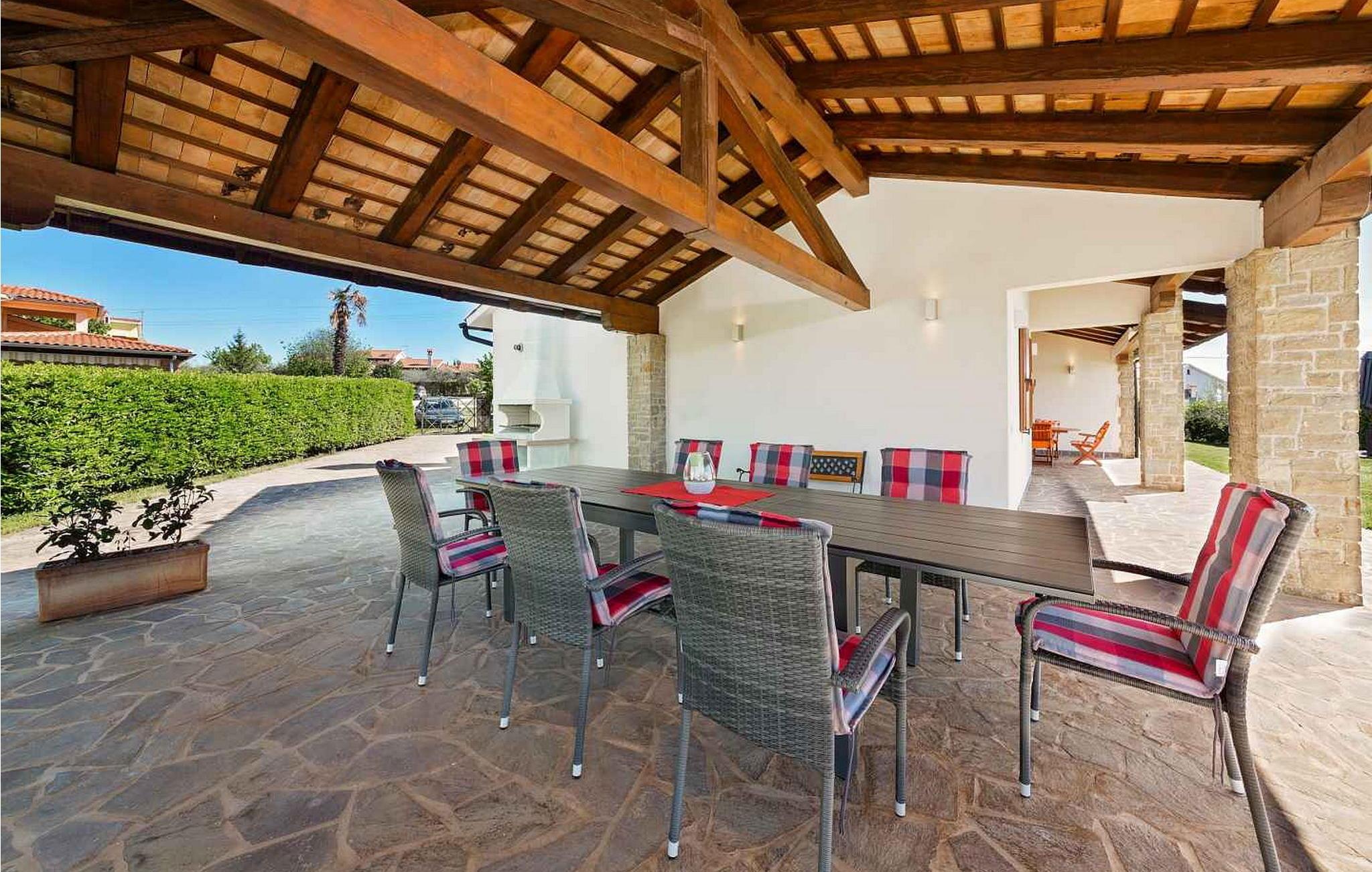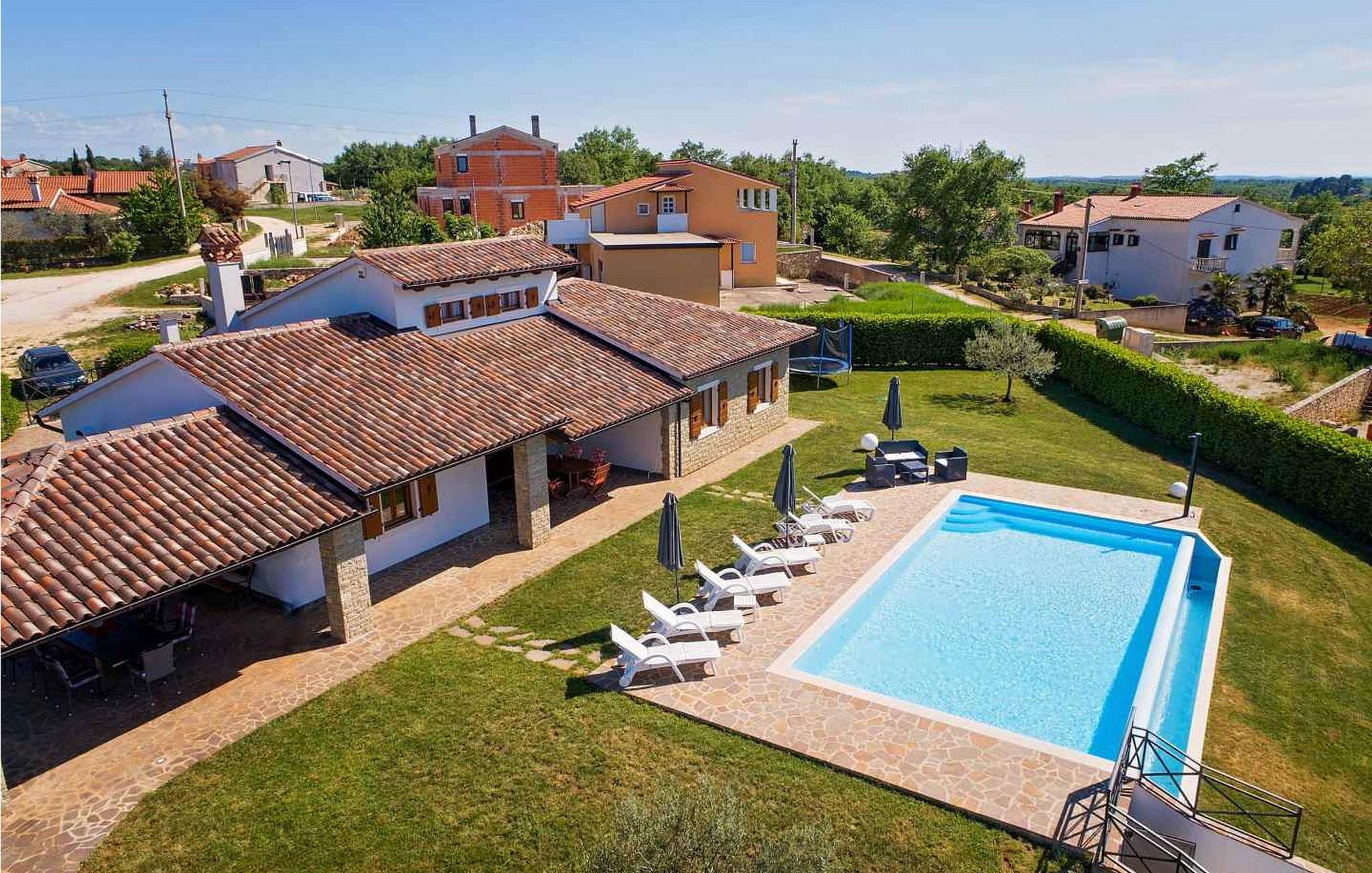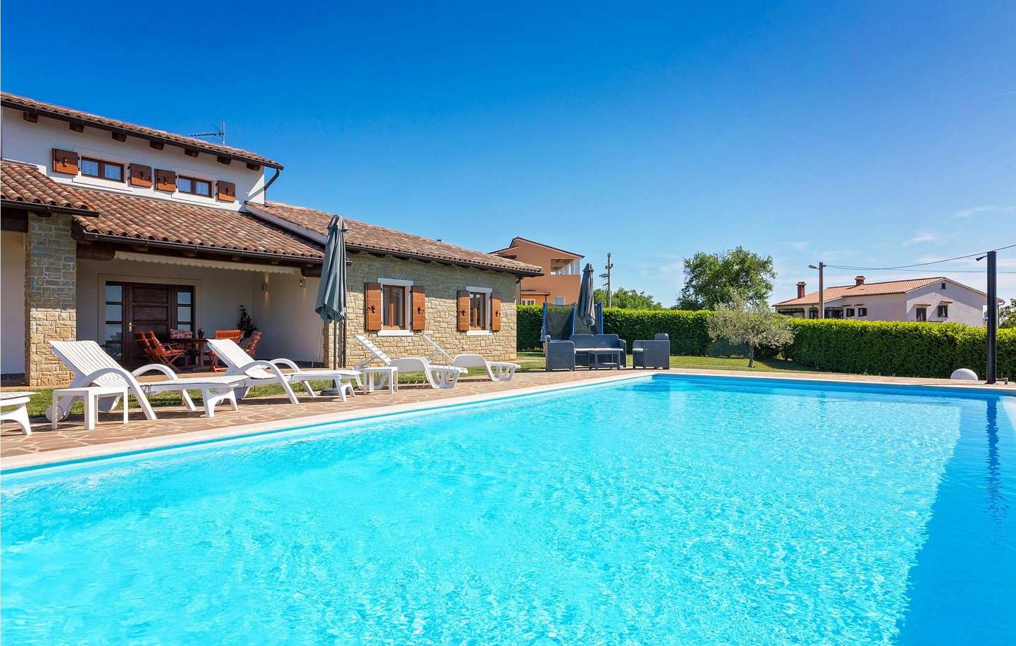 Villa Ciano ist eine wunderschöne ebenerdige Villa mit Pool am Rande der charmanten Stadt Višnjan. Die erhöhte Lage der Villa bietet einen atemberaubenden Panoramablick auf das Meer. Das Grundstück ist komplett eingezäunt, um Privatsphäre zu gewährleisten. Die Villa bietet Platz für 6–8 Gäste und verfügt über eine gut ausgestattete Küche, einen Essbereich und ein klimatisiertes Wohnzimmer mit einem Schlafsofa auf der Galerie. Im Freien genießen Sie zwei Terrassen: eine mit Essbereich und eine andere mit einer Außenküche. Obwohl das Dorf in der Nähe einer Straße zum Dorfzentrum liegt, ist der Verkehr mäßig, was einen ruhigen Rückzugsort gewährleistet. Višnjan bietet alles für einen erholsamen Urlaub – Geschäfte, eine Bäckerei, eine Pizzeria und mehr. Das geschichtsträchtige Dorf veranstaltet jeden letzten Donnerstag im Monat einen traditionellen Markt und beherbergt ein international renommiertes astronomisches Observatorium. Damit ist es ein ideales Ziel für alle, die sowohl Ruhe als auch kulturelle Bereicherung suchen. Diese Mischung aus ruhigem Dorfleben, historischem Charme und modernem Komfort macht die Villa Ciano in Višnjan zu einem perfekten Urlaubsort. HINWEIS: Nur kleine Hunde sind erlaubt. Bitte beachten Sie, dass diese Unterkunft keine Jugendgruppen oder Junggesellenabschiede akzeptiert. Eine Jugendgruppe in dieser Unterkunft besteht aus Personen im Alter von 26 Jahren oder darunter.