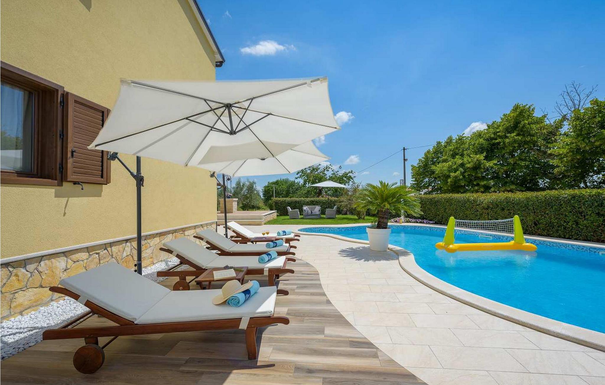 Das Haus liegt auf eigenen teils umzäunten Grundstück wo den Gästen ein privat Pool von 50 qm, Sommerküche, überdachte Terrasse mit Esstisch, Tischtennis, Fahrräder und 2 Parkplätze zur Verfügung stehen.