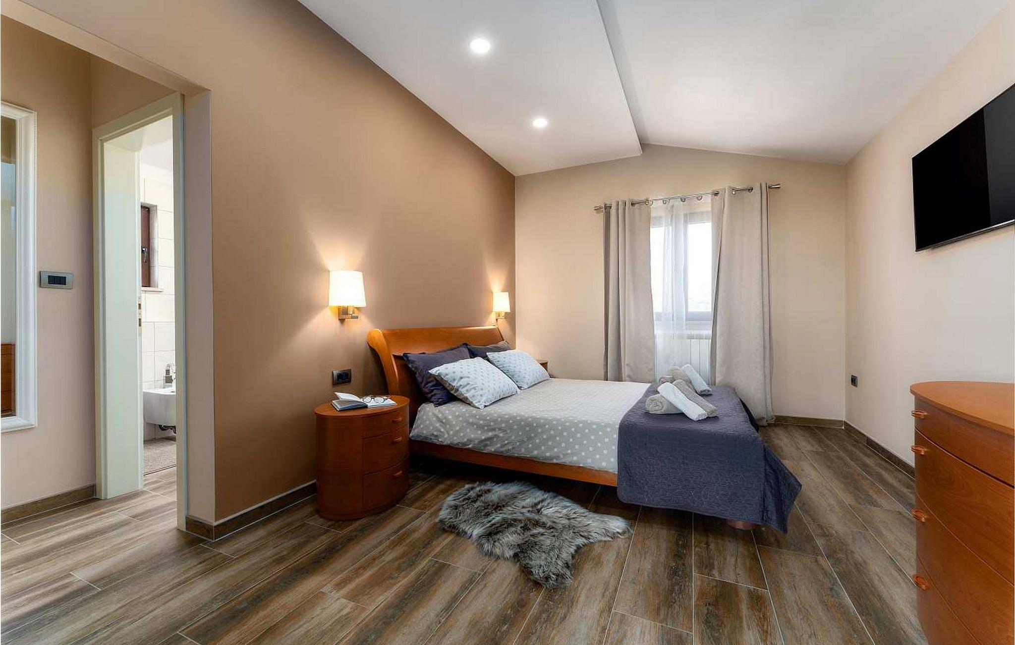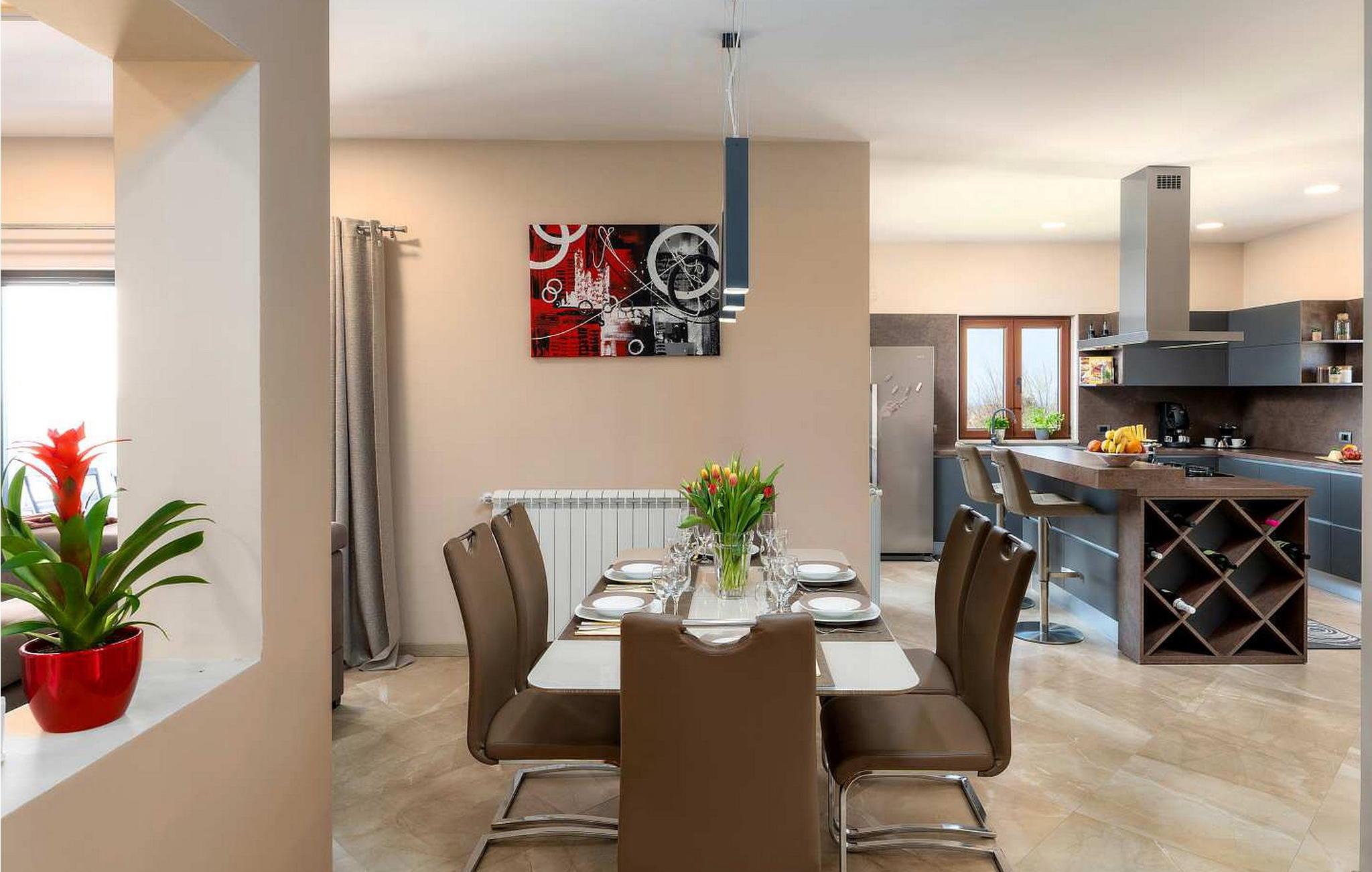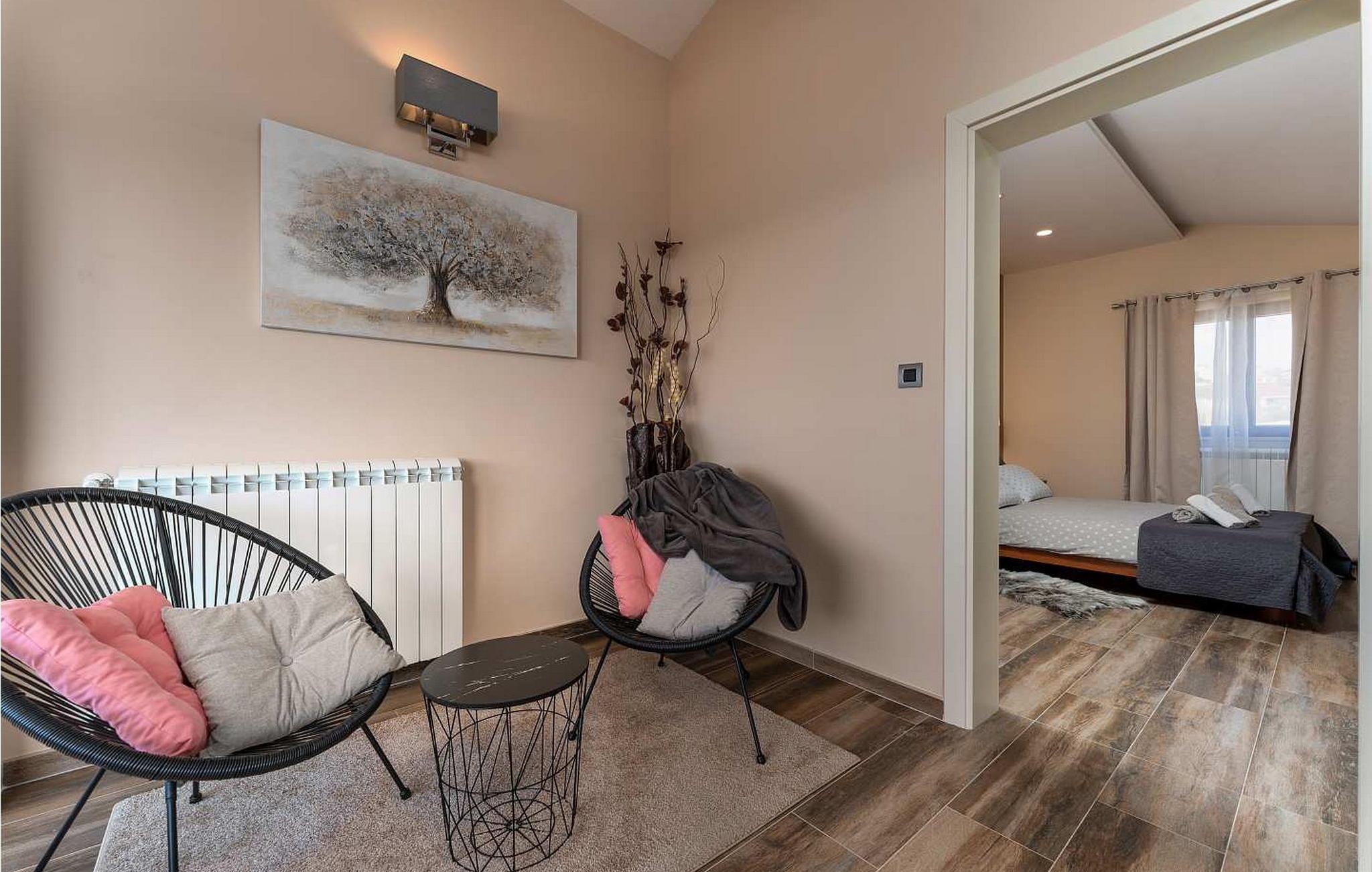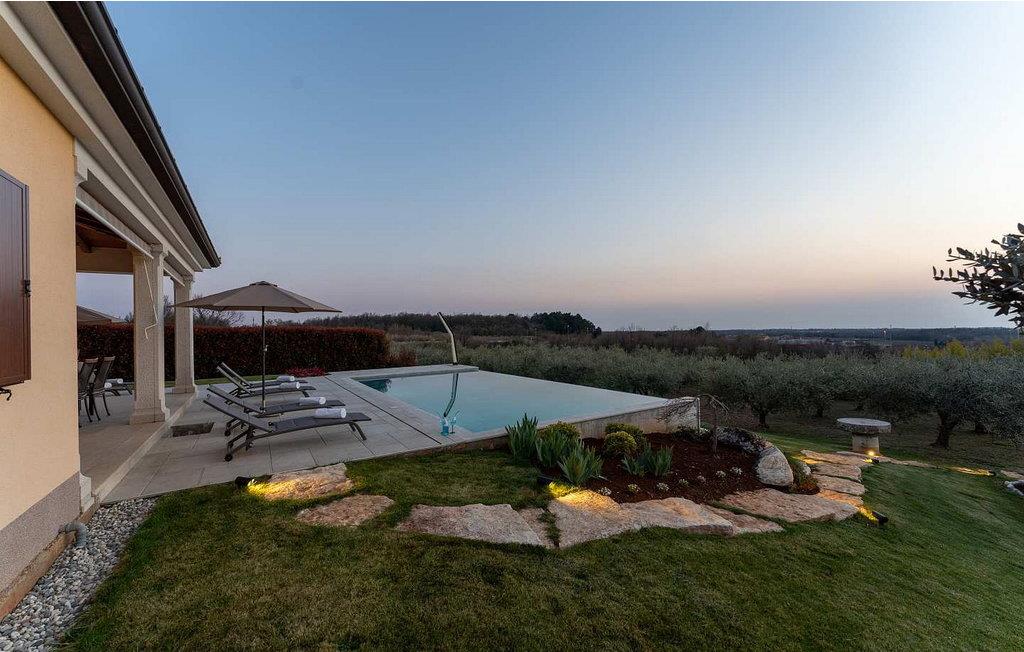Dieses geräumige Haus befindet sich nur wenige Minuten mit dem Auto von Višnjan entfernt, wo es ein Geschäft, frisch gebackenes Brot in einer nahe gelegenen Bäckerei und eine der besseren Tavernen mit istrischen Spezialitäten gibt. Im 600 qm großen Garten stehen den Gästen ein Infinity-Pool, 6 Liegestühle, Sonnenschirm, überdachte Terrasse mit Esstisch und Blick auf den Olivenhain, Grill und zwei Parkplätze zur Verfügung.