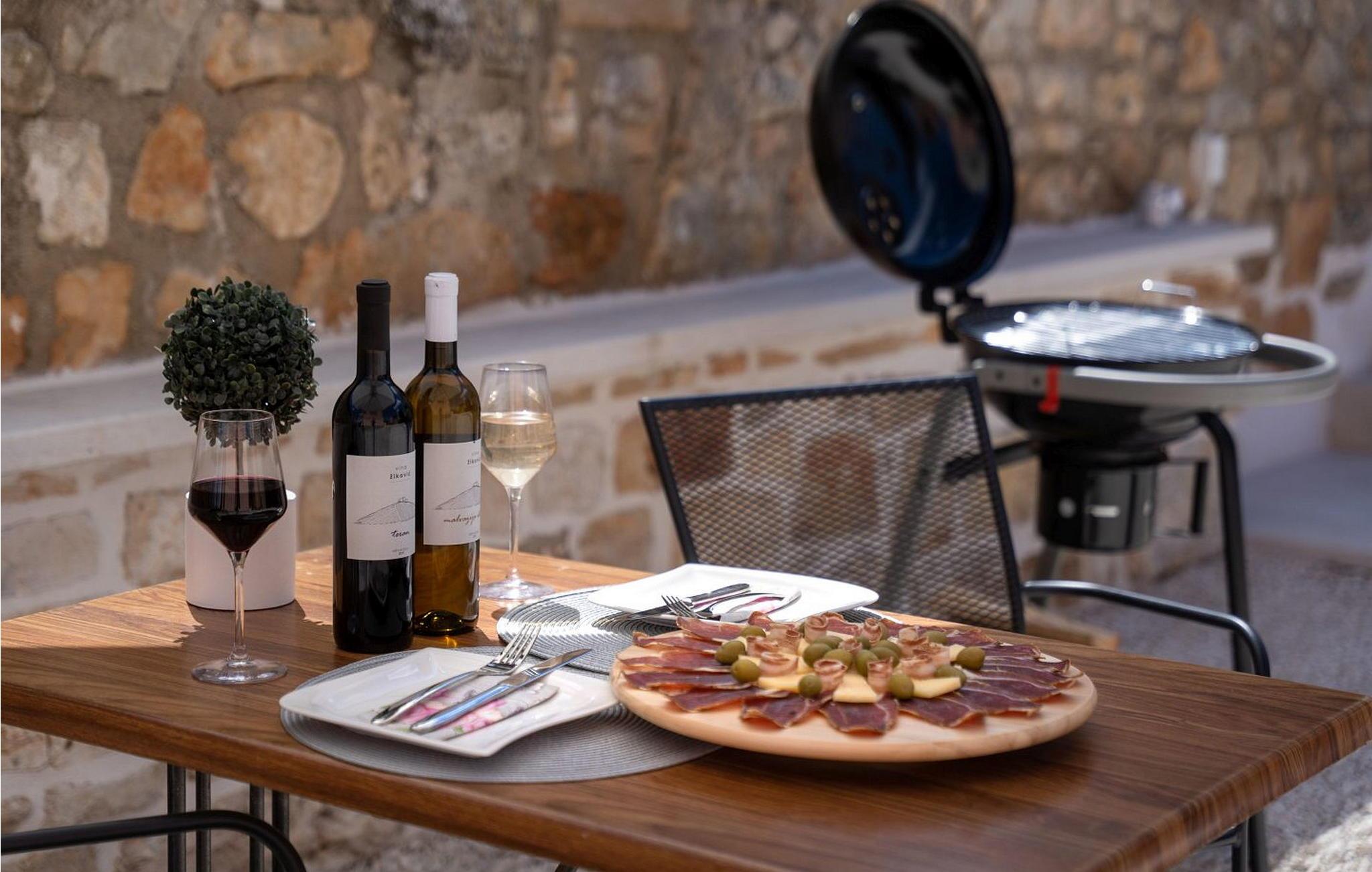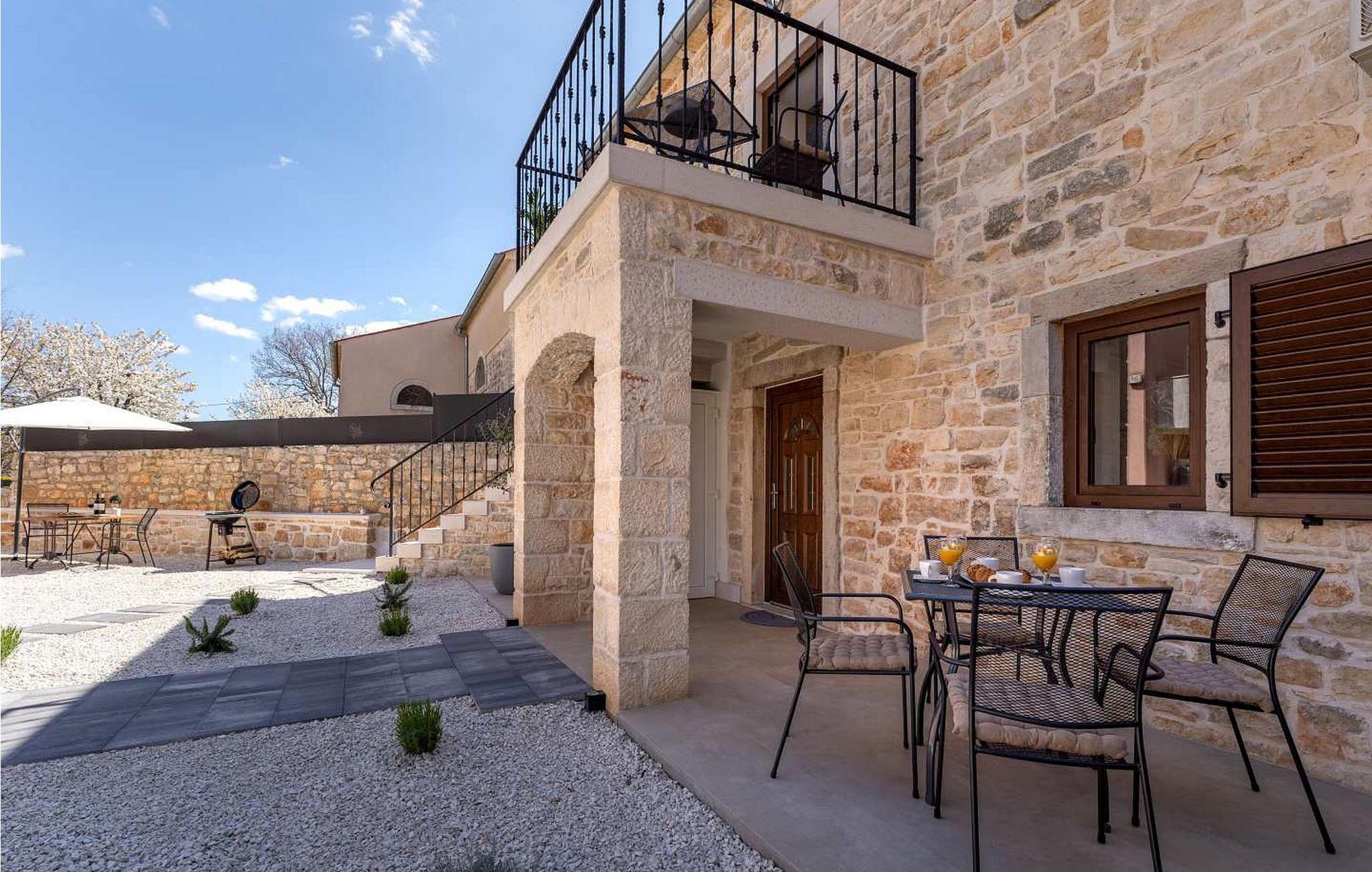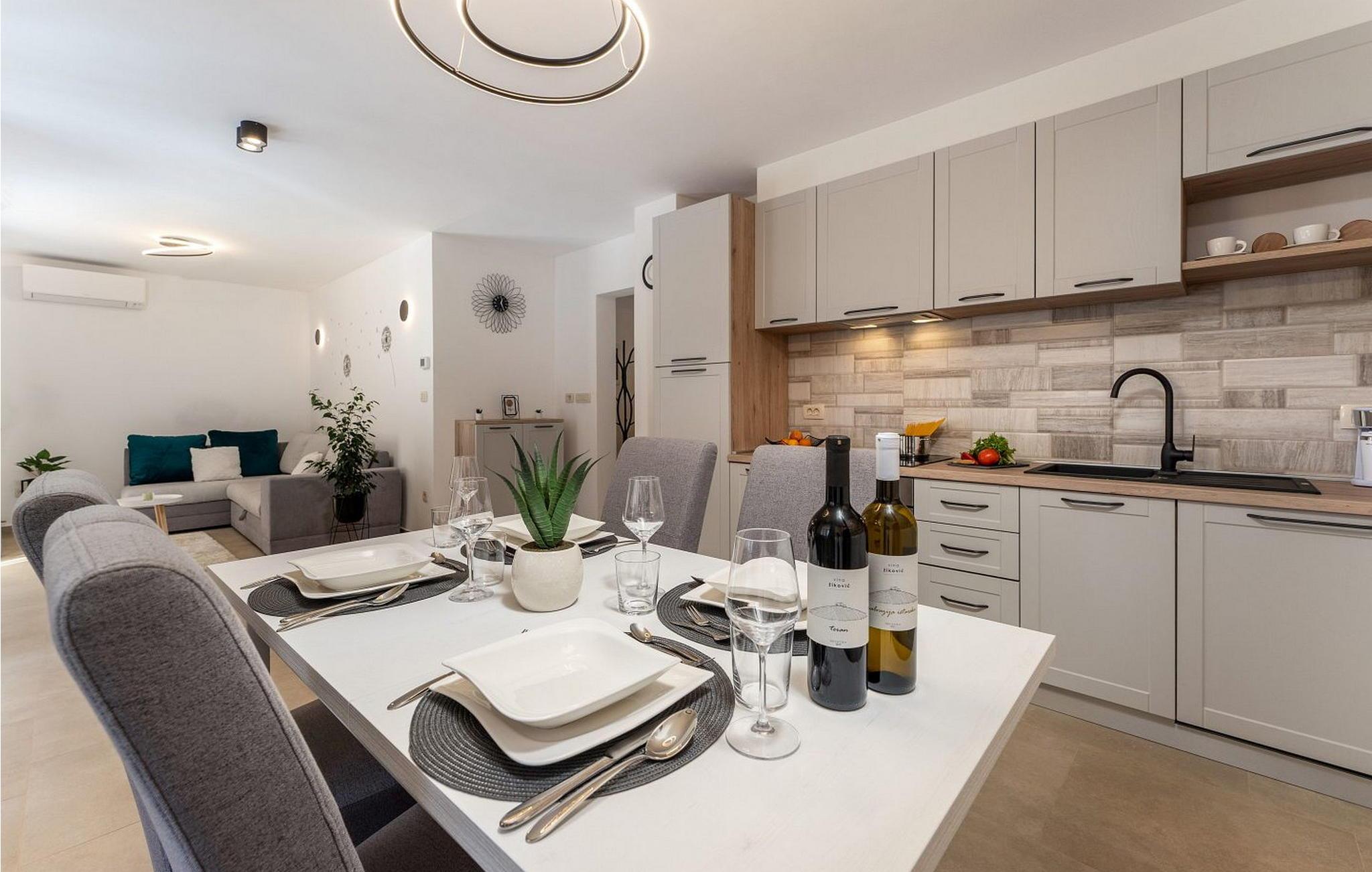 Versteckt im ruhigen Dorf Bacva bieten die Charming Apartments Karmela einen ruhigen Urlaubsort nur 12 km von der lebhaften Küstenstadt Porec entfernt. Umgeben von üppigen Landschaften, in denen die Einheimischen frische Produkte und erlesene Weine anbauen, ist dies Ihr perfekter Rückzugsort im Herzen Istriens. Ihr privates, umzäuntes Grundstück ist zum Entspannen gestaltet. Genießen Sie ein Essen im Freien an Ihrem eigenen Tisch im Freien und kosten Sie die Aromen Istriens beim Grillen. Ein ausgewiesener Parkplatz macht Ihren Aufenthalt noch bequemer. Dieses Apartment ist eine gemütliche Oase im Erdgeschoss. Der Wohnbereich mit einem Schlafsofa für zwei Kinder ist der perfekte Ort zum Entspannen nach einem Tag voller Entdeckungen. Die voll ausgestattete Küche lädt Sie ein, lokale Köstlichkeiten zu genießen. Mit verschiedenen Restaurants, Einkaufszentren und Cafés, die nur 10-15 Autominuten entfernt sind, sind Sie in der Nähe von allem, was Sie für einen unvergesslichen Urlaub brauchen. Bitte beachten Sie, dass diese Unterkunft auf Anfrage Jugendgruppen akzeptiert. Bitte kontaktieren Sie uns, um dies zu überprüfen. Eine Jugendgruppe in dieser Unterkunft besteht aus Personen im Alter von 26 Jahren oder jünger. Wenn Sie eine Jugendgruppe sind [oder einen Junggesellenabschied planen], werden Sie bei der Ankunft möglicherweise gebeten, eine zusätzliche Kaution zu hinterlegen. Alle Beträge, die zur Reparatur von Schäden an der Immobilie erforderlich sind, die Sie verursacht haben, werden von der Kaution abgezogen.