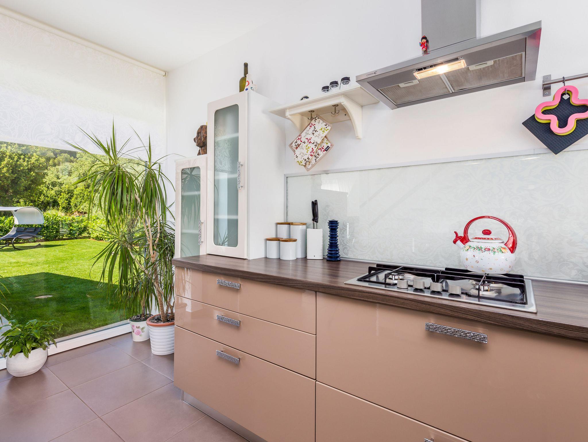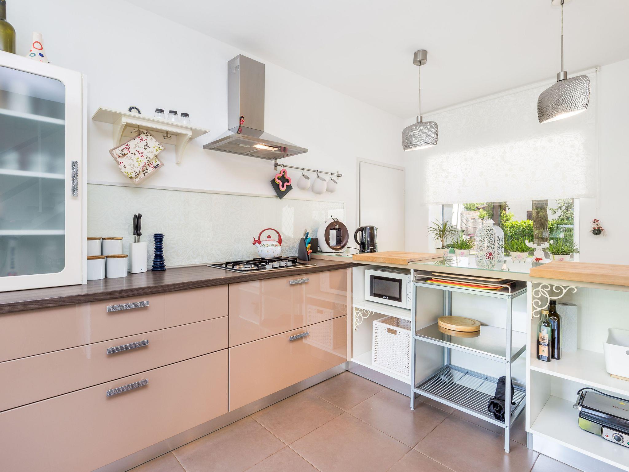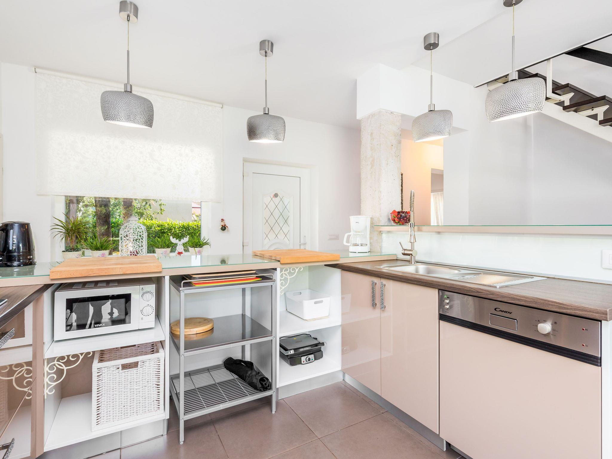 Umgebung des Objekts (Eingerichtet), Hof (400m2, Kinderbereich, Sitzbereich), Parkplatz (Anzahl der Parkplätze: 3, Entfernung vom Objekt: im Hof), Pool: privat, Dimensionen: 7.5m x 3.5m x 1.5m, Wassertyp: Salzwasser, WiFi Internet, Föhn, Bügeleisen, Bügelbrett, Kinderbett