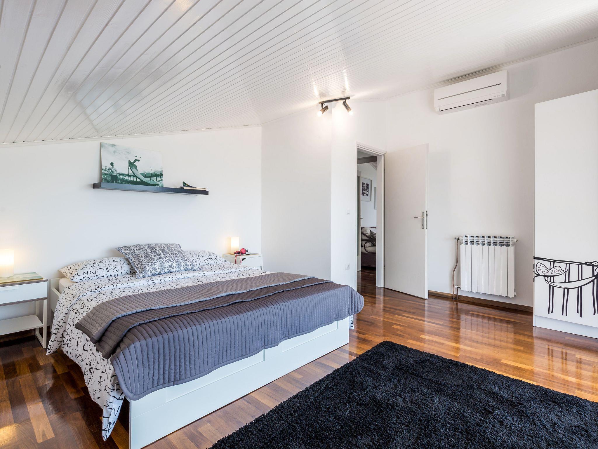 Haus bietet Platz für 10 Gäste. Die Betten sind in Schlafzimmern, die es 5 gibt, innerhalb einer Gesamtfläche von 146m2, angeordnet. Die Gäste haben eine eigene Terrasse zur Verfügung, auf der sie in warmen Sommernächten genießen können. Das Haus bietet Meerblick. Für vollen Genuss und Entspannung gibt es einen privaten Grill für Gäste dieser Unterkunft. Während ihres Aufenthalts können sich Gäste im privaten Schwimmbad entspannen. In der Unterkunftseinheit besteht die Möglichkeit des Mitbringens von Haustieren gegen Aufpreis. IM PREIS INBEGRIFFEN: Kurtaxe, Endreinigung, Klimatisierung, Pool, Parkplatz, Internet, Kinderbett, Bügeleisen, Bügelbrett, Föhn. UNVERBINDLICHE ZUSÄTZLICHE KOSTEN: Haustiere (20,00 € pro Nacht). Die Verfügbarkeit zusätzlicher Dienstleistungen in Ihrem reservierten Termin und die Preise derselben (falls nicht aufgeführt) müssen im Voraus überprüft werden. Zusätzliche Dienstleistungen die in der Zahlungsaufforderung nicht aufgeführt sind werden direkt beim Vermieter bezahlt, angenommen der Gast nutzt auch diese.