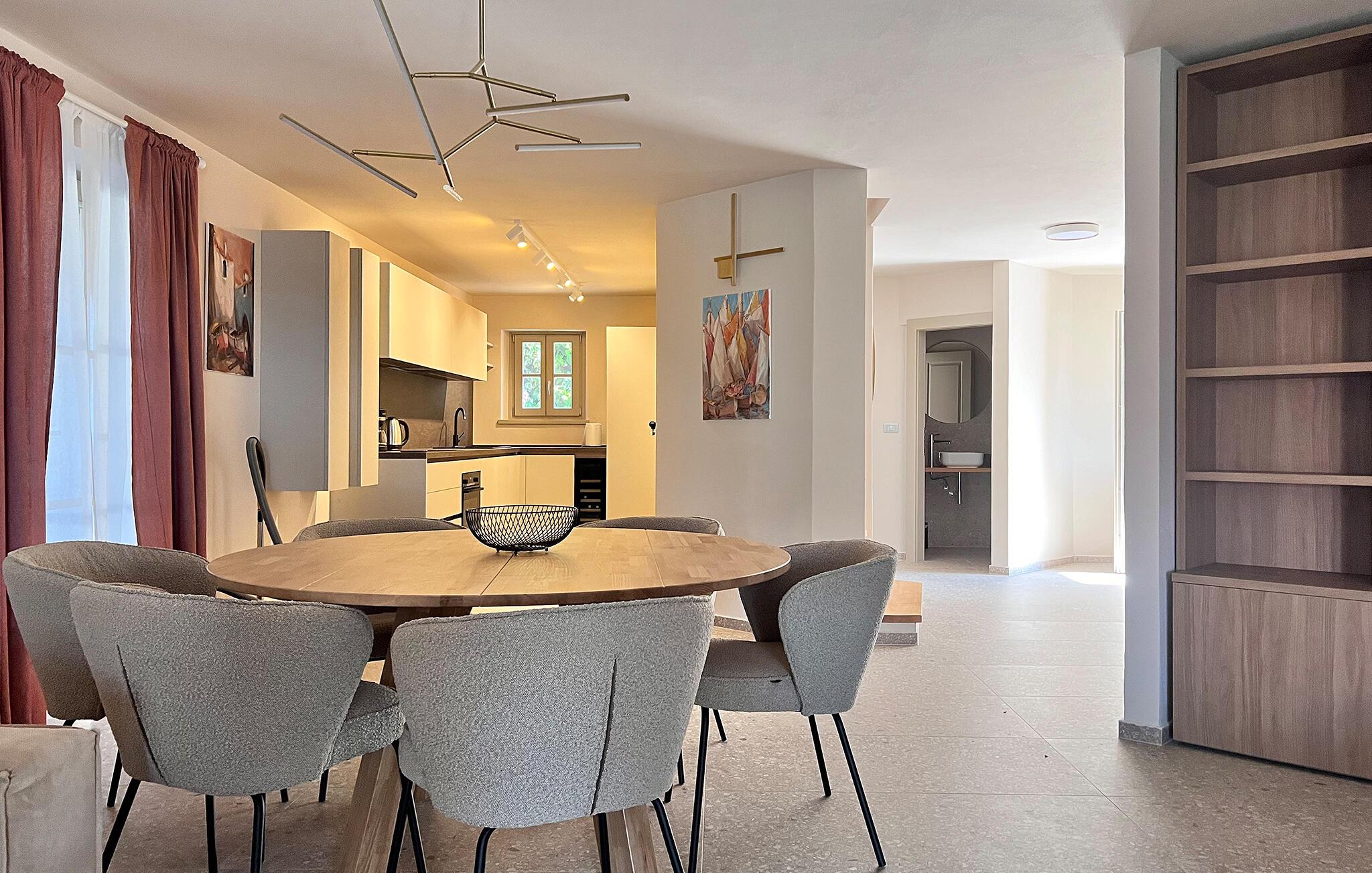 Dieses moderne Steinhaus vereint traditionellen Baustil mit stilvoller, heller Einrichtung und bietet Ihnen auf zwei Etagen einen großzügigen Wohnkomfort. Die geschmackvolle Gestaltung und das große Platzangebot schaffen eine entspannte Atmosphäre, ideal für Familien oder Gruppen. Gehen Sie hier entspannt Ihrem Ferienalltag nach und zaubern in der gut ausgestatteten Küche leckere Mahlzeiten.