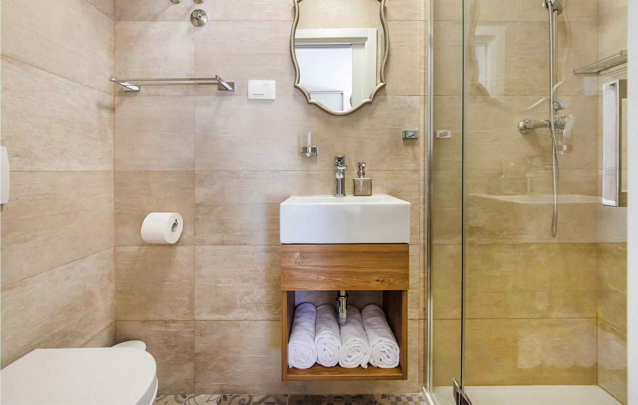 Badezimmer (nr. 2) - WC. Warmes und kaltes Wasser. Dusche