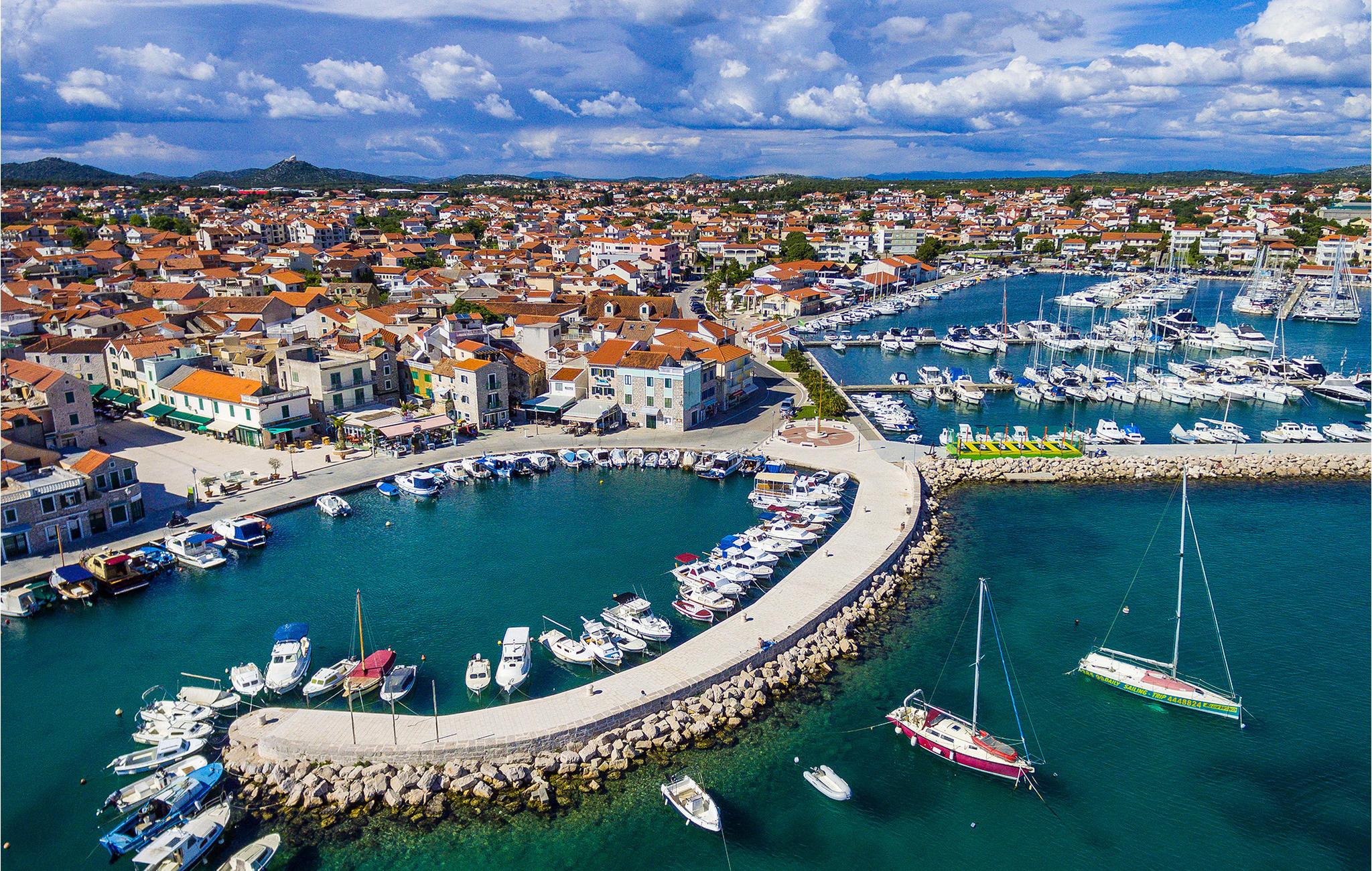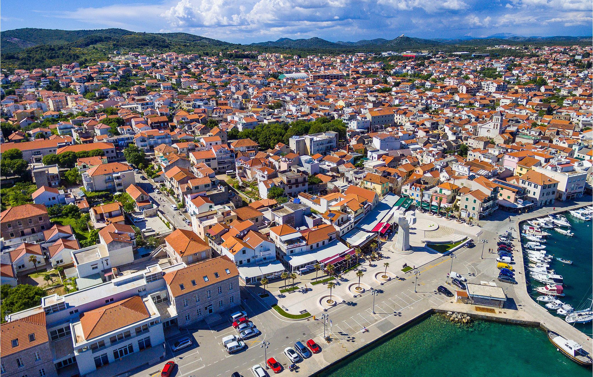 Diese geschmackvoll eingerichteten Ferienwohnungen befinden sich in Vodice, einem schönen Badeort in der Nähe von Šibenik. Der nächstgelegene und beliebte Blaue Strand wird hierzulande „Plava plaža“ genannt und ist aufgrund des schattenspendenden Fichtenwaldes und des bis weit hinaus flachen Untergrundes besonders für Kinder gut geeignet. Auch macht das reiche und abwechslungsreiche Angebot verschiedener Freizeitaktivitäten den Blauen Strand bei Urlaubsgästen jeden Alters beliebt. Wenn Sie mehr Ruhe genießen möchten, empfehlen wir einen Spaziergang zum nahe gelegenen kleinen Fischerdorf Tribunj zu unternehmen.