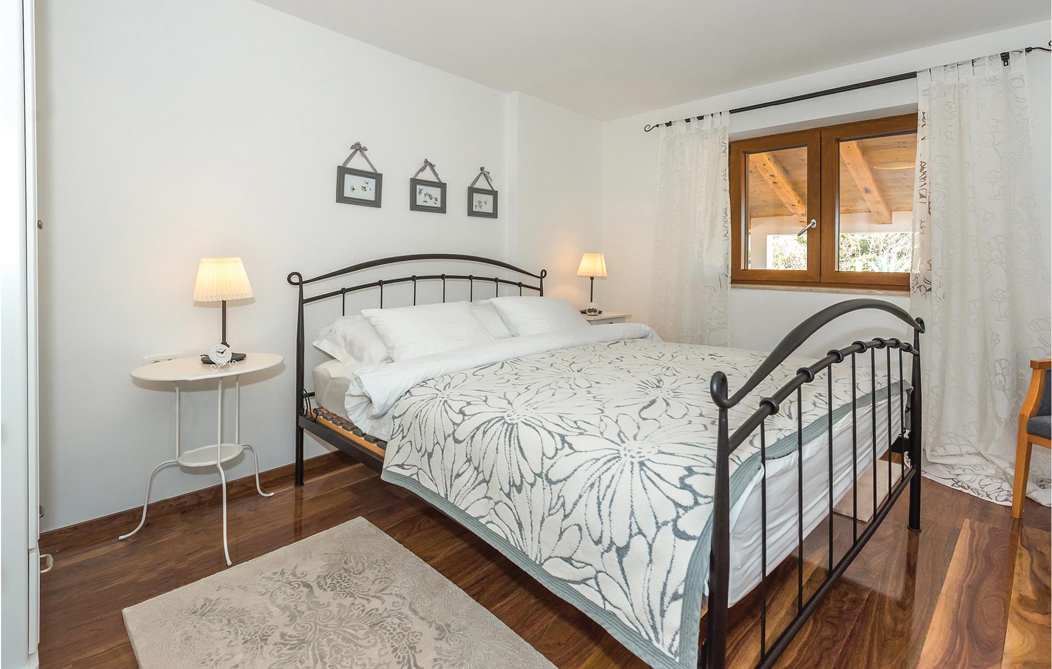 Dieses schöne dalmatinische Steinhaus liegt umgeben von Olivenbäumen und unberührter Natur nur ca. 3.5 km vom malerischen Touristenort Vodice entfernt. Der gesamte Innenraum ist harmonisch und geschmackvoll eingerichtet. Über eine Wendeltreppe gelangt man in die obere Etage mit einer Dachschräge auf ca. 140 cm. Genießen Sie die Ruhe auf der Terrasse oder erfrischen Sie sich im Pool mit Massagedüsen. Vodice bietet Badeurlaubern viele schöne, flach abfallende Kieselstrände und traumhafte Buchten. Lassen Sie den Abend bei einem romantischen Spaziergang entlang der Uferpromenade oder durch die urigen Gassen der Altstadt ausklingen. Sonnenkollektoren versorgen das Haus mit Strom, der Gebrauch elektrischer Geräte ist begrenzt.