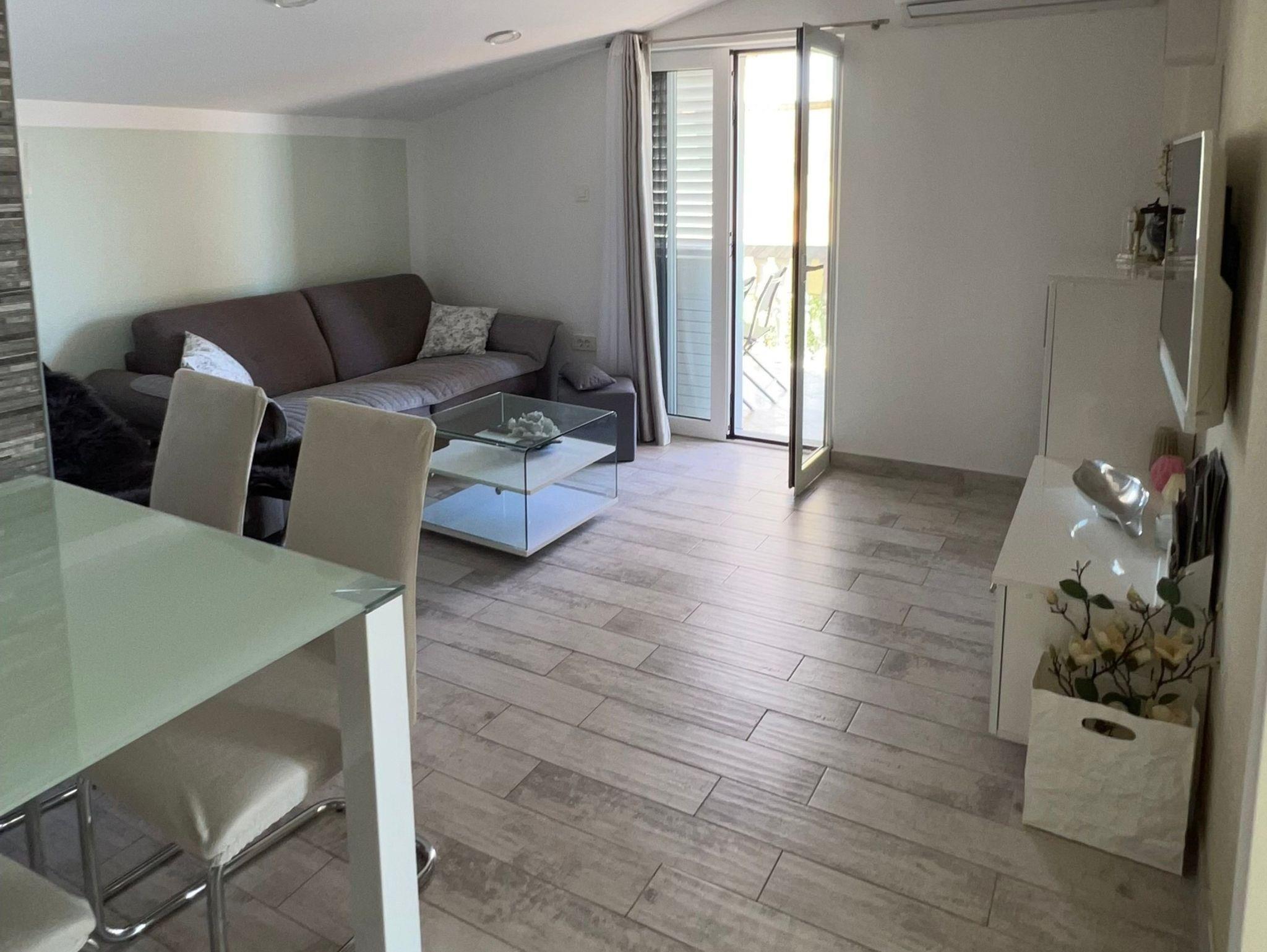 Ferienwohnung bietet Platz für 5 Gäste. Die Betten sind in Schlafzimmern, die es 2 gibt, innerhalb einer Gesamtfläche von 58m2, angeordnet. Die Gäste haben eine eigene Terrasse zur Verfügung, auf der sie in warmen Sommernächten genießen können. Es ist erlaubt, Speisen auf dem Gemeinschafts-Grill vorzubereiten. IM PREIS INBEGRIFFEN: Kurtaxe, Endreinigung, Klimatisierung, Parkplatz, Internet, Kinderbett, Bügeleisen, Bügelbrett, Föhn. VERBINDLICHE ZUSÄTZLICHE KOSTEN: Aufzahlung für Kurzaufenthalte (prozentualer Zuschlag pro Nächtigungsanzahl: 30% - 1, 20% - 2, 10% - 3). UNVERBINDLICHE ZUSÄTZLICHE KOSTEN: Fahrrad (10,00 € täglich (pro Stück)). Die Verfügbarkeit zusätzlicher Dienstleistungen in Ihrem reservierten Termin und die Preise derselben (falls nicht aufgeführt) müssen im Voraus überprüft werden. Zusätzliche Dienstleistungen die in der Zahlungsaufforderung nicht aufgeführt sind werden direkt beim Vermieter bezahlt, angenommen der Gast nutzt auch diese. Ermäßigung auf den Grundpreis: Gratistag 14=13 (bei einem Aufenthalt von 14 Tagen oder mehr erhalten Sie einen Gratistag für den Aufenthalt bis 31.12.26).