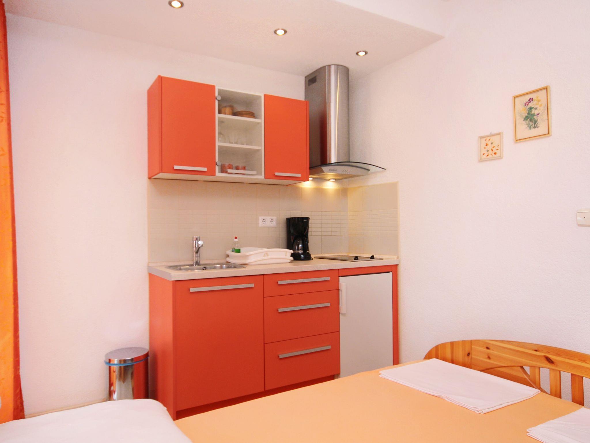 Studio bietet Platz für 2 Gäste. Die Betten sind in Schlafzimmern, die es 1 gibt, innerhalb einer Gesamtfläche von 17m2, angeordnet. Die Gäste haben eine eigene Terrasse zur Verfügung, auf der sie in warmen Sommernächten genießen können. Das Studio-Apartment bietet Meerblick. Es ist erlaubt, Speisen auf dem Gemeinschafts-Grill vorzubereiten. IM PREIS INBEGRIFFEN: Kurtaxe, Endreinigung, Klimatisierung, Parkplatz, Internet, Kinderbett, tragbarer Grill. VERBINDLICHE ZUSÄTZLICHE KOSTEN: Aufzahlung für Kurzaufenthalte (prozentualer Zuschlag pro Nächtigungsanzahl: 30% - 1, 20% - 2, 10% - 3). Die Verfügbarkeit zusätzlicher Dienstleistungen in Ihrem reservierten Termin und die Preise derselben (falls nicht aufgeführt) müssen im Voraus überprüft werden. Zusätzliche Dienstleistungen die in der Zahlungsaufforderung nicht aufgeführt sind werden direkt beim Vermieter bezahlt, angenommen der Gast nutzt auch diese.