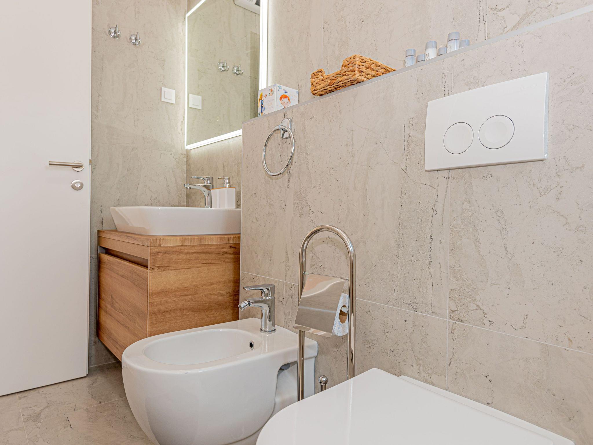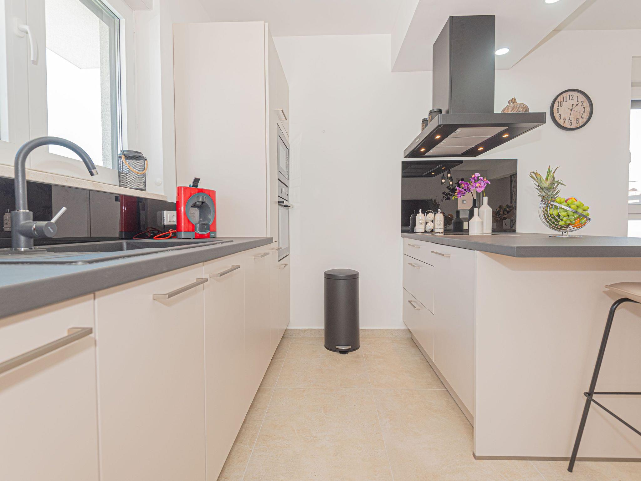 Haus bietet Platz für 6 Gäste. Die Betten sind in Schlafzimmern, die es 3 gibt, innerhalb einer Gesamtfläche von 101m2, angeordnet. Die Gäste haben eine eigene Terrasse zur Verfügung, auf der sie in warmen Sommernächten genießen können. Für vollen Genuss und Entspannung gibt es einen privaten Grill für Gäste dieser Unterkunft. Während ihres Aufenthalts können sich Gäste im privaten Schwimmbad entspannen. IM PREIS INBEGRIFFEN: Kurtaxe, Endreinigung, Klimatisierung, Pool, Parkplatz, Internet, Kinderbett, Bügeleisen, Bügelbrett, Föhn. VERBINDLICHE ZUSÄTZLICHE KOSTEN: Aufzahlung für Kurzaufenthalte (prozentualer Zuschlag pro Nächtigungsanzahl: 30% - 1, 20% - 2, 10% - 3). UNVERBINDLICHE ZUSÄTZLICHE KOSTEN: Boot (200,00 € pro Nacht). Die Verfügbarkeit zusätzlicher Dienstleistungen in Ihrem reservierten Termin und die Preise derselben (falls nicht aufgeführt) müssen im Voraus überprüft werden. Zusätzliche Dienstleistungen die in der Zahlungsaufforderung nicht aufgeführt sind werden direkt beim Vermieter bezahlt, angenommen der Gast nutzt auch diese. Ermäßigung auf den Grundpreis: Gratistag 14=13 (bei einem Aufenthalt von 14 Tagen oder mehr erhalten Sie einen Gratistag für den Aufenthalt bis 31.12.26).