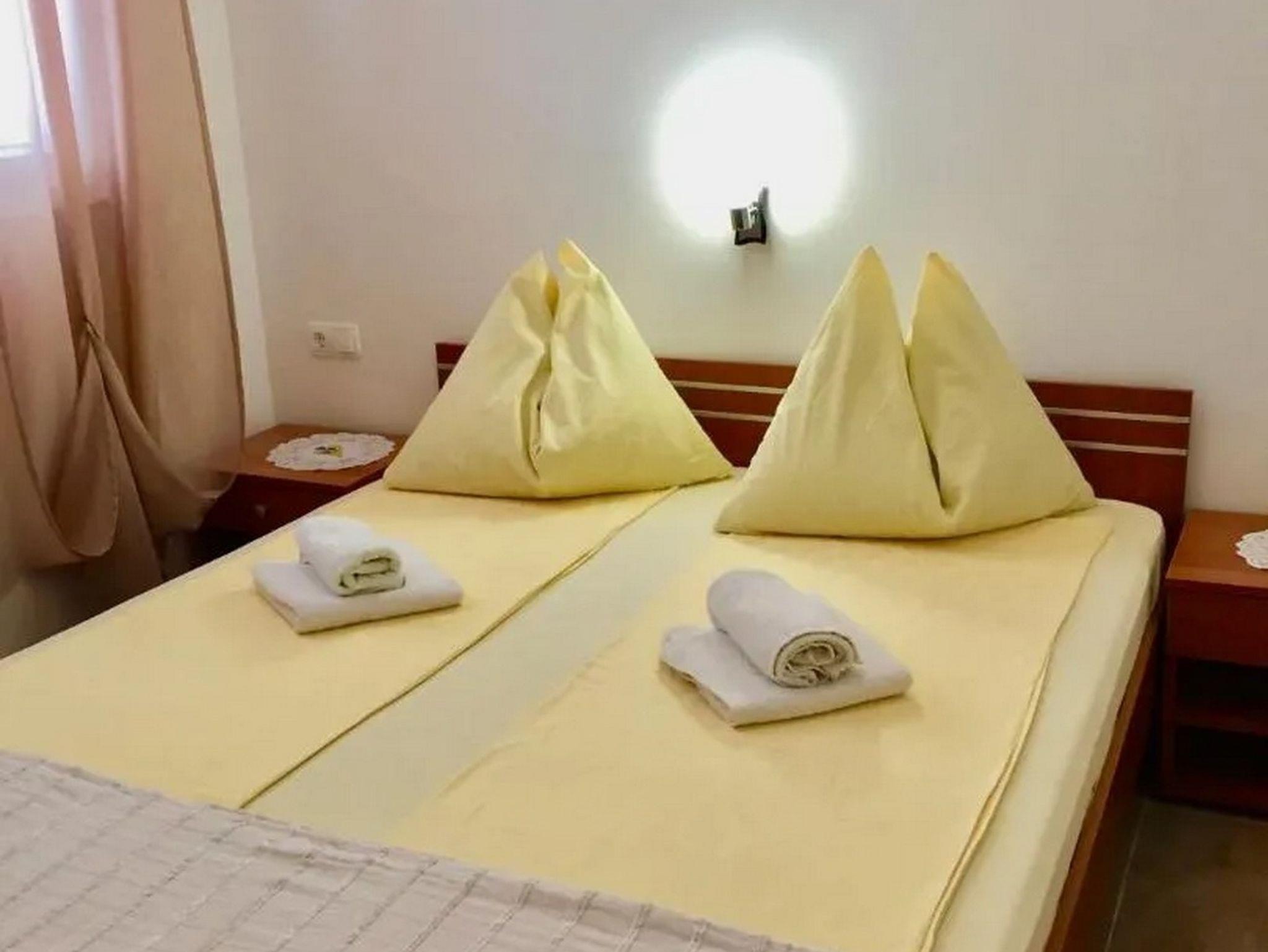 Ferienwohnung bietet Platz für 4 Gäste. Die Betten sind in Schlafzimmern, die es 2 gibt, innerhalb einer Gesamtfläche von 54m2, angeordnet. Die Gäste haben einen eigenen Balkon zur Verfügung, auf der sie in warmen Sommernächten genießen können. Es ist erlaubt, Speisen auf dem Gemeinschafts-Grill vorzubereiten. IM PREIS INBEGRIFFEN: Kurtaxe, Endreinigung, Klimatisierung, Parkplatz, Internet, Kinderbett, Bügelbrett. VERBINDLICHE ZUSÄTZLICHE KOSTEN: Aufzahlung für Kurzaufenthalte (prozentualer Zuschlag pro Nächtigungsanzahl: 30% - 1, 20% - 2, 10% - 3). UNVERBINDLICHE ZUSÄTZLICHE KOSTEN: Wäschewaschen (3,00 € Waschen), Zusatzbett (15,00 € pro Nacht). Die Verfügbarkeit zusätzlicher Dienstleistungen in Ihrem reservierten Termin und die Preise derselben (falls nicht aufgeführt) müssen im Voraus überprüft werden. Zusätzliche Dienstleistungen die in der Zahlungsaufforderung nicht aufgeführt sind werden direkt beim Vermieter bezahlt, angenommen der Gast nutzt auch diese. Ermäßigung auf den Grundpreis: Gratistag 14=13 (bei einem Aufenthalt von 14 Tagen oder mehr erhalten Sie einen Gratistag für den Aufenthalt bis 31.12.26).
