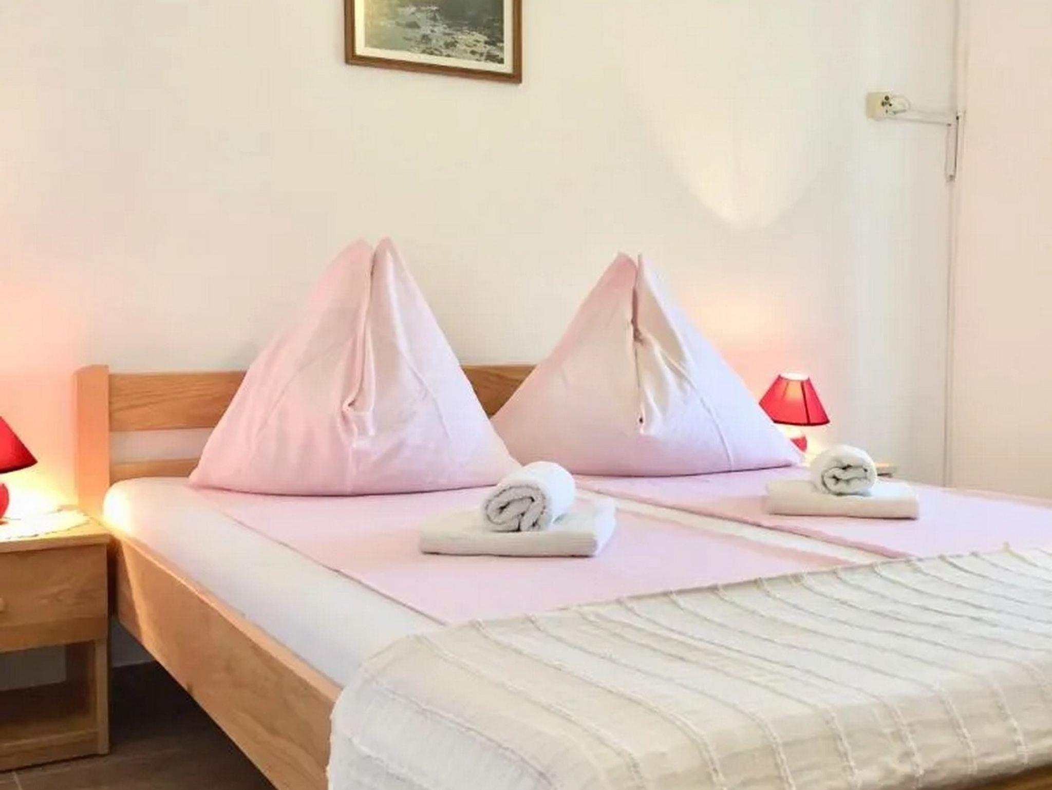 Ferienwohnung bietet Platz für 4 Gäste. Die Betten sind in Schlafzimmern, die es 2 gibt, innerhalb einer Gesamtfläche von 52m2, angeordnet. Die Gäste haben eine eigene Terrasse zur Verfügung, auf der sie in warmen Sommernächten genießen können. Es ist erlaubt, Speisen auf dem Gemeinschafts-Grill vorzubereiten. IM PREIS INBEGRIFFEN: Kurtaxe, Endreinigung, Klimatisierung, Parkplatz, Internet, Kinderbett, Bügelbrett. VERBINDLICHE ZUSÄTZLICHE KOSTEN: Aufzahlung für Kurzaufenthalte (prozentualer Zuschlag pro Nächtigungsanzahl: 30% - 1, 20% - 2, 10% - 3). UNVERBINDLICHE ZUSÄTZLICHE KOSTEN: Wäschewaschen (3,00 € Waschen). Die Verfügbarkeit zusätzlicher Dienstleistungen in Ihrem reservierten Termin und die Preise derselben (falls nicht aufgeführt) müssen im Voraus überprüft werden. Zusätzliche Dienstleistungen die in der Zahlungsaufforderung nicht aufgeführt sind werden direkt beim Vermieter bezahlt, angenommen der Gast nutzt auch diese. Ermäßigung auf den Grundpreis: Gratistag 14=13 (bei einem Aufenthalt von 14 Tagen oder mehr erhalten Sie einen Gratistag für den Aufenthalt bis 31.12.26).