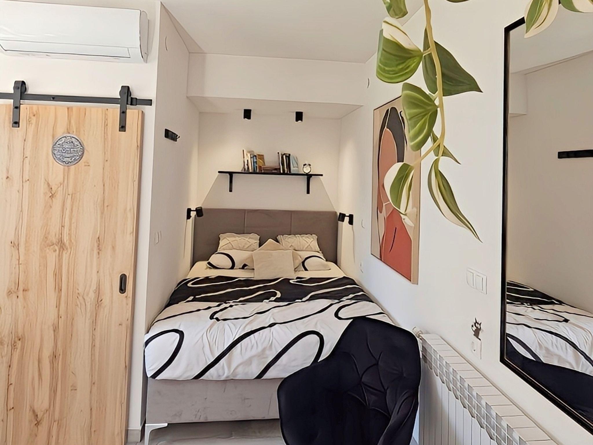Studio bietet Platz für 2 Gäste. Die Betten sind in Schlafzimmern, die es 1 gibt, innerhalb einer Gesamtfläche von 20m2, angeordnet. Die Gäste haben eine eigene Terrasse zur Verfügung, auf der sie in warmen Sommernächten genießen können. Es ist erlaubt, Speisen auf dem Gemeinschafts-Grill vorzubereiten. IM PREIS INBEGRIFFEN: Kurtaxe, Endreinigung, Klimatisierung, Parkplatz, Internet, Bügeleisen, Bügelbrett, Föhn. VERBINDLICHE ZUSÄTZLICHE KOSTEN: Aufzahlung für Kurzaufenthalte (prozentualer Zuschlag pro Nächtigungsanzahl: 30% - 1, 20% - 2, 10% - 3). UNVERBINDLICHE ZUSÄTZLICHE KOSTEN: Zentralheizung (5,00 € pro Nacht). Die Verfügbarkeit zusätzlicher Dienstleistungen in Ihrem reservierten Termin und die Preise derselben (falls nicht aufgeführt) müssen im Voraus überprüft werden. Zusätzliche Dienstleistungen die in der Zahlungsaufforderung nicht aufgeführt sind werden direkt beim Vermieter bezahlt, angenommen der Gast nutzt auch diese. Ermäßigung auf den Grundpreis: Gratistag 14=13 (bei einem Aufenthalt von 14 Tagen oder mehr erhalten Sie einen Gratistag für den Aufenthalt bis 31.12.26).