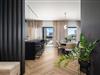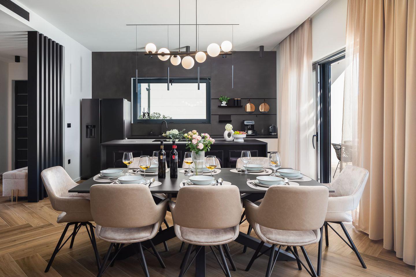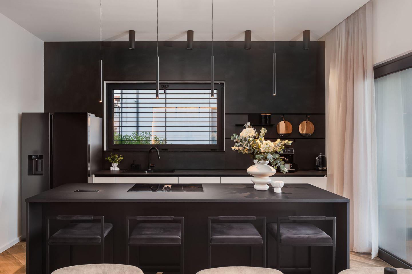Der offene Wohnbereich besticht durch klare Linien, ein geschmackvolles Interieur und viel natürliches Licht. Die moderne, voll ausgestattete Küche geht fließend in den gemütlichen Wohnraum mit bequemen Sofas über – der perfekte Ort zum Entspannen oder für gesellige Stunden.