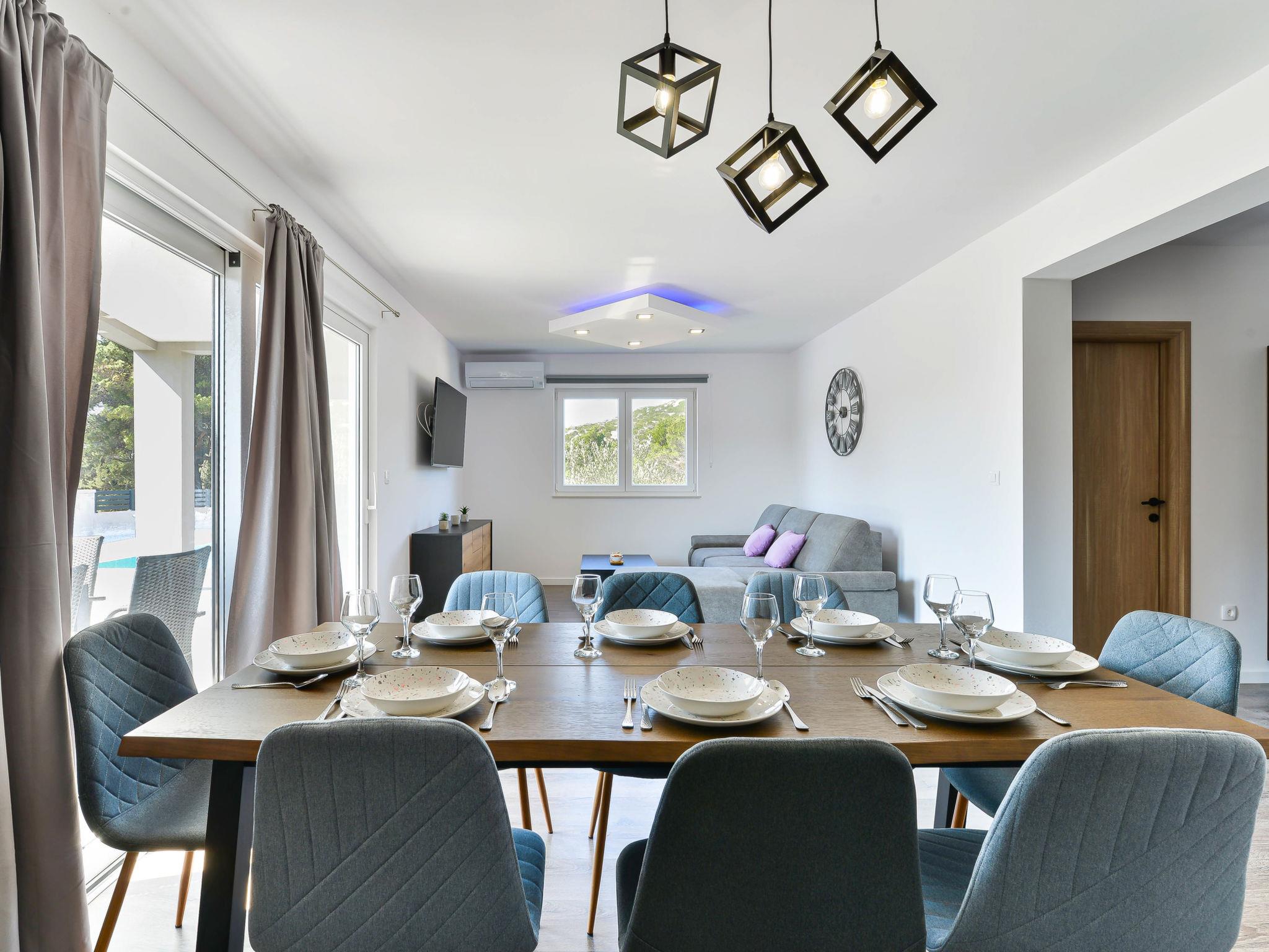 Tribunj 5 km von Vodice: Modernes, schönes Doppelhaus "Gušt", auf 2 Stockwerken, Baujahr 2023. Im Weiler Sovlje, 1.5 km vom Zentrum von Tribunj, ruhige, sonnige Lage, 400 m vom Meer, 500 m vom Strand. Zur Alleinbenutzung: Grundstück 350 m2, Schwimmbad eckig, beheizt (6 x 3 m, 21 m2, 150 cm tief, saisonale Verfügbarkeit: 01.Mai. - 31.Okt.). Aussendusche, Grill, Poolpflege durch den Besitzer/Gärtner. Im Hause: Internetzugang, Waschmaschine. Parkplatz (für 2 Autos) beim Haus auf dem Grundstück. Einkaufsgeschäft 1.5 km, Restaurant 350 m, Bushaltestelle 5.2 km, Kieselstrand, betonierter Strand 500 m.