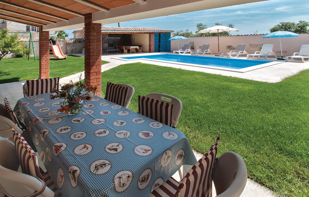 Unweit des Städtchens Vodnjan befindet sich dieses Ferienhaus. Es ist mit geschmackvollen Möbeln ausgestattet und sorgt für gewünschten Komfort. Die Stockwerke sind über Innentreppen miteinander verbunden. Entspannen Sie sich im geräumigen Wohnzimmer mit Kamin oder erfrischen Sie sich im Pool. Verbringen Sie Ihre gemütlichen Abende im Freien auf der Terrasse und genießen Sie Ihr Essen vom Grill, während Ihre Kinder ungestört im umzäunten Garten in der Kinderecke spielen.