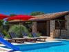 Diese alte renovierte Villa mit einem großen Pool in einem riesigen, begrünten Innenhof ist der perfekte Ort für einen Urlaub voller Ruhe und Entspannung, von dem Sie träumen. Die Villa Negrin verfügt über vier Schlafzimmer und bietet Platz für bis zu zehn Personen. Im Erdgeschoss des offenen Raums befindet sich ein großes Wohnzimmer mit Kamin, eine voll ausgestattete Küche und ein Essbereich für zehn Personen, ideal für Familienessen. Es gibt auch einen Weinkeller im Erdgeschoss. Im ersten Stock befinden sich drei Schlafzimmer, alle drei klimatisiert und mit eigenem Bad, sowie eine kleine, komfortable Terrasse, auf der an heißen Sommertagen immer eine angenehme Brise weht. Der alte Dachboden wurde in ein großes Hauptschlafzimmer umgewandelt, mit sichtbaren Ziegel und Deckenbalken für visuelle Effekte. Dieses Schlafzimmer ist auch klimatisiert und verfügt über ein eigenes Bad. Im Hof ??gibt es einen großen Pool, in dem Sie schwimmen und entspannen können, wenn die Tage zu heiß werden, oder mit einem kalten Getränk in der Hand können Sie sich auf Liegestühlen rund um den Pool sonnen. Der Pool hat auch eine kleine Rutsche für die Kleinen. Wenn Sie mit Kindern reisen, ist diese Villa die perfekte Wahl, da sie einen 2000 m² großen Garten mit üppigem Grün bietet, in dem Kinder ohne Sorgen spielen können. Für ihren Spaß beim Entspannen gibt es auch ein Badminton- und Volleyballnetz, ein Trampolin, einen Basketballkorb, Schaukeln und Darts, damit sie problemlos überschüssige Energie verbrennen können. Es gibt auch einen großen überdachten Speisesaal im Freien mit Grill für 12 Personen, in dem Sie diese Familienessen genießen können, während die Brise den feinen Sommerduft des nahe gelegenen Meeres trägt. Fühlst du dich jetzt nicht entspannt? Buchen Sie jetzt Villa Negrin und gönnen Sie sich den Urlaub, den Sie verdienen.Gajana ist ein kleines Dorf in der Gemeinde Vodnjan in der Nähe von Pula und Rovinj. Gajana ist ein typisch istrisches Dorf mit 20 Häusern, das von Feldern und Wäldern umgeben ist. Ungefähr 6 km außerhalb von Gajana befindet sich die mittelalterliche Stadt Vodnjan, in deren Stadtkern Sie noch Barock-, Renaissance- und Gotikarchitektur bewundern können. Überall sieht man viele Details aus verschiedenen Epochen, wie Holztüren, Steinfassaden und schmiedeeiserne Verzierungen an Brunnen. Typische alte und enge istrische Straßen, die mit Steinen gepflastert sind, führen zur Kirche, die den höchsten Kirchturm in ganz Istrien aufweist. Da die Verkehrsanbindung in Istrien gut ist, können Sie jederzeit ins Auto steigen und einen Ausflug machen. Nach einer kurzen Fahrt von 20 bis 40 Minuten durch die wunderschöne Natur erreichen Sie die großen Küstenstädte Pula, Rovinj und Porec. Alle drei Orte sind antike Städte aus der Römerzeit, in denen Sie viele historische Denkmäler erkunden können, wie z.B. das Amphitheater in Pula, die Euphrasianische Basilika in Porec oder der Kirche St. Euphemia in Rovinj. Für eine Abkühlung im kristallblauen Meer besuchen Sie die zahlreichen Strände in der Umgebung.