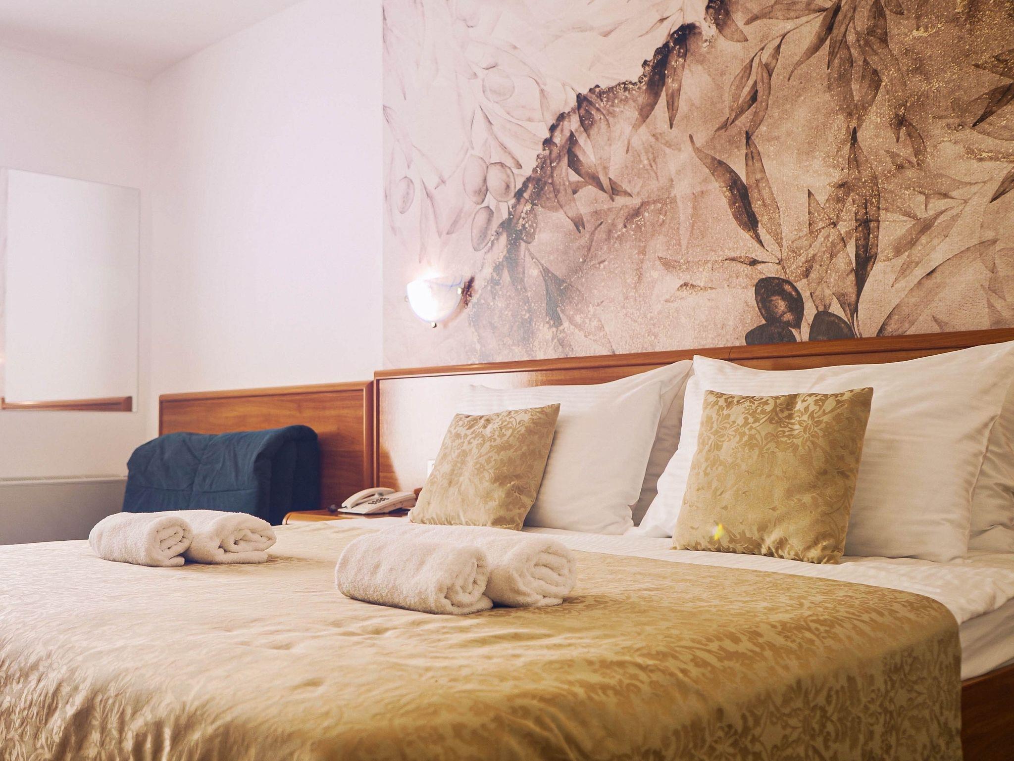 Zimmer bietet Platz für 2 Gäste. Die Betten sind in Schlafzimmern, die es 1 gibt, innerhalb einer Gesamtfläche von 25m2, angeordnet. Die Gäste haben einen eigenen Balkon zur Verfügung, auf der sie in warmen Sommernächten genießen können. Während ihres Aufenthalts können Gäste das gemeinsam zur Nutzung stehende Schwimmbad benutzen. In der Unterkunftseinheit besteht die Möglichkeit des Mitbringens von Haustieren gegen Aufpreis. Die reservierte Unterkunftseinheit ist ein Zimmer mit eigenem Badezimmer ohne die Möglichkeit der Nutzung einer Küche. IM PREIS INBEGRIFFEN: Endreinigung, Klimatisierung, Pool, Parkplatz, Internet, Föhn, Sonnenschirm. VERBINDLICHE ZUSÄTZLICHE KOSTEN: Kurtaxe (Erwachsene 0,93 € - 1,50 € Nacht/Person, Kinderermäßigung 12 - 17 Jahre). UNVERBINDLICHE ZUSÄTZLICHE KOSTEN: Halbpension (30,00 €, 50% Nachlass für Kinder zwischen 4 und 12 Jahren, Kinder bis 4 Jahre sind frei.), Vollpension (60,00 €, 50% Nachlass für Kinder zwischen 4 und 12 Jahren, Kinder bis 4 Jahre sind frei.), Haustiere (30,00 € pro Nacht), Fahrrad (20,00 € täglich (pro Stück)). Die Verfügbarkeit zusätzlicher Dienstleistungen in Ihrem reservierten Termin und die Preise derselben (falls nicht aufgeführt) müssen im Voraus überprüft werden. Zusätzliche Dienstleistungen die in der Zahlungsaufforderung nicht aufgeführt sind werden direkt beim Vermieter bezahlt, angenommen der Gast nutzt auch diese. Ermäßigung auf den Grundpreis: Gratistag 14=13 (bei einem Aufenthalt von 14 Tagen oder mehr erhalten Sie einen Gratistag für den Aufenthalt bis 31.12.26).