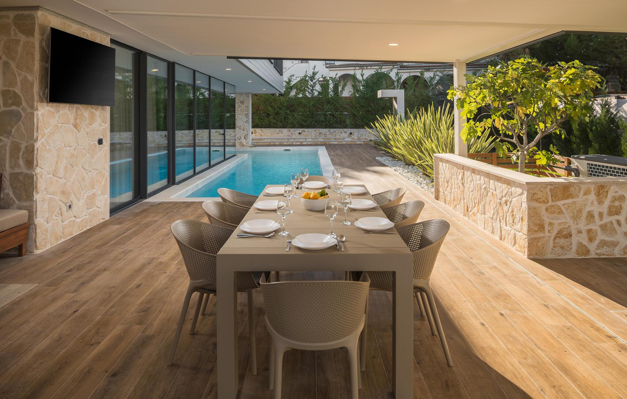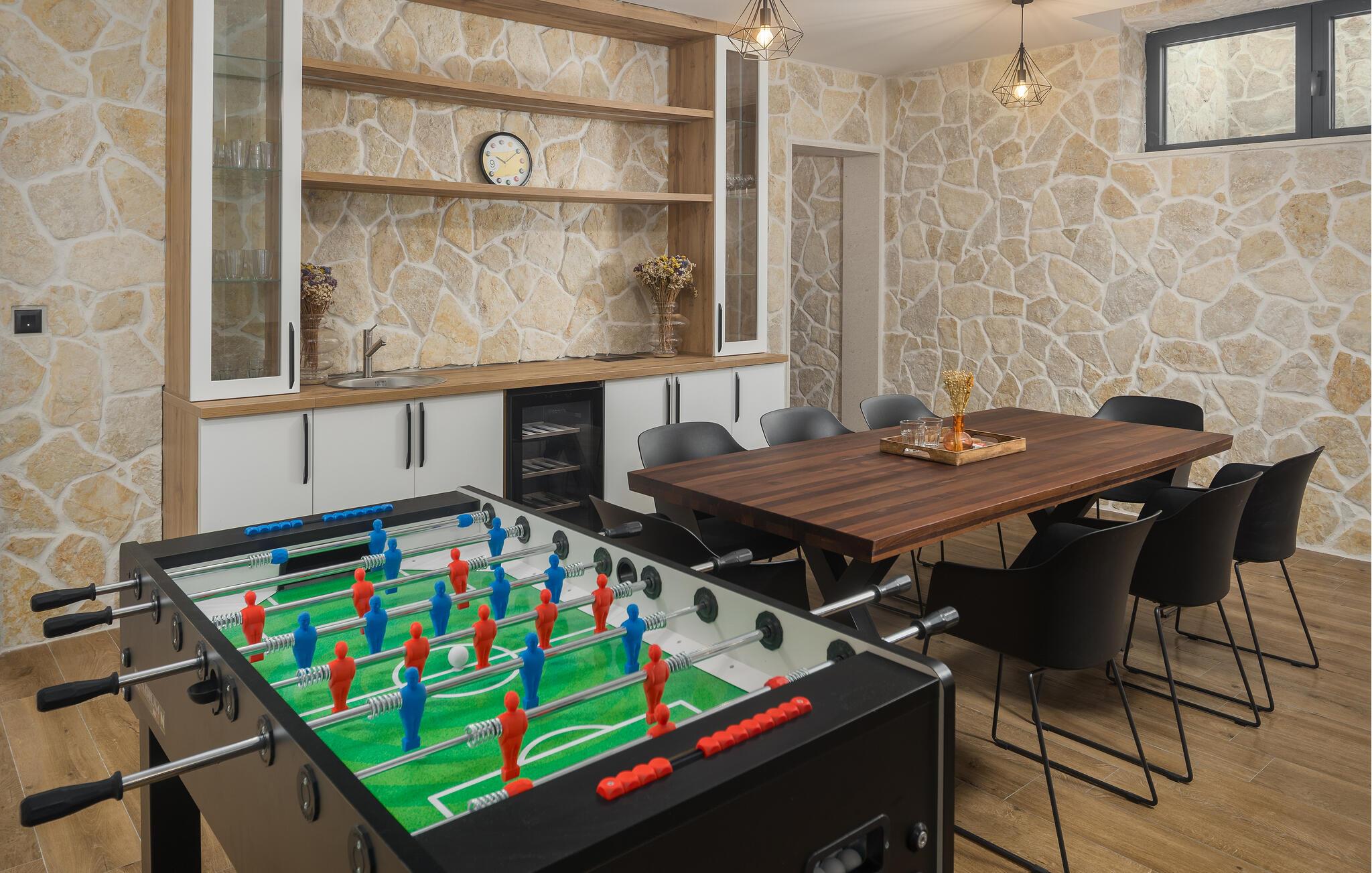 An der istrischen Küste südlich von Porec lädt Sie dieses großzügiges Ferienhaus zu einem einzigartigen Aufenhalt ein. Hier erwartet Sie ein geräumiges, hochwertiges Interieur, in dem sich Komfort und Ästhetik zu einer sehr geschmackvollen Ganzheit verbunden. Verbringen Sie erholsame Urlaubstage in stilvoller Atmosphäre und vergnügen Sie sich ab und zu beim Kicker, Tischtennis, Darts oder Pool.
