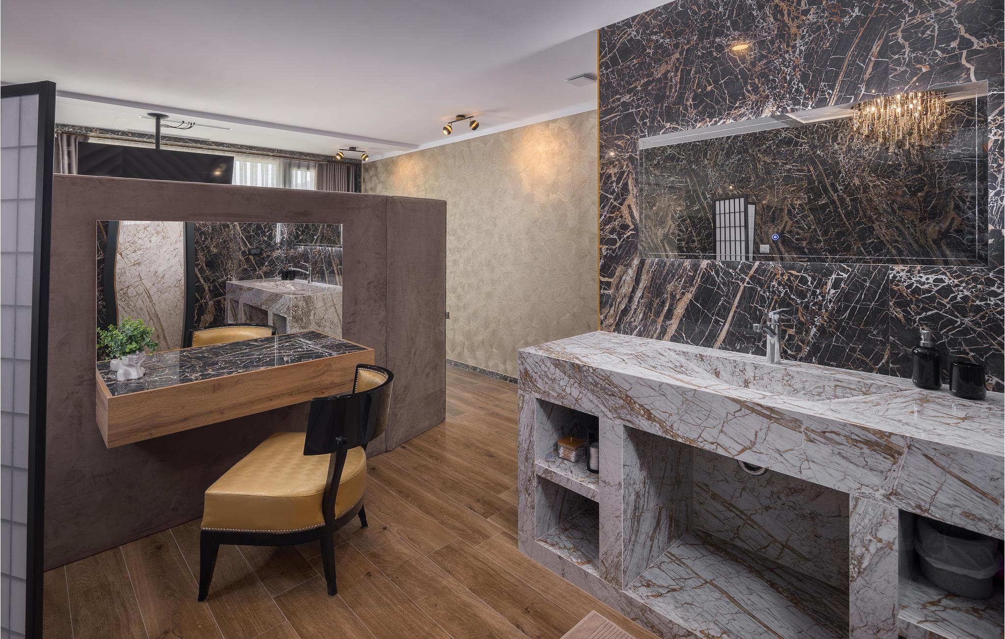 - WC mit warmem und kaltem Wasser, Handbrause und Badewanne