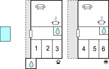 Badezimmer 4m2 (nr. 1) - WC. Warmes und kaltes Wasser. Dusche