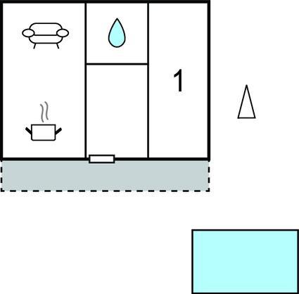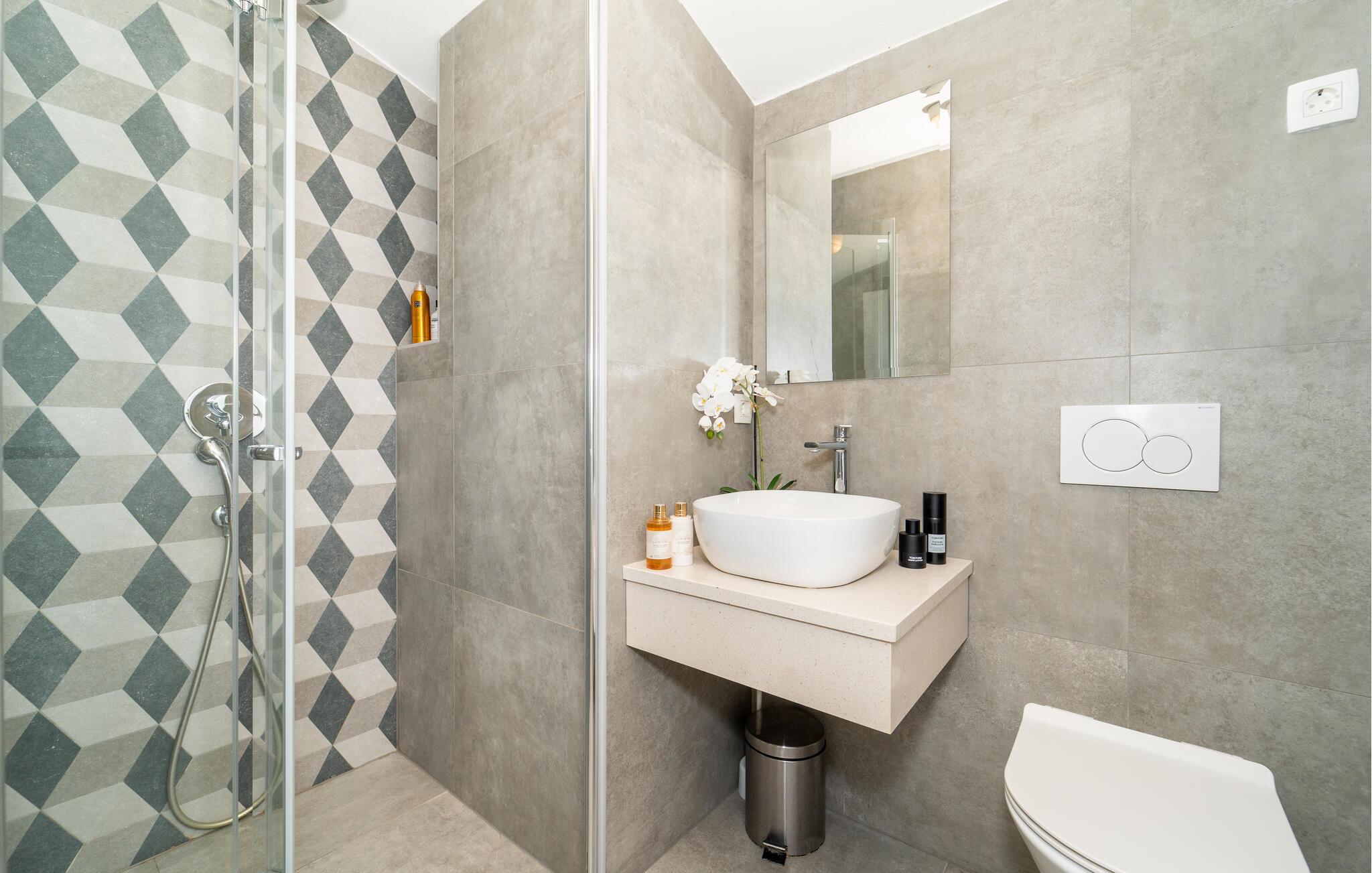 Badezimmer 4m2 (nr. 1) - WC. Warmes und kaltes Wasser. Dusche