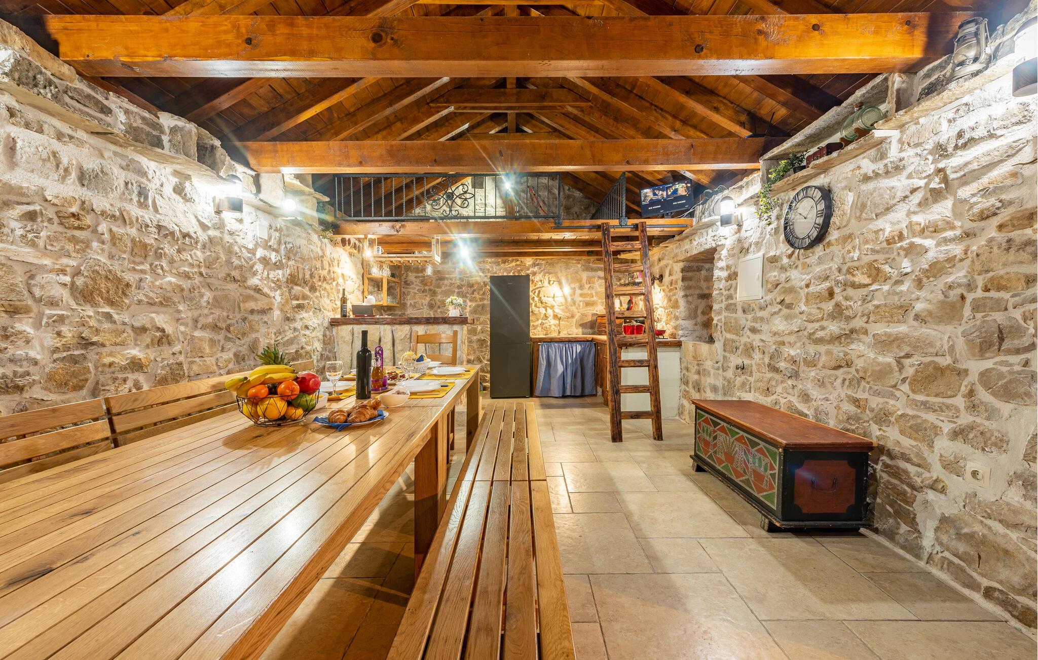 Willkommen in dieser geräumigen Unterkunft, die Sie in einem traditionellen Steinhaus in modernem Gewandt empfängt. Genießen Sie den Charme der von den Steinwänden, dem Holz und der komfortablen Einrichtung ausgehen und nutzen mit Ihrer Großfamilie oder mit befreundeten Paaren die Räume zum Entspannen.