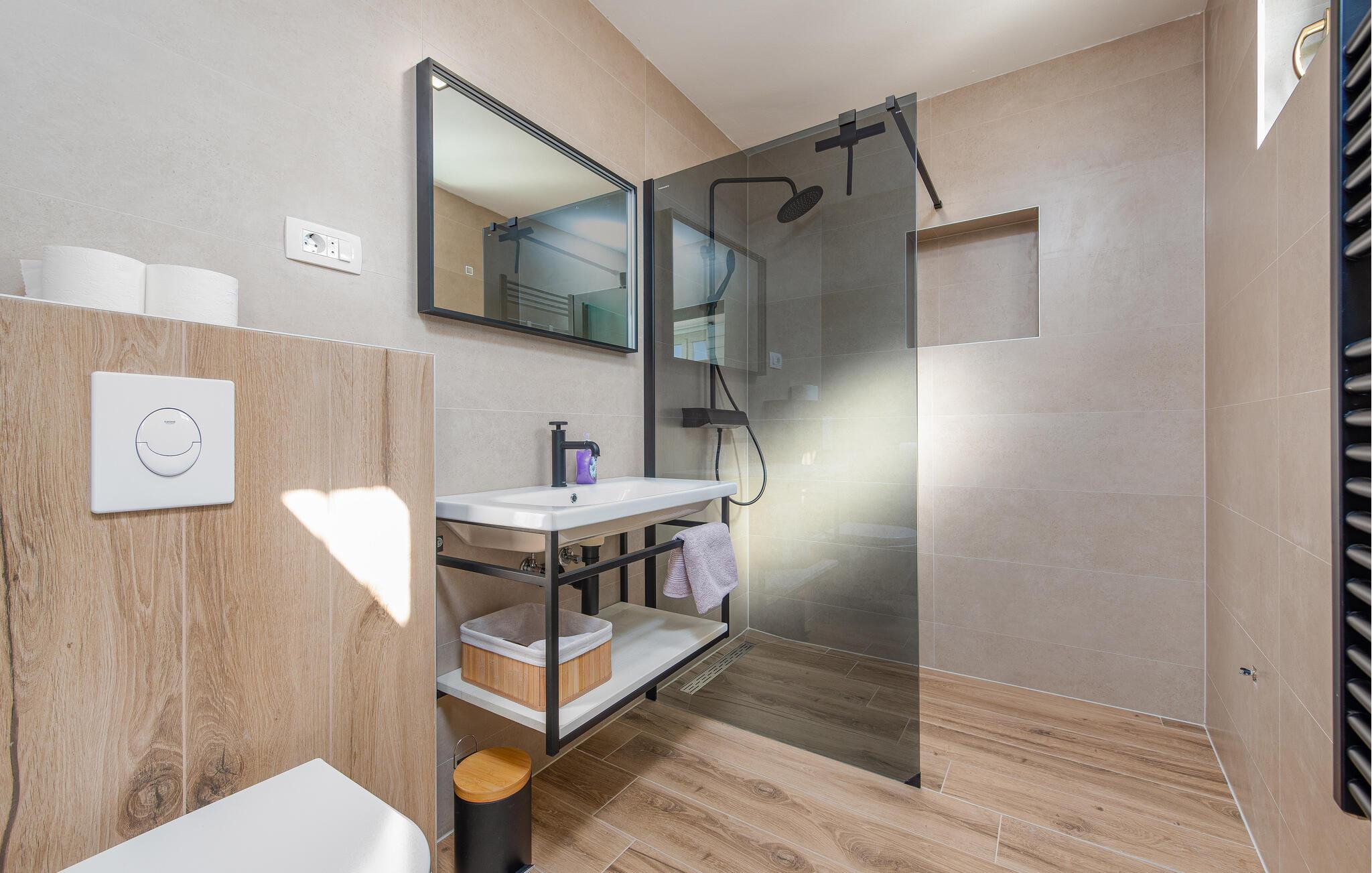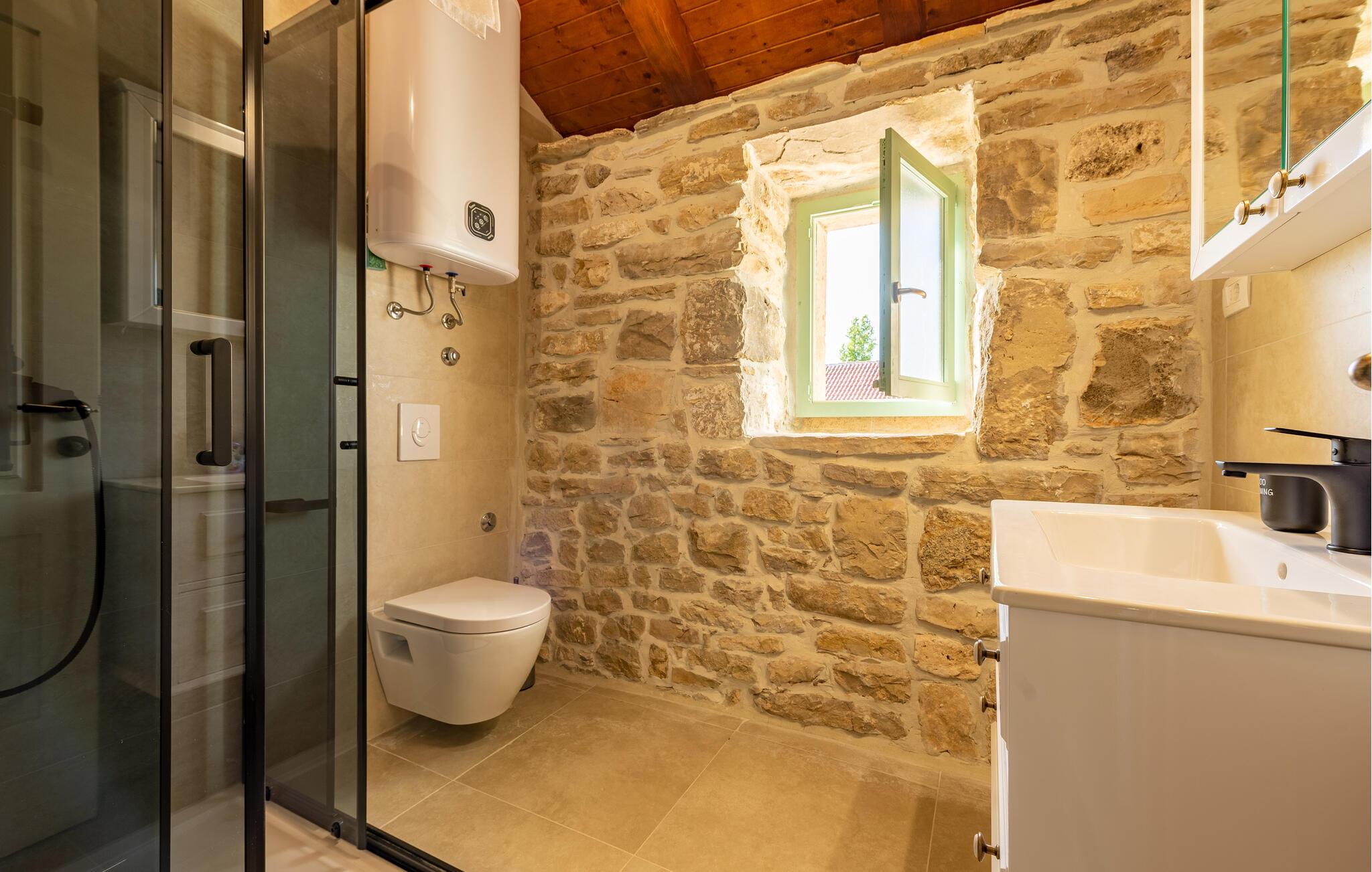 Das Badezimmer hat einen Zugang von außen