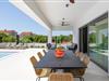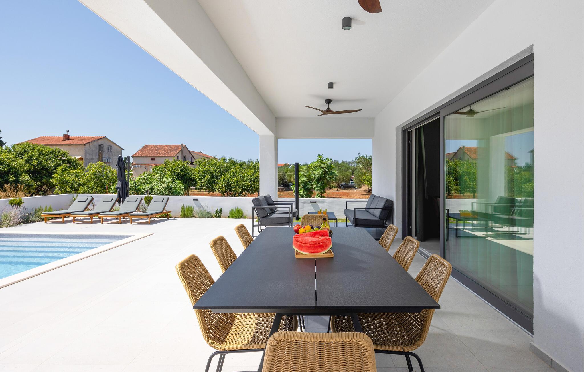 In diesem modernen Ferienhaus in Sukosan erwartet Sie ein Urlaub voller Komfort und Eleganz. Das großzügige, schlicht designte Interieur bietet Ihnen alles, was Sie für Ihren erholsamen Aufenthalt brauchen. Zaubern Sie in der Küche leckere Mahlzeiten oder versammeln sich zu einem unterhaltsamen Filmabend auf dem Sofa. Der lichtdurchflutete Wohnbereich führt auf eine überdachte Terrasse, die sich perfekt für gemeinsame Mahlzeiten im Freien eignet. Der zusätzliche Balkon an den Schlafzimmern bietet Ihnen einen herrlichen Meerblick und macht das Aufstehen besonders angenehm. Der Swimmingpool im Garten lädt Sie zu entspannten Tagen ein, während Sie das stilvolle Ambiente genießen – ideal für Ihren gelungenen Urlaub.
