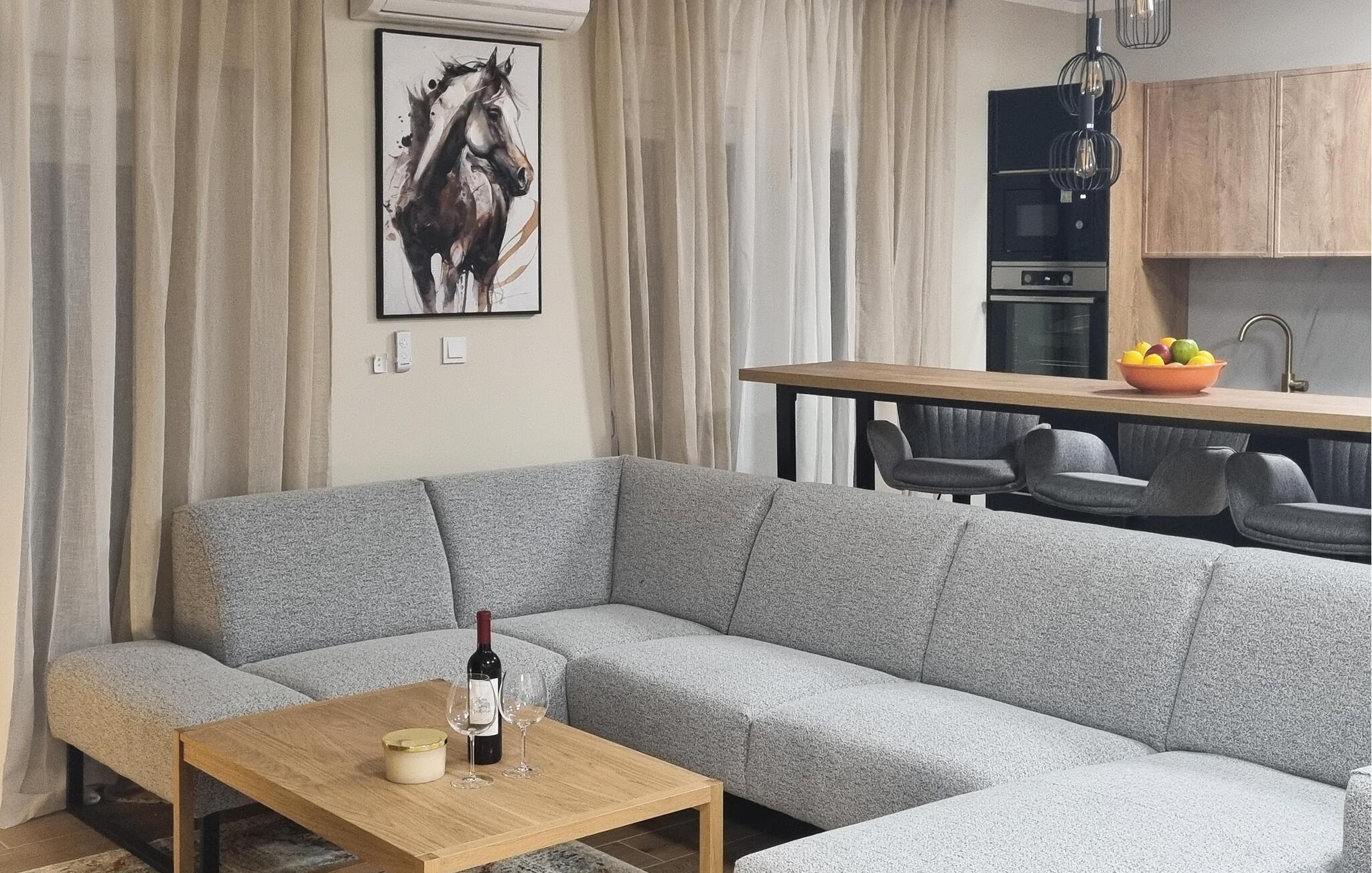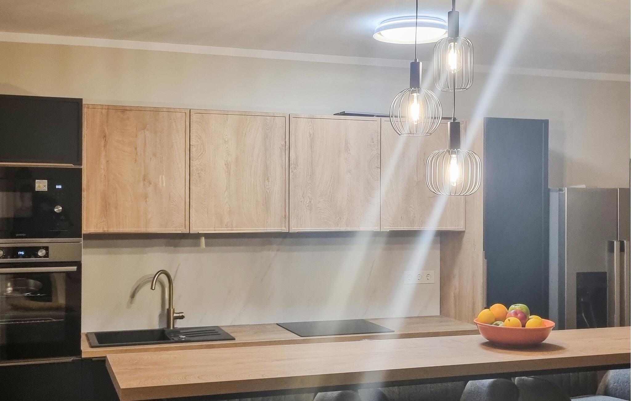 In dieser schönen Wohnung vereinen sich Komfort und Behaglichkeit, so dass Sie sich von Anfang an wohlfühlen. Genießen Sie eine erholsame Auszeit auf der Sofalandlandschaft, hören Sie Musik, vertiefen Sie sich in Ihre Urlaubslektüre oder plaudern Sie bis spät in den Abend. Bereiten Sie in der Küche schmackhafte Gerichte zu und verwöhnen Sie Ihre Familie oder Freunde mit einem guten Glas Wein.