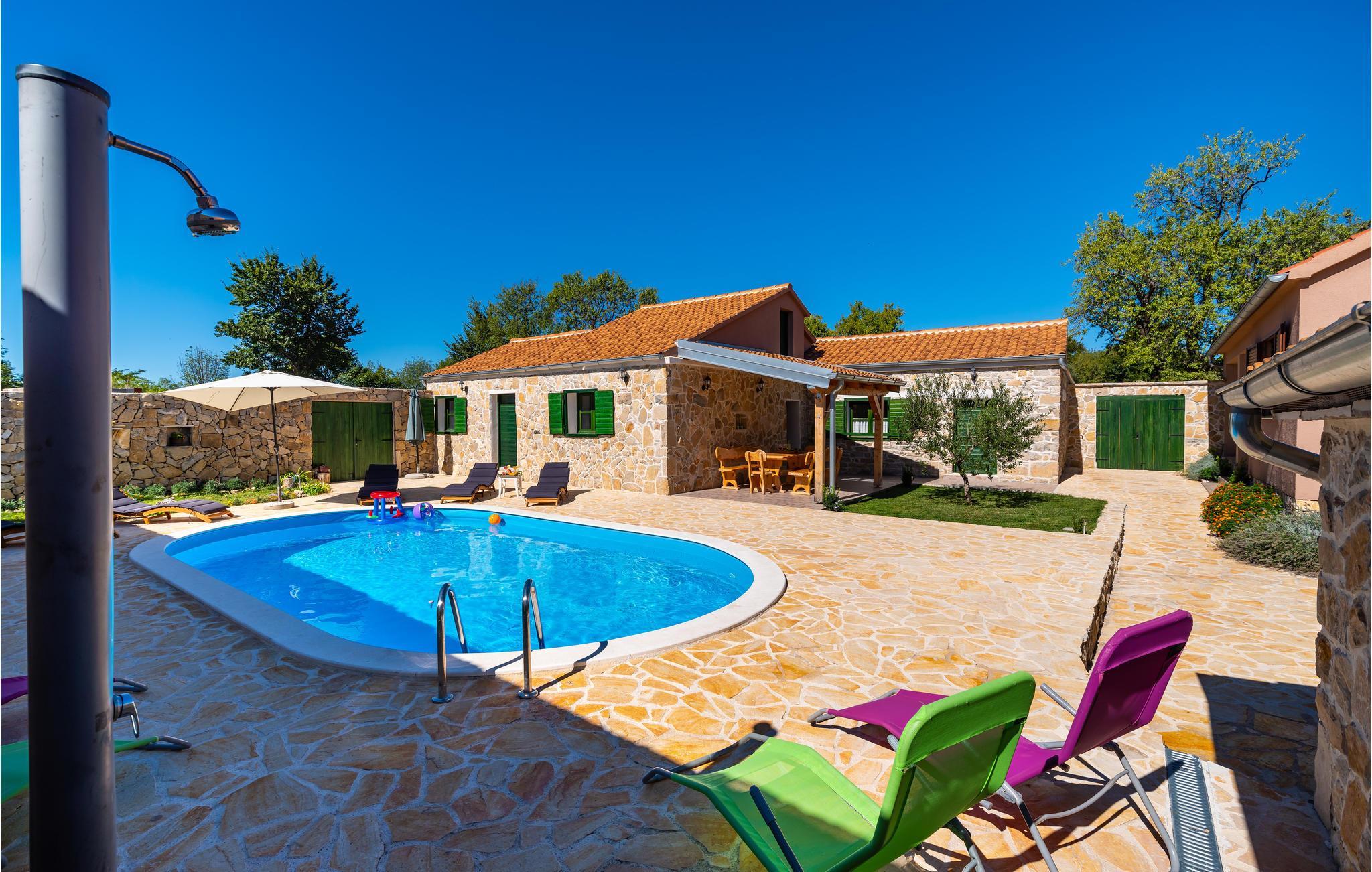 Dieses charmante Anwesen mit Pool besteht aus separaten Häusern mit dazugehöriger Taverne. Die Einrichtung ist traditionell und modern zugleich. Im Hauptgebäude sind zwei Schlafzimmer, ein Badezimmer und eine Wohnküche. Daneben ist einer Taverne mit separatem Außeneingang und Toilette, im sind Nebengebäude das Schlafzimmer Nr. 3 und ein Badezimmer. Viel Badespaß bietet der Pool und wenn Sie im Meer schwimmen möchten, dann liegt der nächste Strand in Karin Donji. Nicht weit entfernt können Sie die Überreste der liburnisch-römischen Siedlung Asserie besichtigen. Sehenswert ist auch die Stadt Zadar in der es, neben kulturellen Attraktionen, zahlreiche Restaurants mit ausgezeichneten lokalen Gerichten gibt. Empfehlenswert sind Ausflüge zu den Nationalparks Paklenica, Krka, Plitvicer See, Kornati und zum Naturpark Vrana-See.