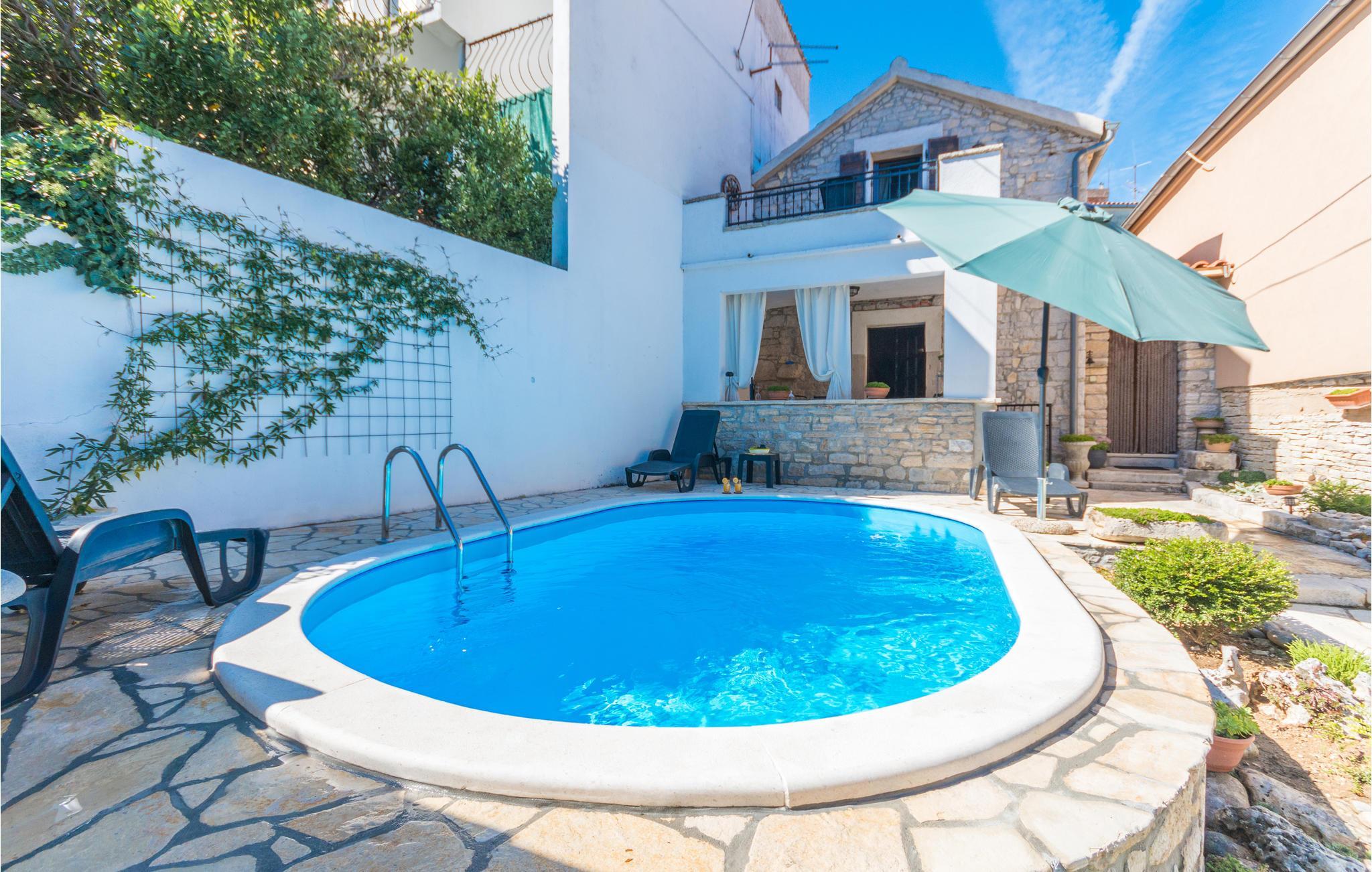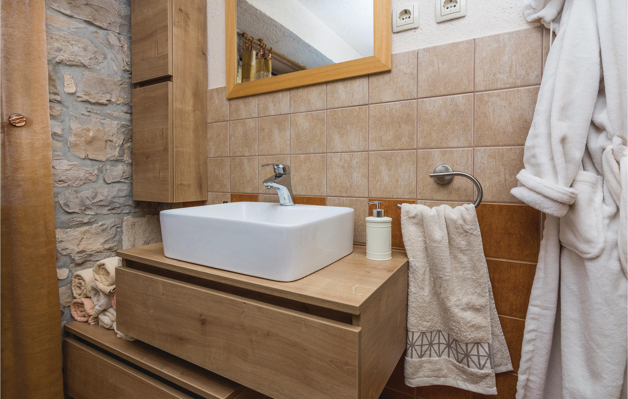 Dieses sanierte Steinhaus liegt etwa 200 m vom Zentrum der Stadt Benkovac und der Hauptpromenade entfernt. Im näheren Umkreis gibt es alle Annehmlichkeiten wie u.a. eine Apotheke, Cafés, Restaurants und einen Friseursalon. Die Wohnfläche verteilt sich über zwei Etagen und beinhaltet im Erdgeschoss das Wohnzimmer mit Küche, während im Obergeschoss zwei Schlafzimmer sowie eine Galerie liegen, in der ein Massagesessel zum Entspannen steht. Das Fenster des Schlafzimmers Nr. 2 ist auf die Galerie ausgerichtet. Auf der Vorderseite des Hauses sind eine Terrasse und ein Pool, wobei auf der Rückseite noch eine gemütliche Terrasse zum Entspannen vorhanden ist. Besichtigen Sie die Überreste der liburnisch-römischen Siedlung Asserie sowie die Stadt Zadar, die neben historischen Attraktionen viele Veranstaltungen bietet.
