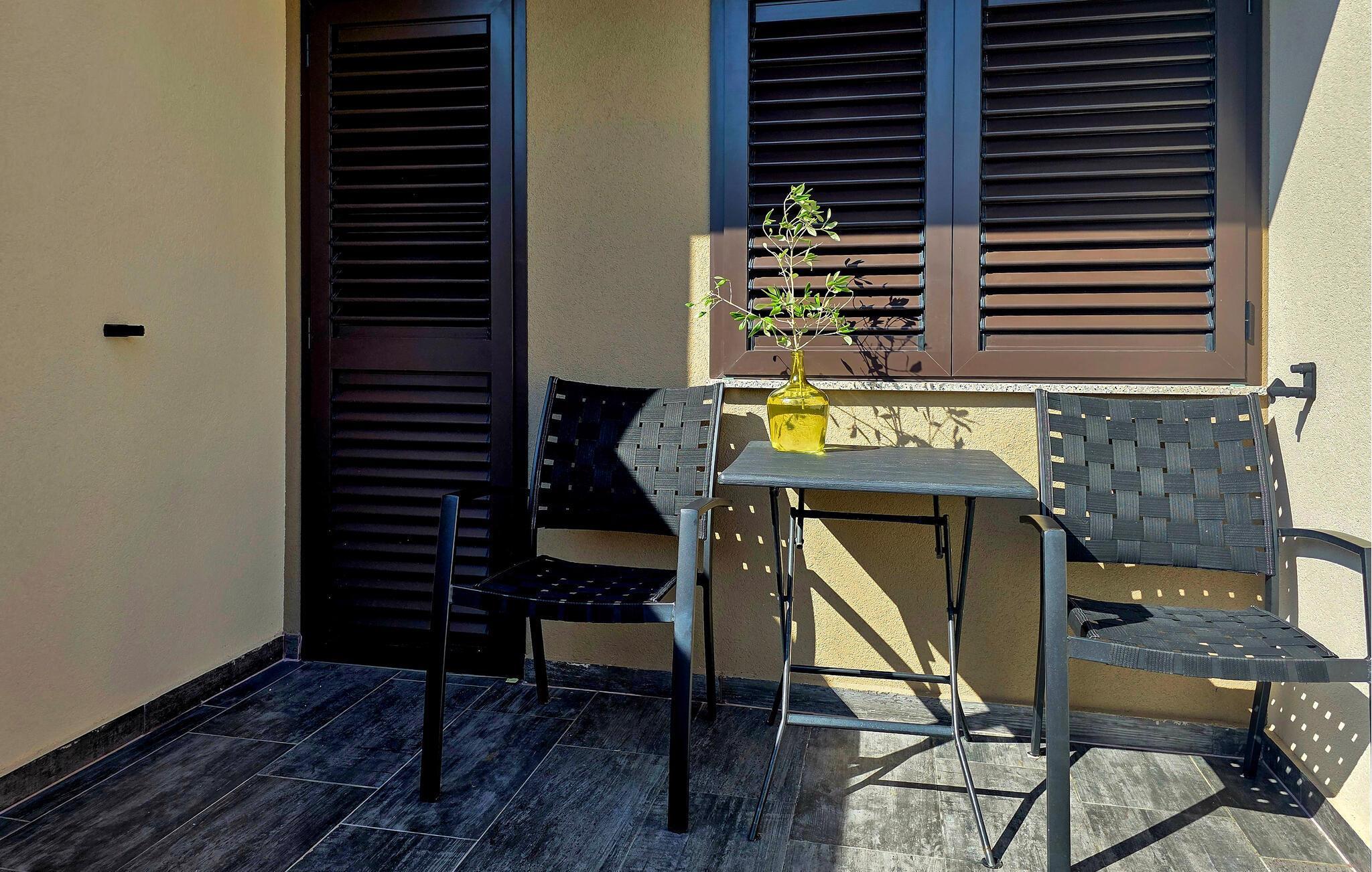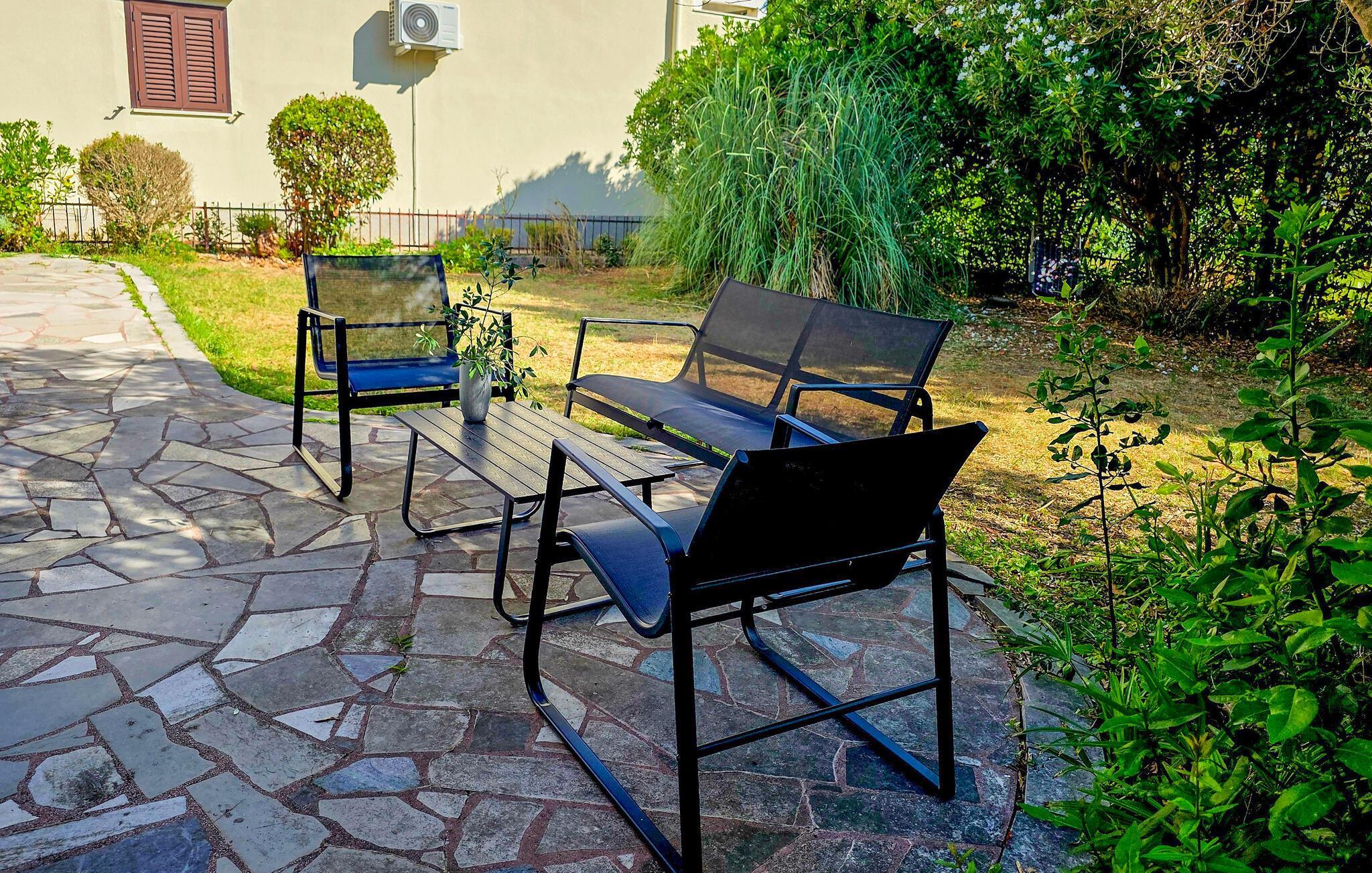 Der gepflegte Außenbereich bietet gleich mehrere schattige Essgelegenheiten. Servieren Sie sich Ihr Frühstück im Freien und plaudern Sie in der rustikalen Atmosphäre des Grillbereichs bei Wein und Kerzenschein in die warme Sommernacht hinein.