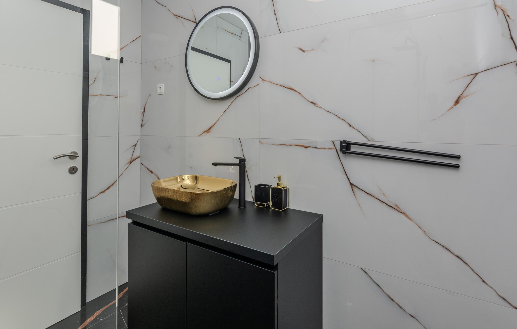 Badezimmer 5m2 (nr. 2) - WC. Warmes und kaltes Wasser. Dusche