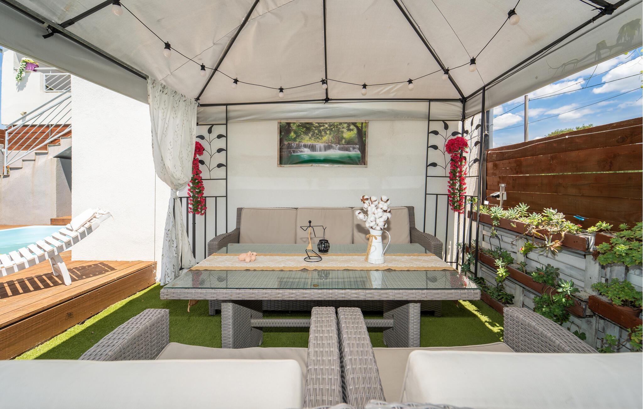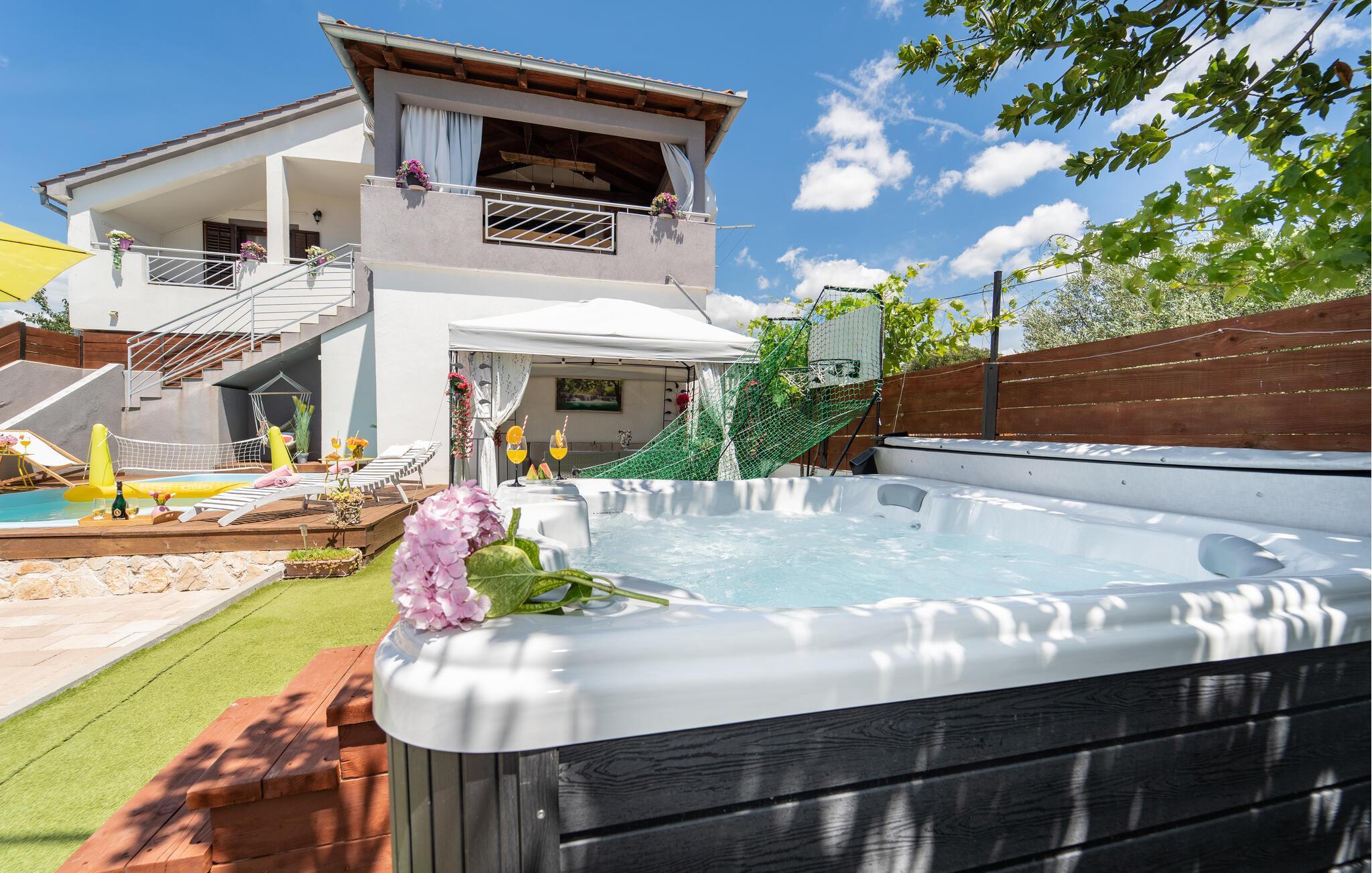 Diese komfortable Unterkunft mit Pool, zu dem eine Außentreppe führt, liegt in der kleinen Ortschaft Tinj, neben der Stadt Biograd.