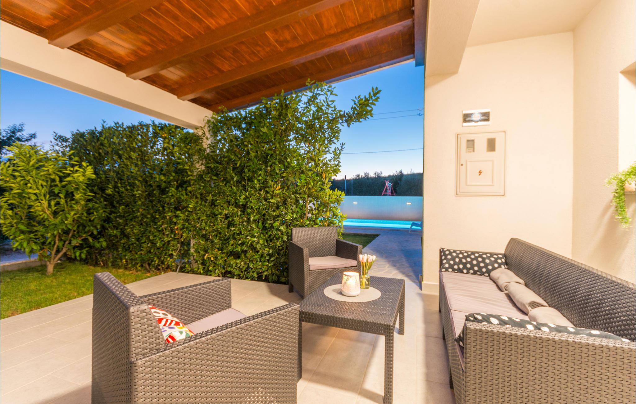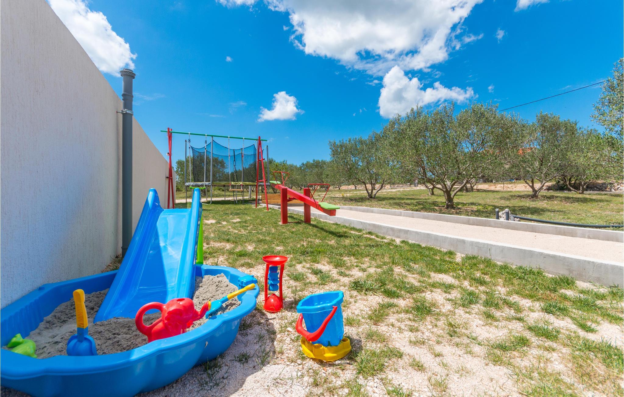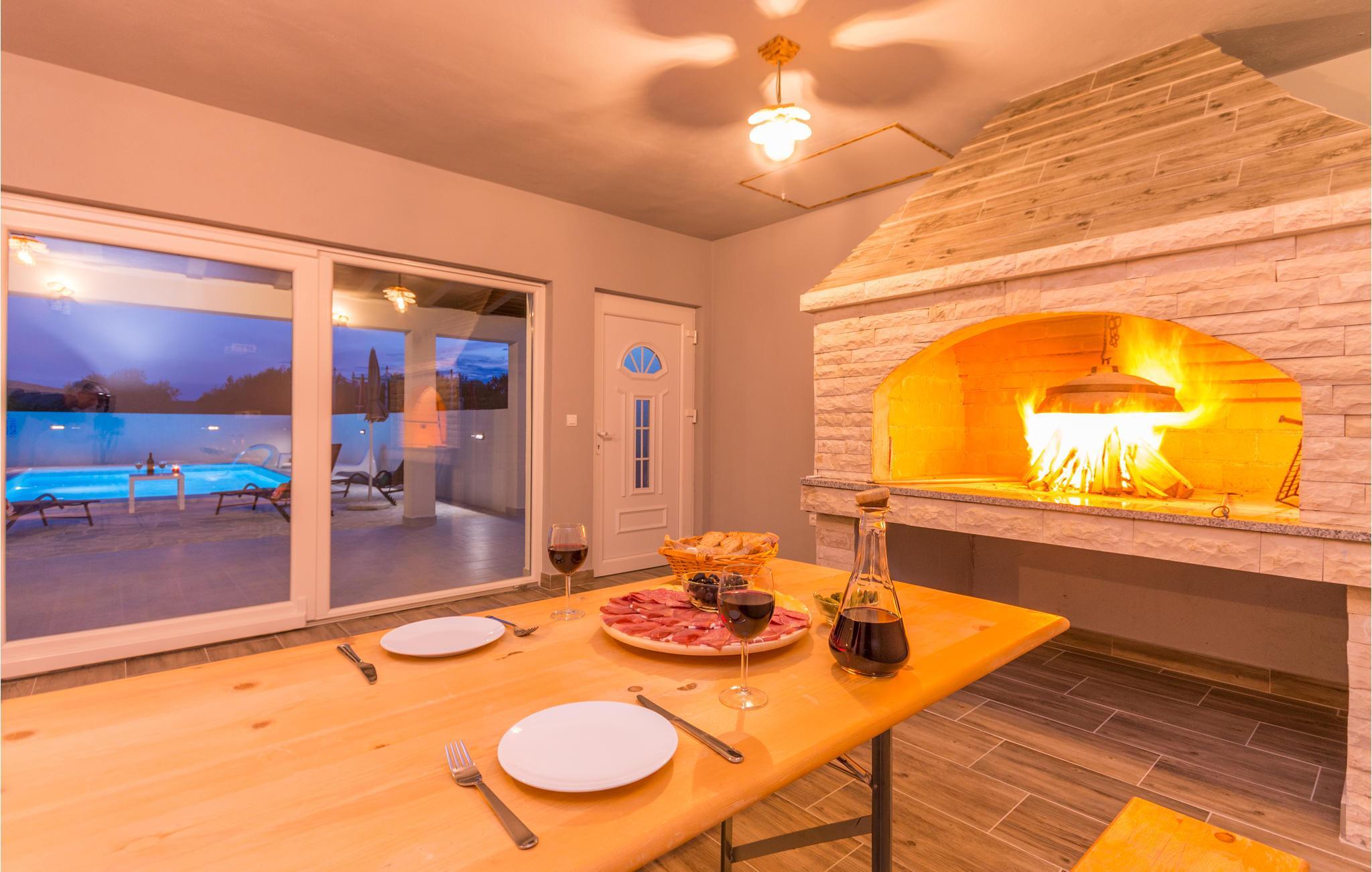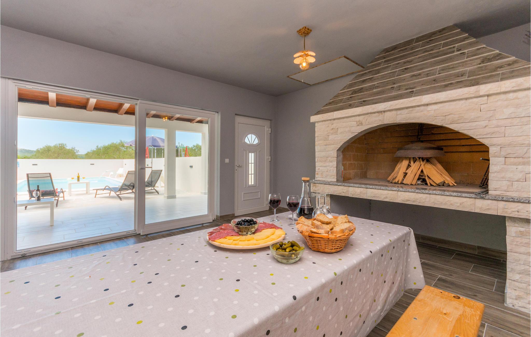 Dieses Ferienhaus mit Pool liegt in der kleinen Ortschaft Vukšic, etwa 32 km von Šibenik entfernt. Der einfache und nette Innenbereich bietet Ihnen alles, was Sie für einen angenehmen Aufenthalt benötigen. Das Haus verfügt über 3 Schlafzimmer, Küche mit Essbereich und Bad. Im anderen Gebäude liegt ein Raum mit gemauertem Kamin, ideal für gesellige Stunden. An dieser Feuerstelle können Sie für Ihre Liebsten köstliche mediterrane Gerichte zubereiten. Die Ferienunterkunft bietet auch ein umfangreiches Angebot an Spielgeräten für die Kinder.