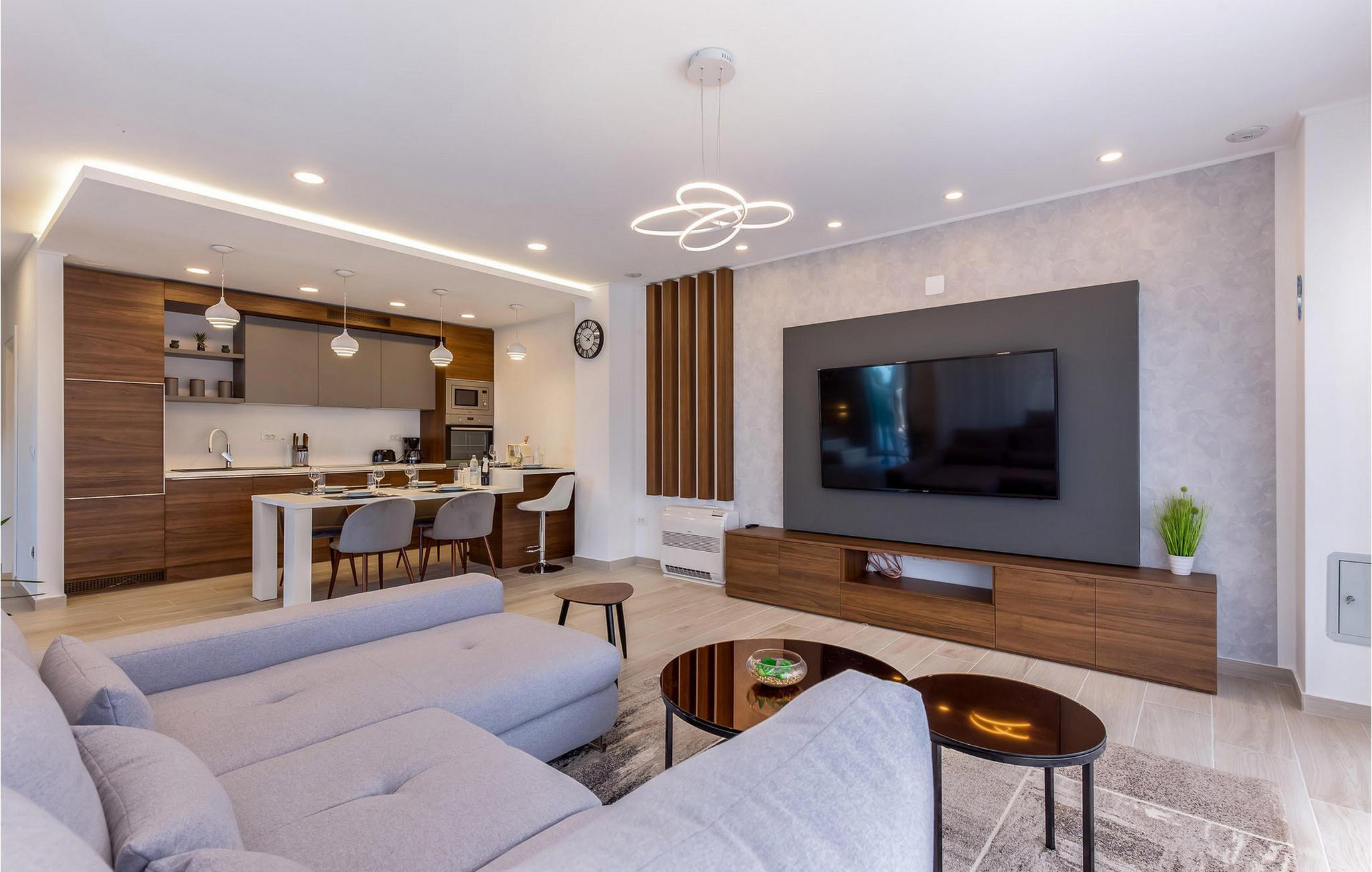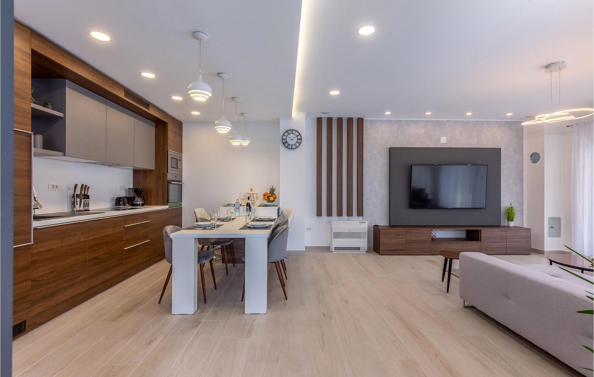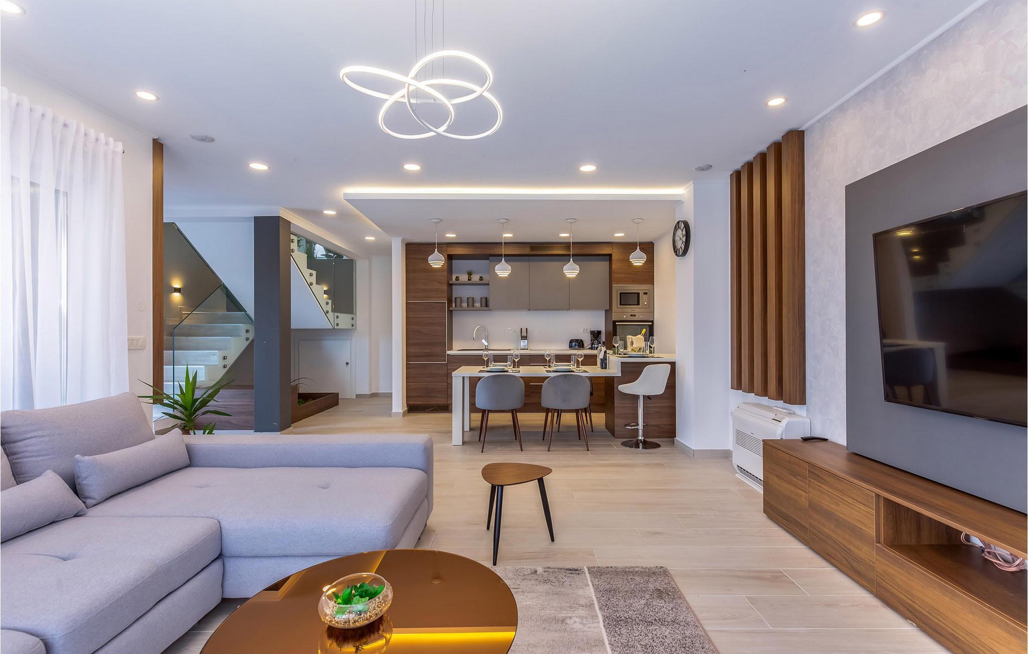Freuen Sie sich auf Ihren Urlaub in diesem komfortablen Feriendomizil. Die modern gestaltete Villa Maestral bietet Ihnen einen offenen Wohnbereich mit gemütlichem Sofa, Videospiel und Darts für gesellige Stunden. In der voll ausgestatteten Küche können Sie gemeinsam kochen und Ihre Mahlzeiten am Küchentresen-Esstisch genießen. Im Erdgeschoss erwartet Sie zudem eine Infrarotsauna für entspannte Momente.